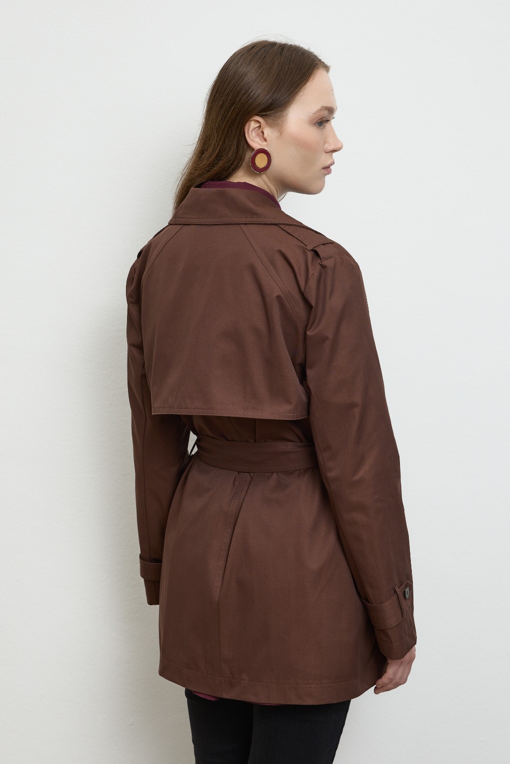 -Arka bölümde yer alan rüzgarlık detayı, klasik trençkot çizgilerine modern bir dokunuş katarak hareketli havalarda hem şıklığı hem de konforu bir araya getiriyor.