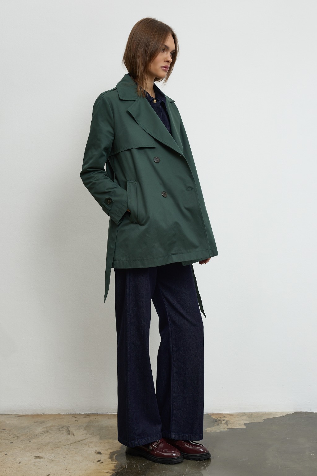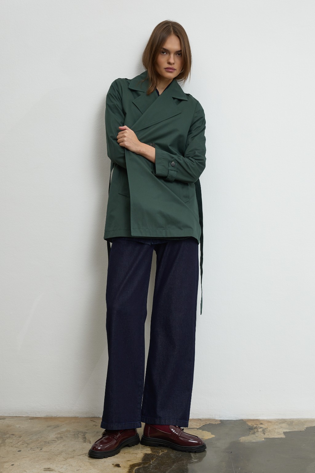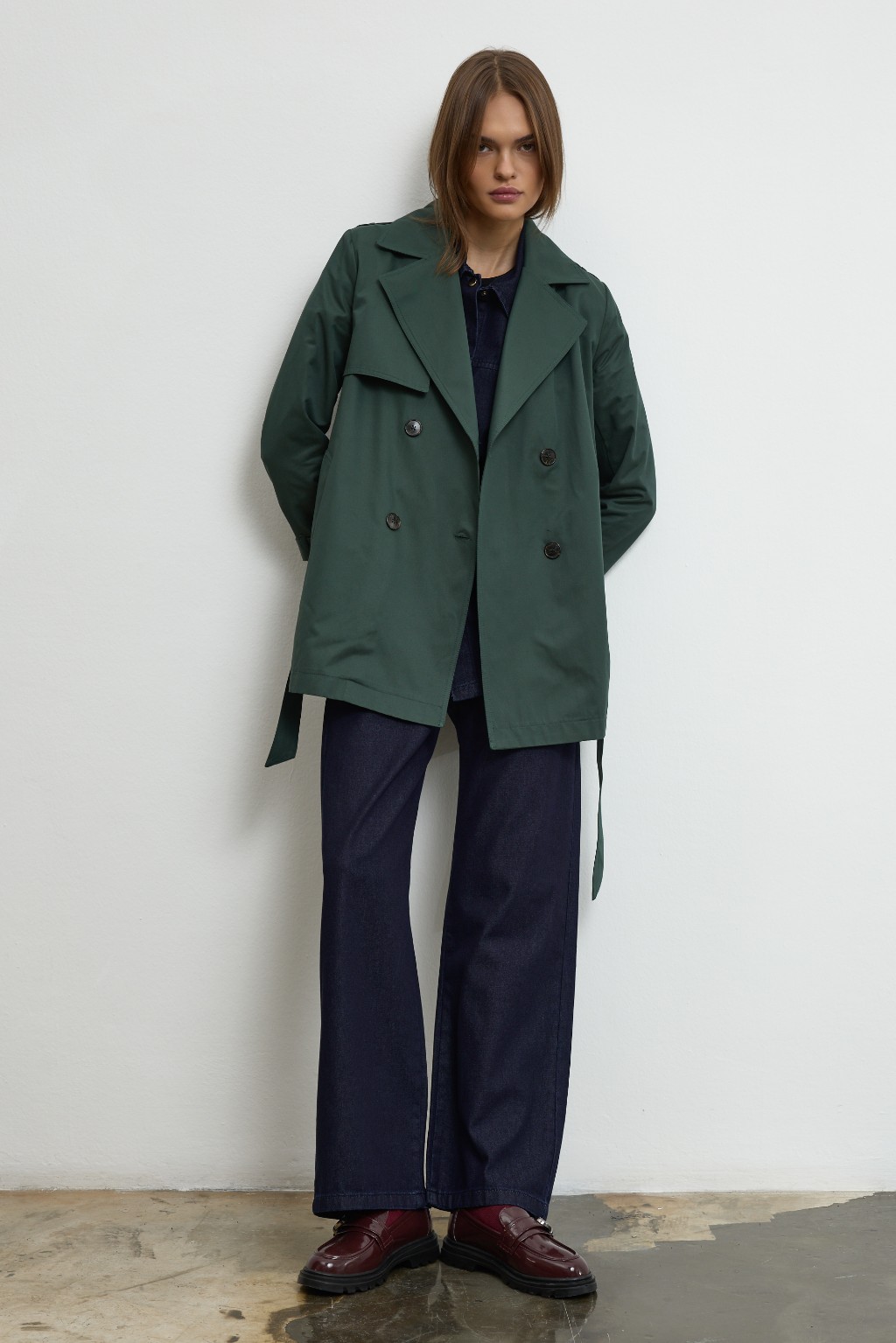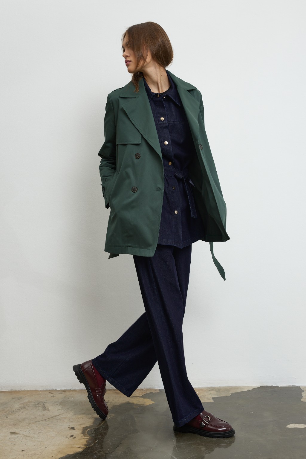 -Modern şehir kadınının stilini tamamlayan bu özel tasarım trençkot, detaylara verilen özenle öne çıkıyor. Dört düğmeli zarif ön yüzeyi, iç kısmındaki gizli sabitleme sistemiyle hareket halinde bile formunu koruyor; böylece stiliniz gün boyu kusursuz kalıyor.