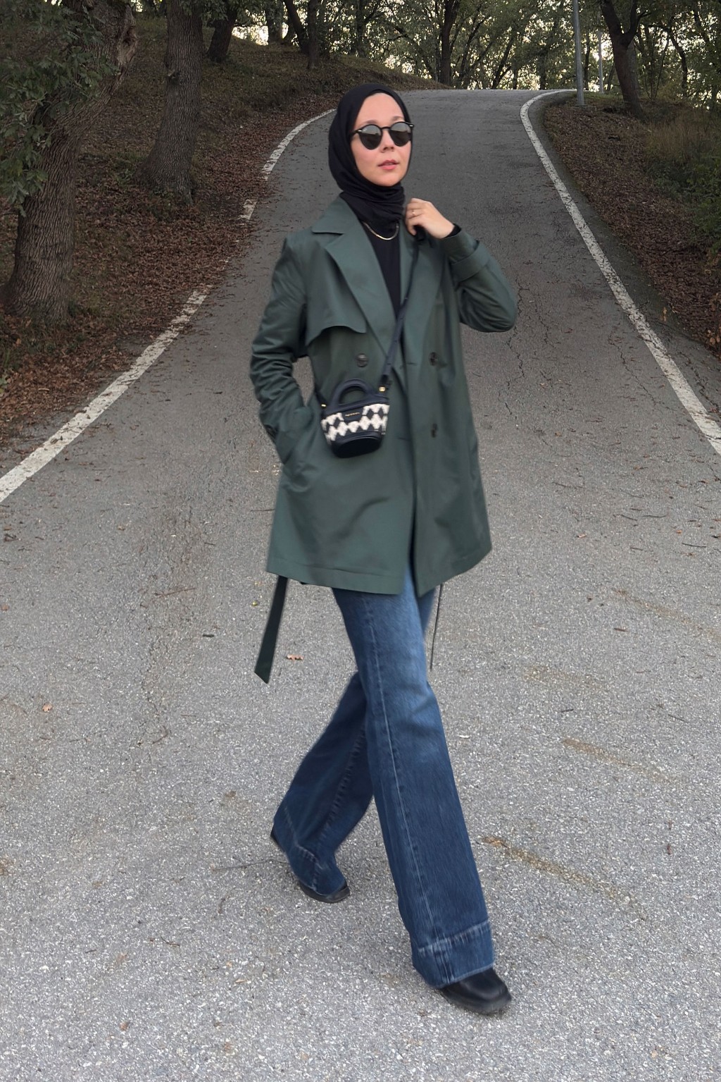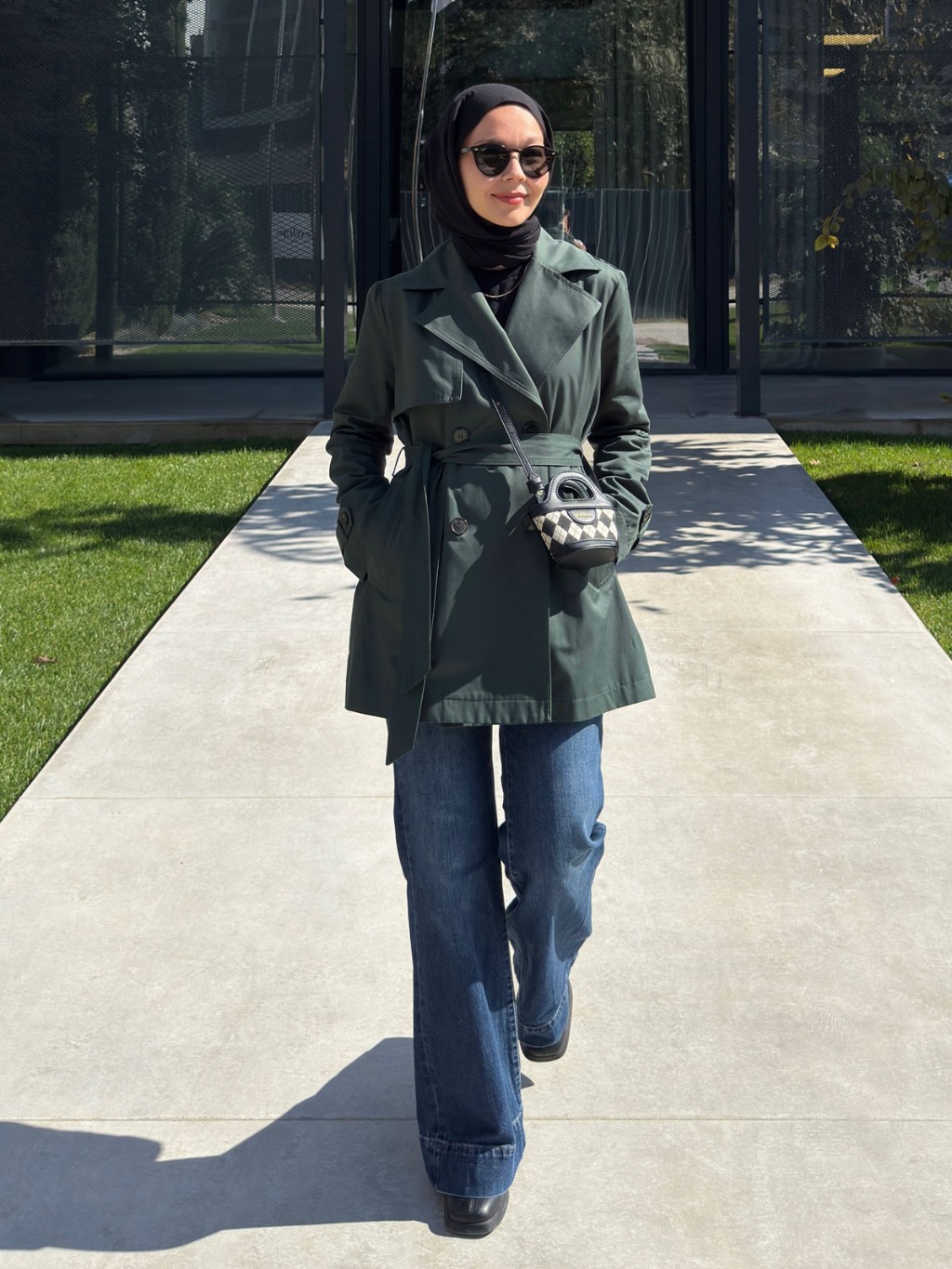 -Arka bölümde yer alan rüzgarlık detayı, klasik trençkot çizgilerine modern bir dokunuş katarak hareketli havalarda hem şıklığı hem de konforu bir araya getiriyor.