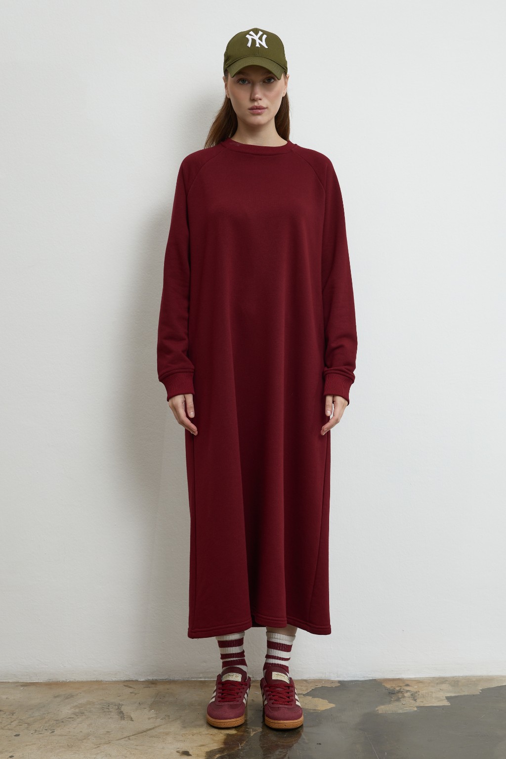 -Rahat kesimi ve zamansız tarzıyla dikkat çeken bu sweatshirt formundaki elbise, konforlu giyim anlayışını stil sahibi bir dokunuşla buluşturuyor.