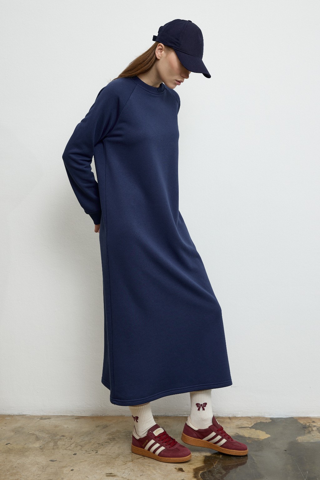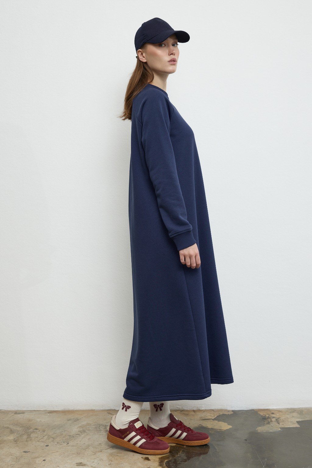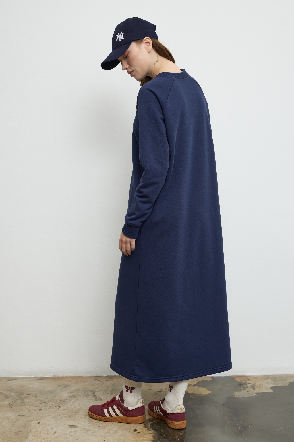 -Rahat kesimi ve zamansız tarzıyla dikkat çeken bu sweatshirt formundaki elbise, konforlu giyim anlayışını stil sahibi bir dokunuşla buluşturuyor.