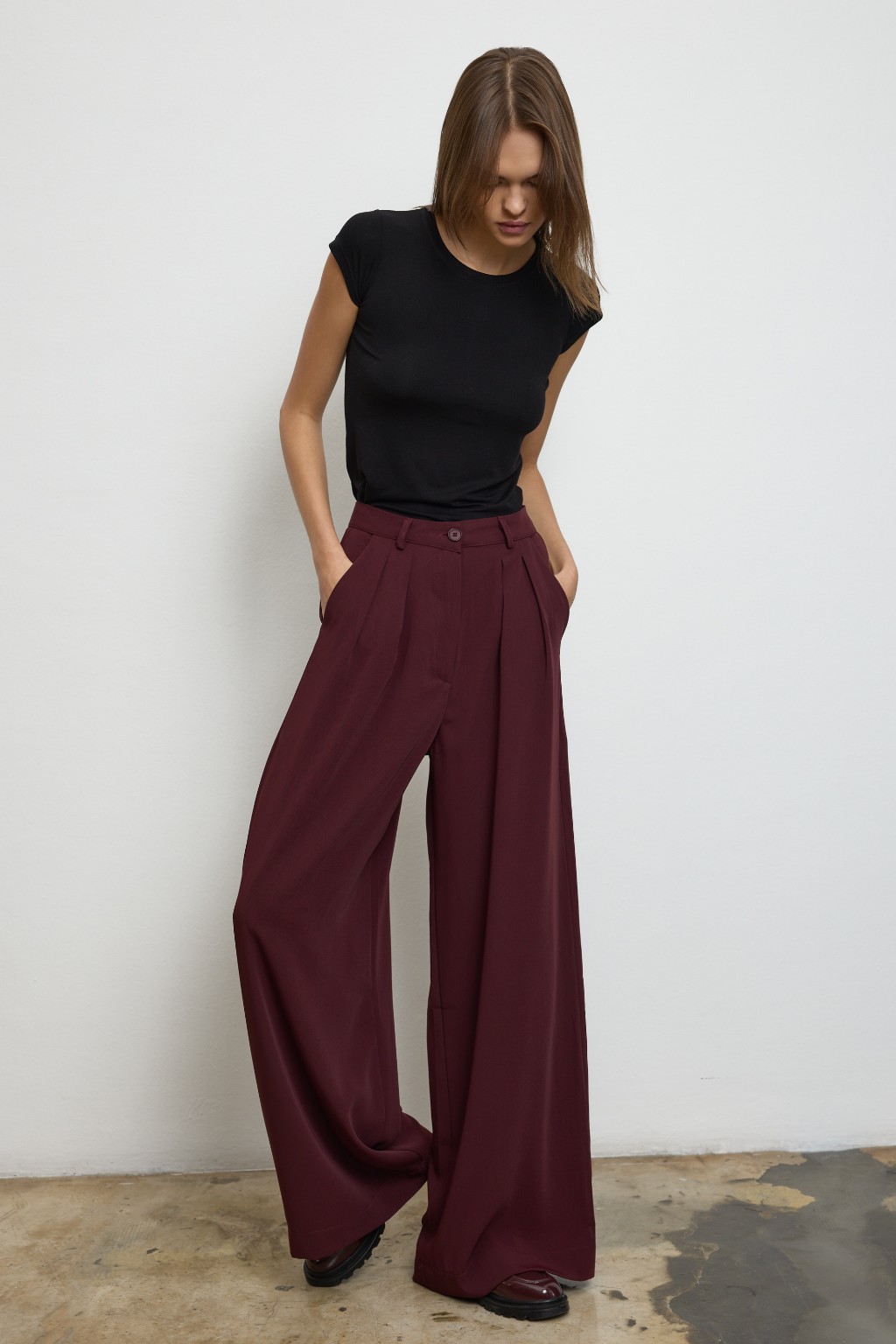 -Tam kalıp tasarımıyla vücuda mükemmel oturan bu palazzo pantolon, rahatlığı ve şıklığı bir arada sunuyor.