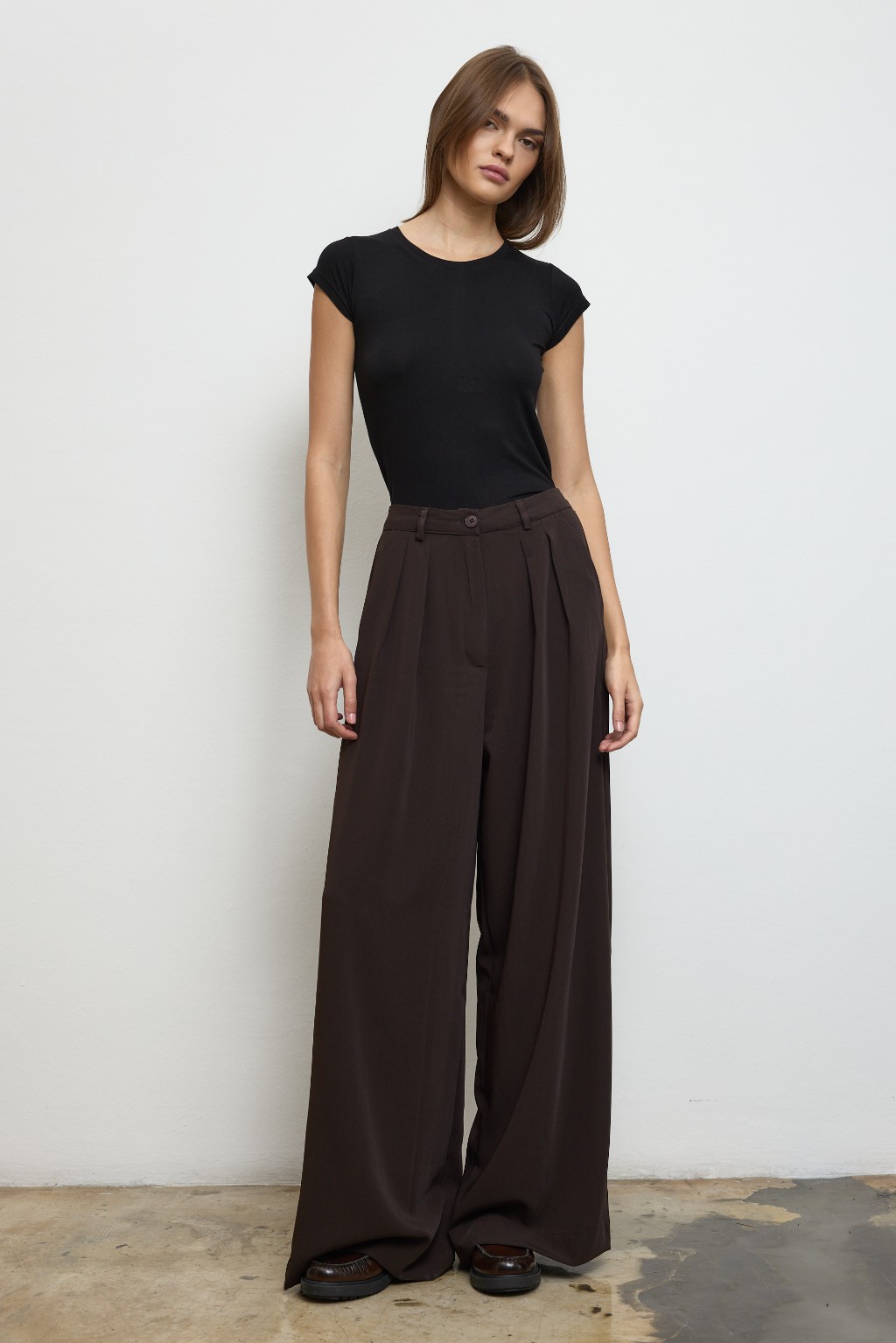 -Tam kalıp tasarımıyla vücuda mükemmel oturan bu palazzo pantolon, rahatlığı ve şıklığı bir arada sunuyor.