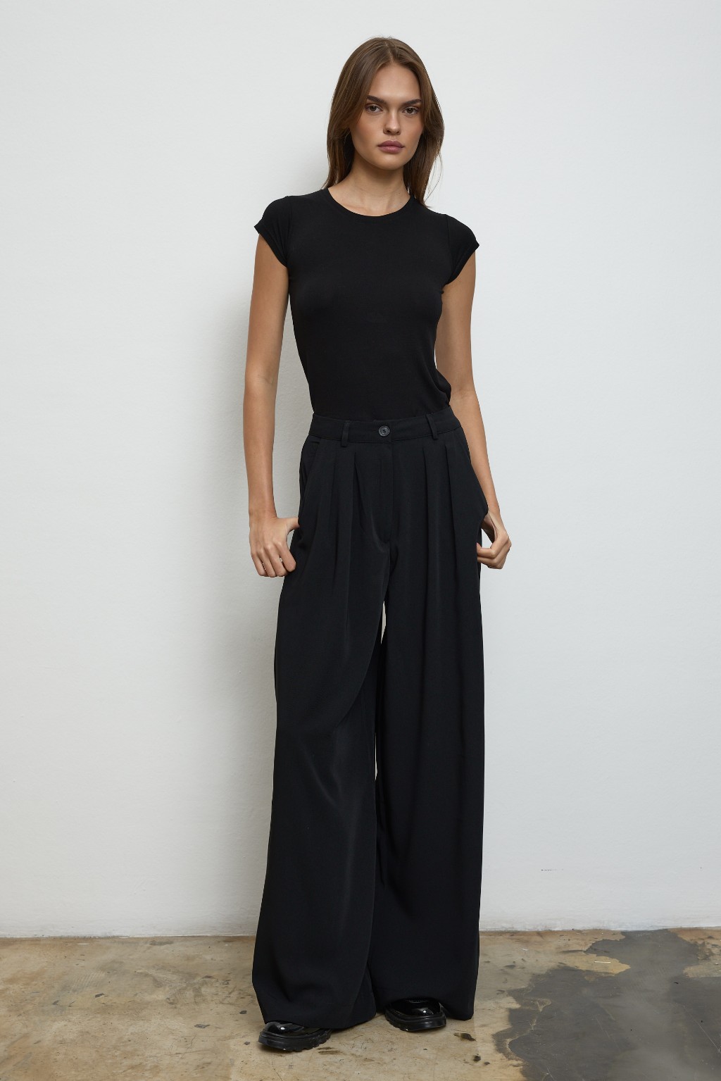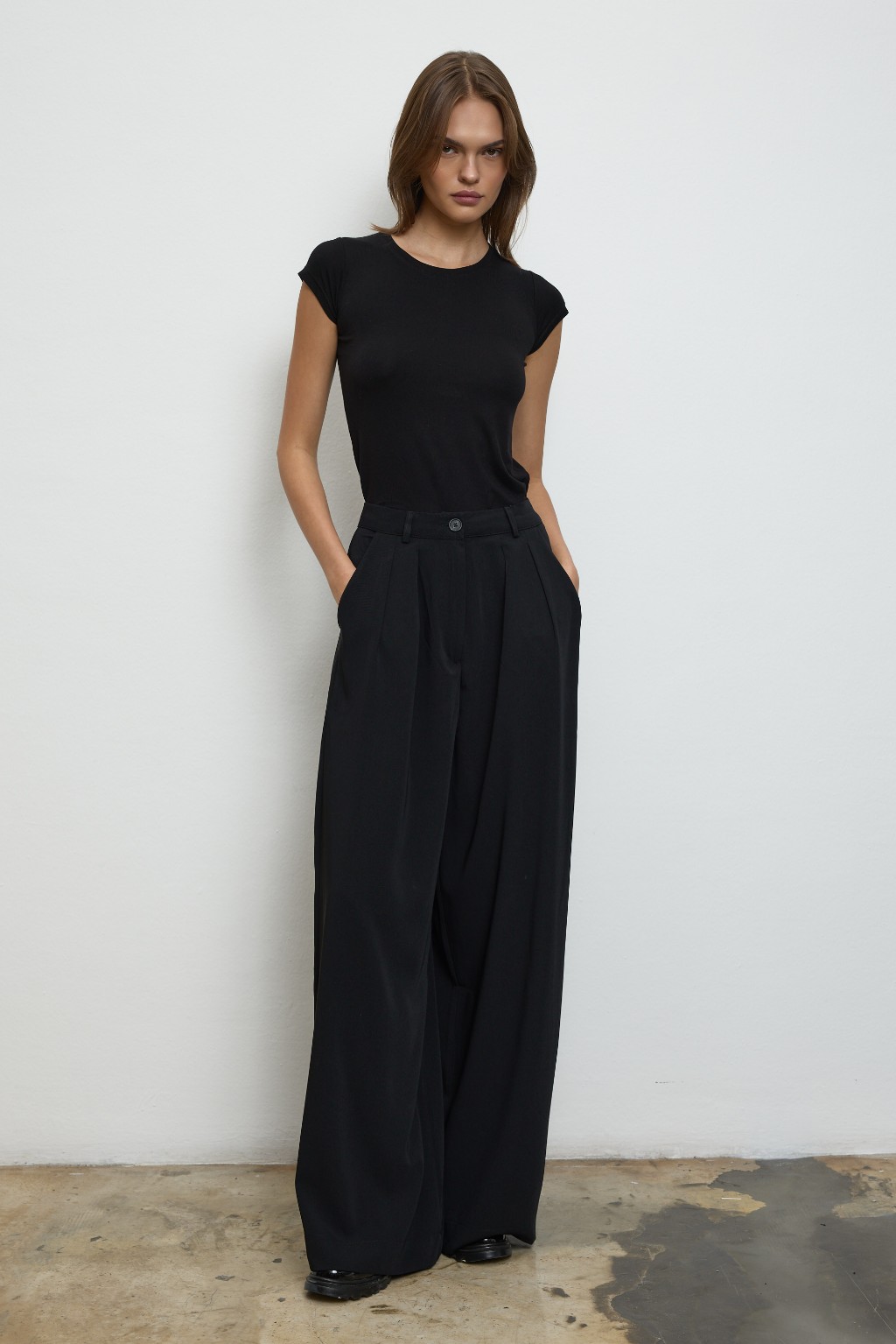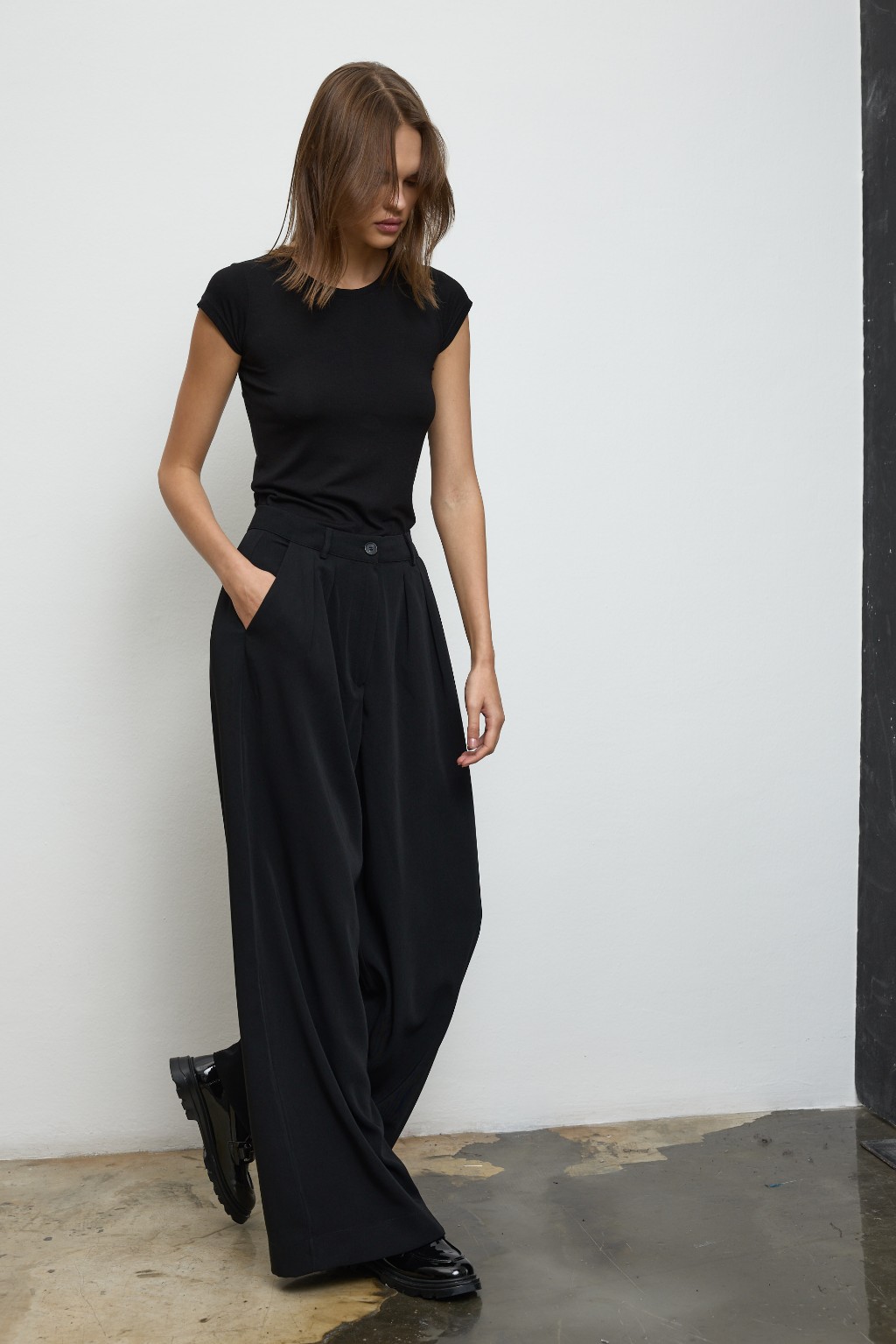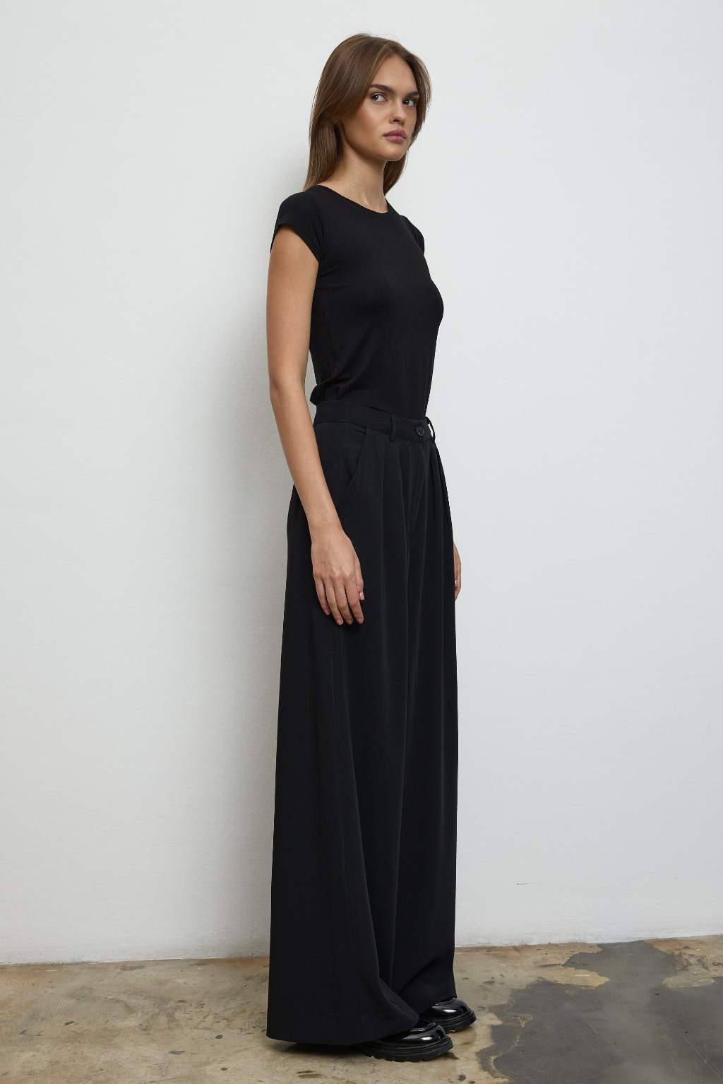 -Tam kalıp tasarımıyla vücuda mükemmel oturan bu palazzo pantolon, rahatlığı ve şıklığı bir arada sunuyor.