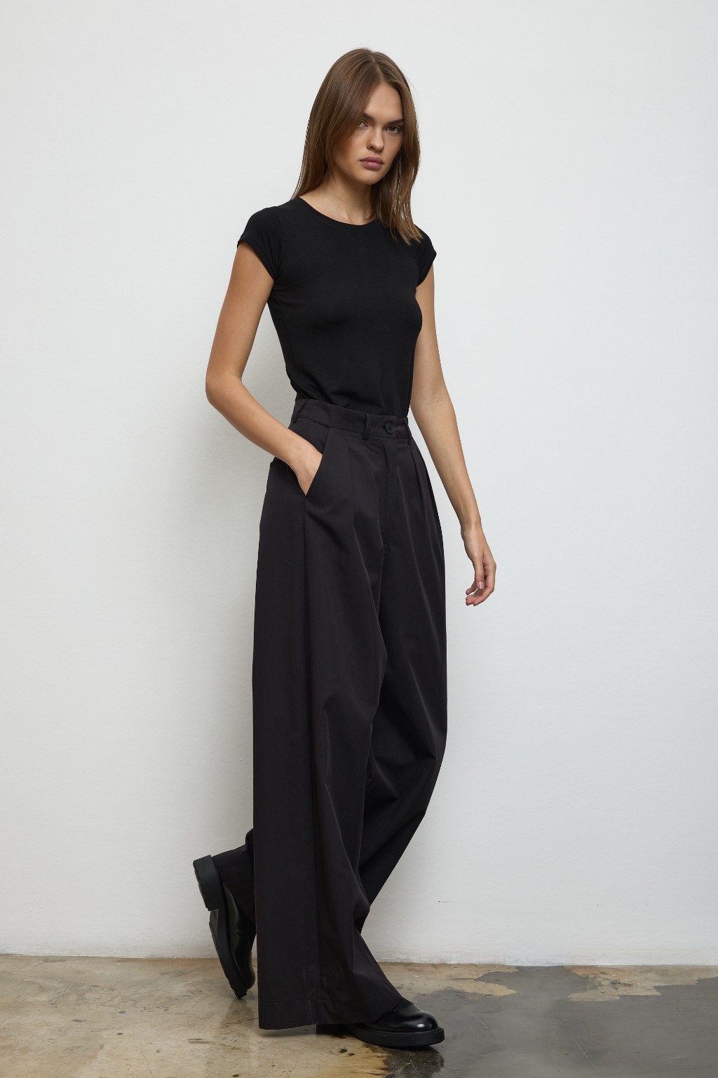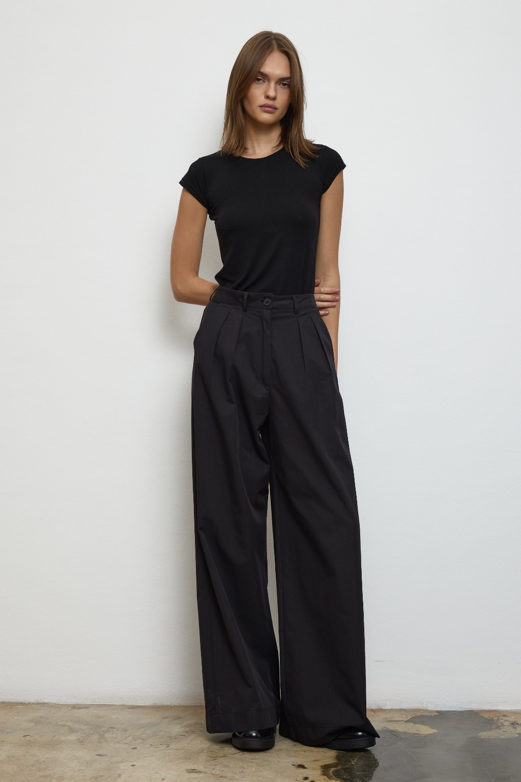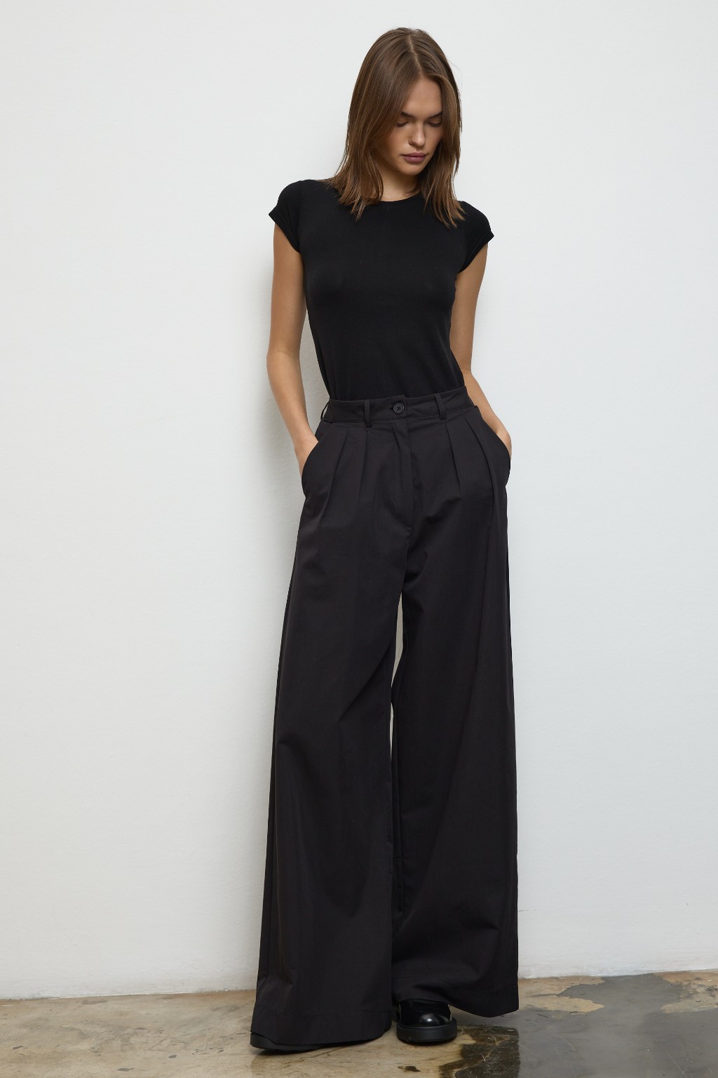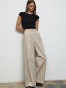 -Doğal pamuklu kumaşıyla gün boyu ferah bir kullanım sunan bu palazzo pantolon, özenli tasarımıyla öne çıkıyor.