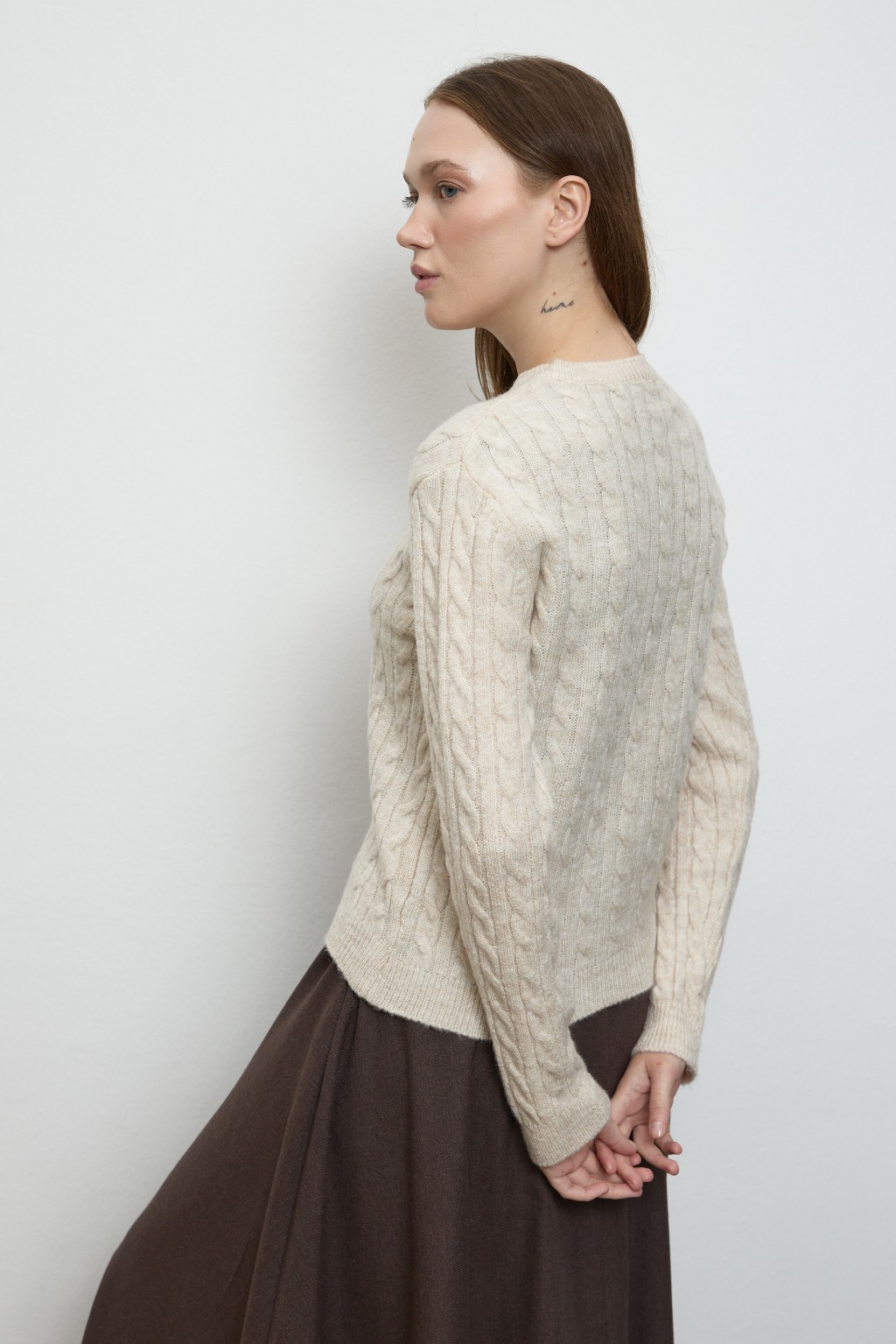 -Yumuşak örgü dokusu ve bisiklet yaka detayıyla sadeliğin şıklığını yansıtan bu kısa triko hırka, dolabınızın en özel parçalarından biri olmaya aday.