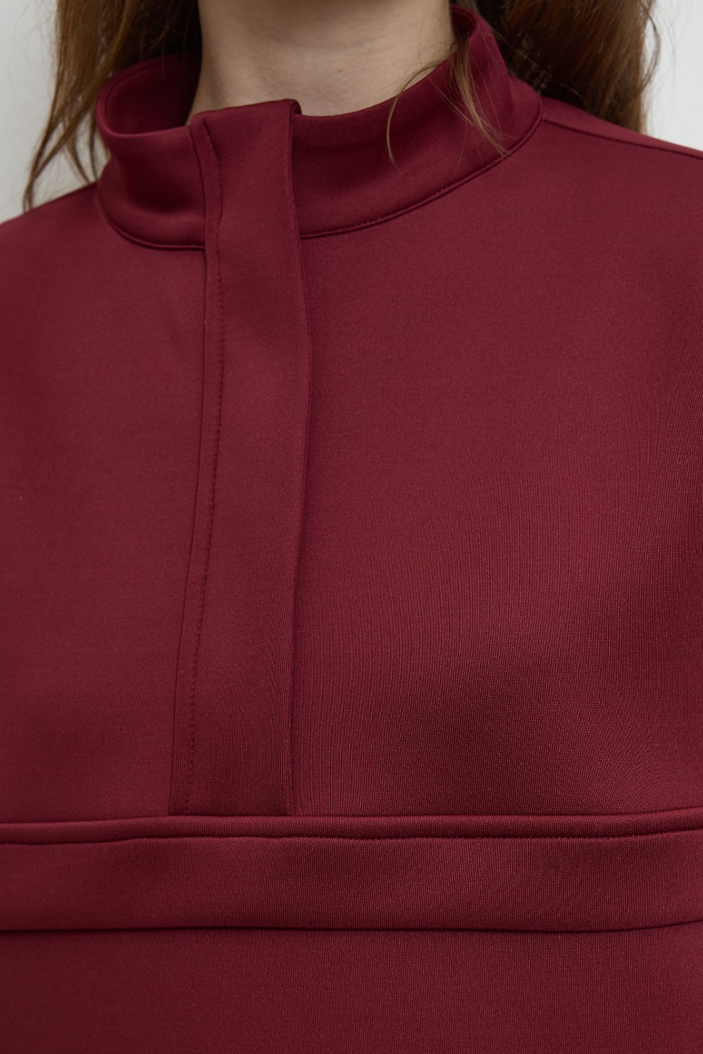 -Yumuşak dokulu, formunu koruyan scuba kumaşı sayesinde gün boyu konfor sunarken, takımın sweatshirt parçası yarım gizli fermuar detayı ve göğüs altındaki dikişle hareketli bir siluet yaratır. Hem sade hem iddialı.