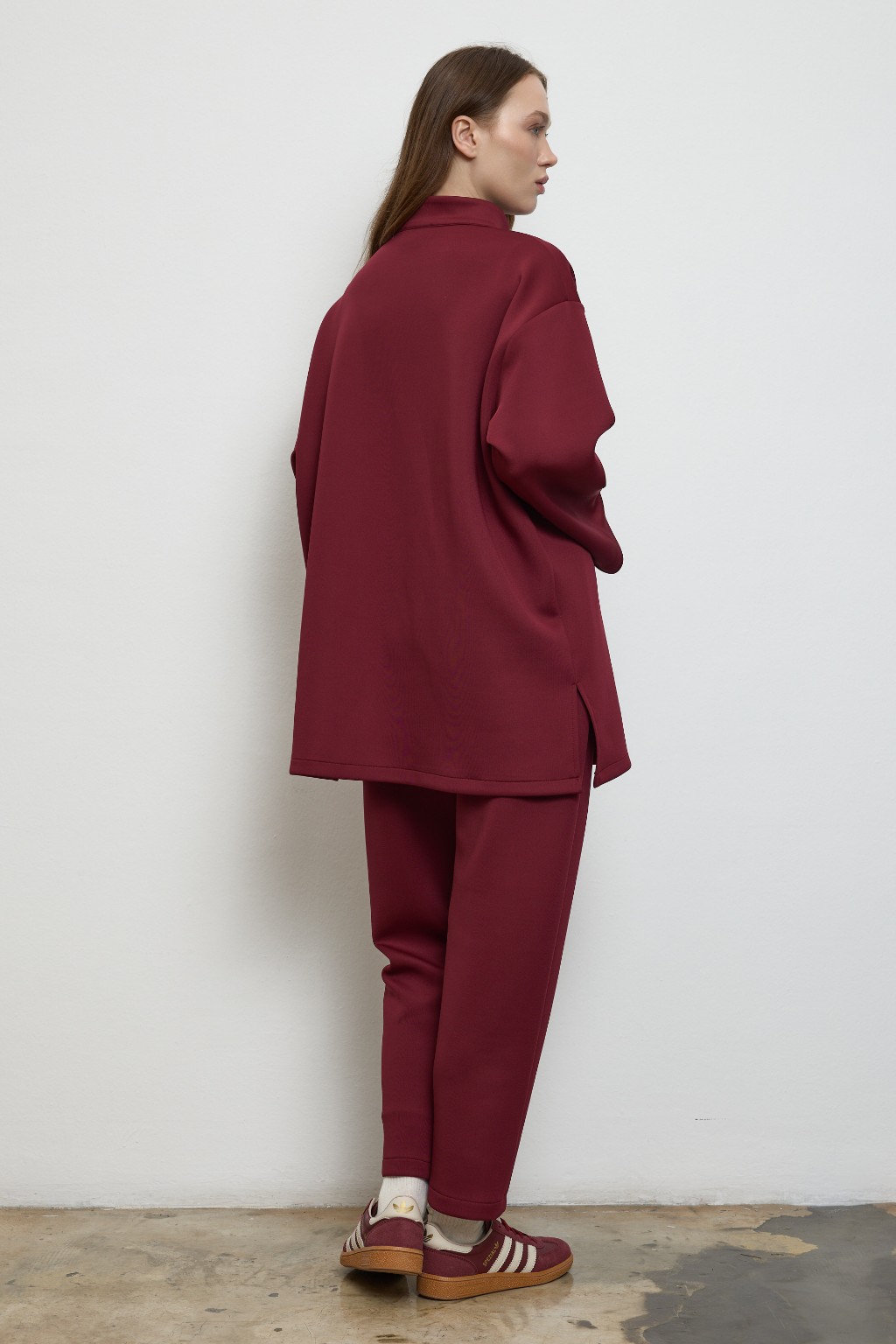 -Takımı tamamlayan pantolon ise lastikli beli ve cepli yapısıyla kullanım kolaylığı sunarken, ön kısmındaki dikiş detayı şıklığı ön plana çıkarır.