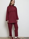 -Takımı tamamlayan pantolon ise lastikli beli ve cepli yapısıyla kullanım kolaylığı sunarken, ön kısmındaki dikiş detayı şıklığı ön plana çıkarır.