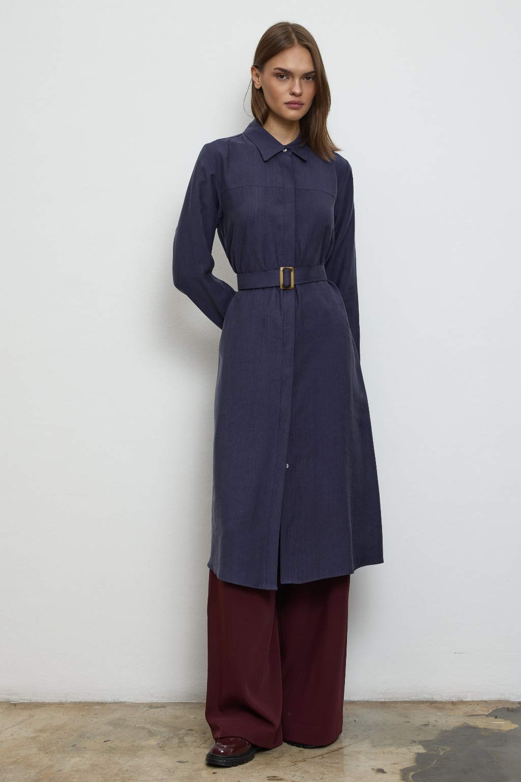-Arka kısmında yer alan pilikaşe, gömleğe zarif bir hareket kazandırırken, seyyar kuşağıyla stilinizi dilediğiniz gibi şekillendirme özgürlüğü sunar — ister belinizi vurgulayın, ister rahat bırakın.