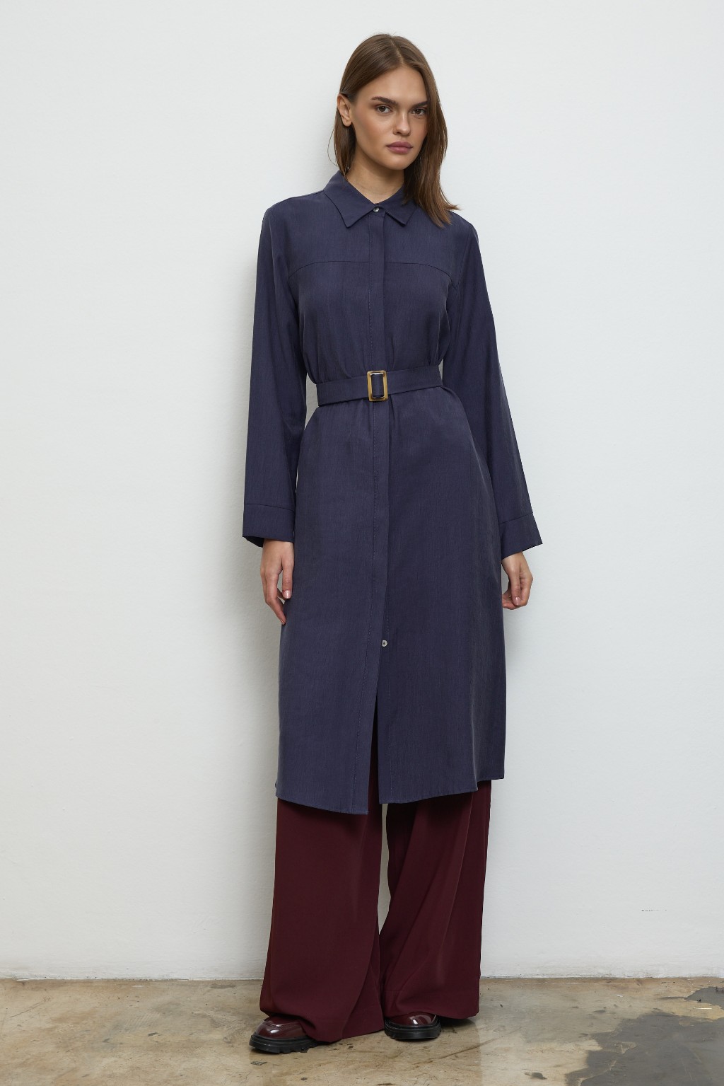 -Yumuşak dokulu doğal kumaşı sayesinde gün boyu konfor sunarken; yakalı tasarımı, kalın manşetli kolları ve göğüs üstü dikiş detayı ile dikkat çekici bir duruş sergiliyor.