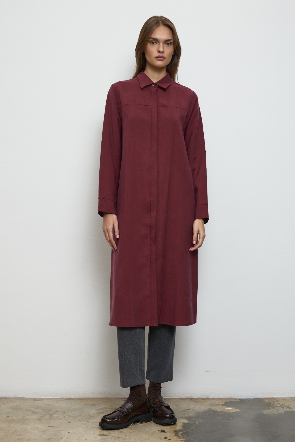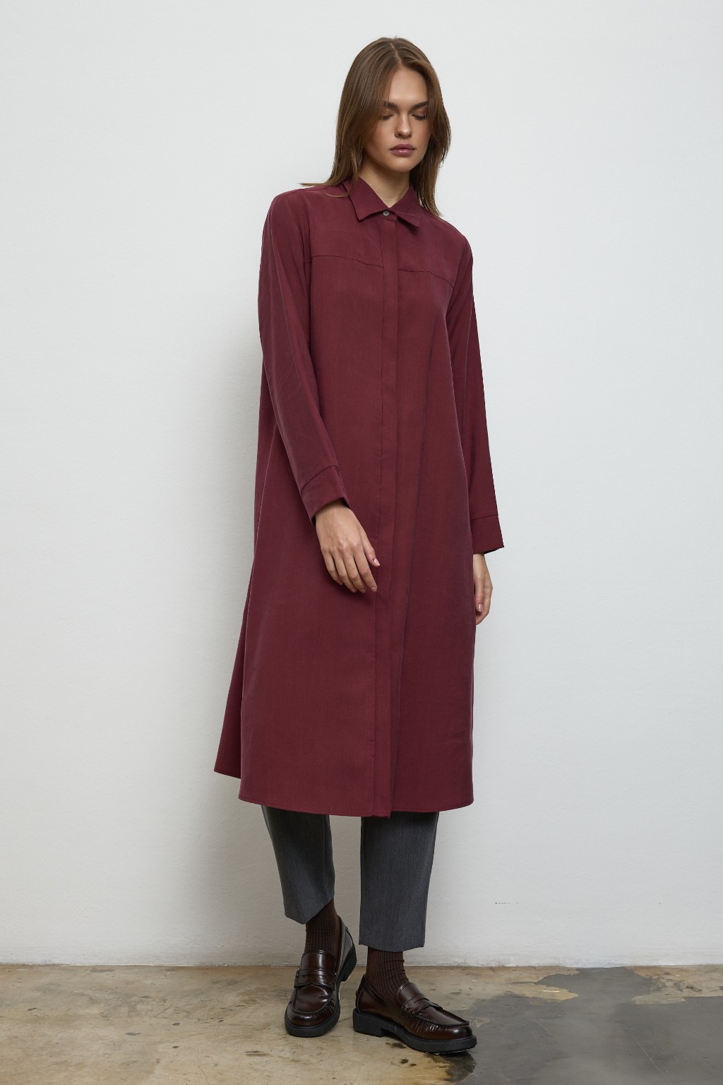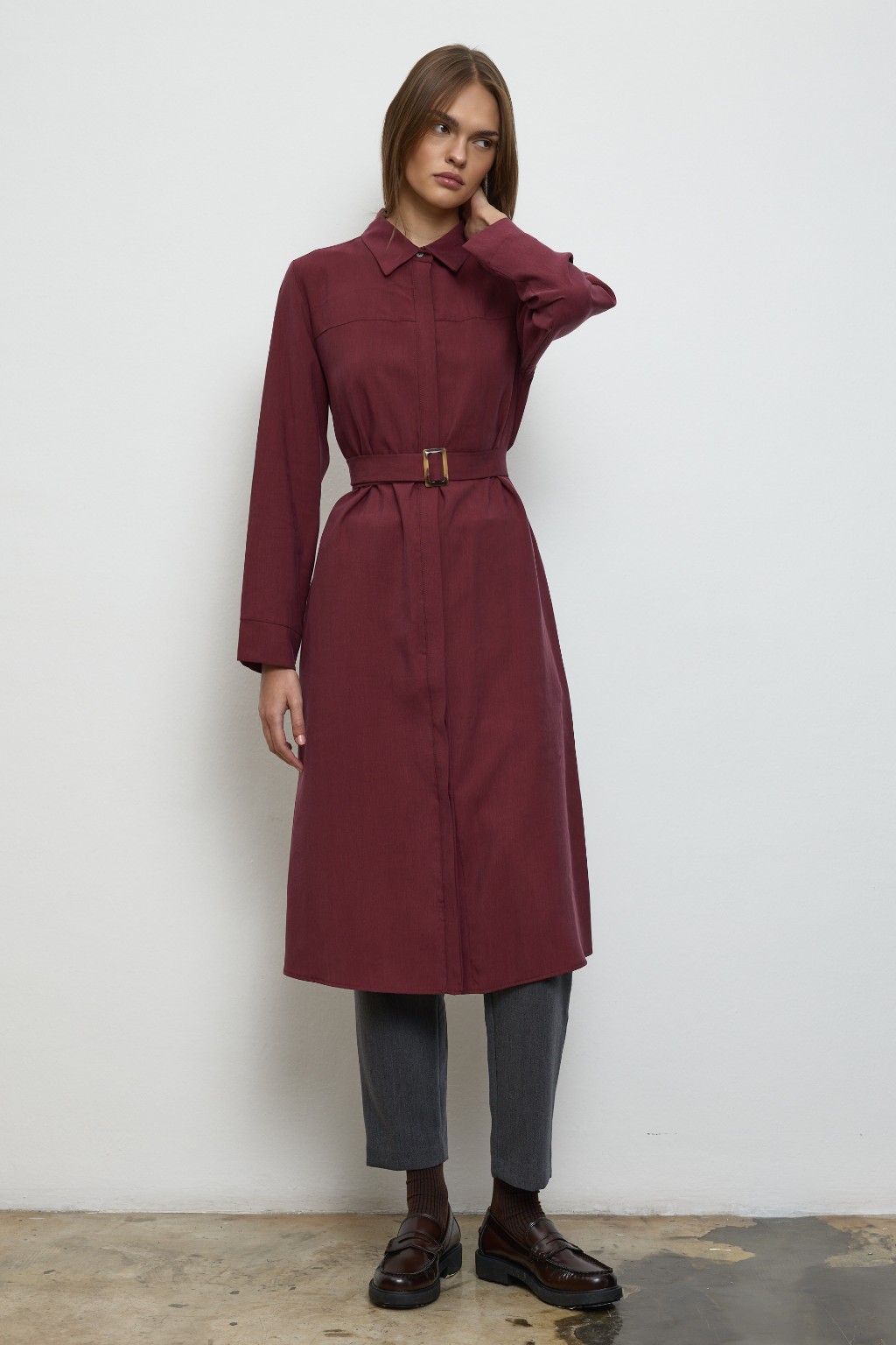 -Arka kısmında yer alan pilikaşe, gömleğe zarif bir hareket kazandırırken, seyyar kuşağıyla stilinizi dilediğiniz gibi şekillendirme özgürlüğü sunar — ister belinizi vurgulayın, ister rahat bırakın.