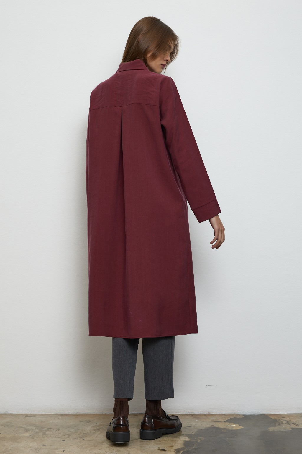 -Yumuşak dokulu doğal kumaşı sayesinde gün boyu konfor sunarken; yakalı tasarımı, kalın manşetli kolları ve göğüs üstü dikiş detayı ile dikkat çekici bir duruş sergiliyor.