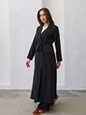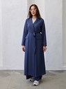 -Kuşaklı tasarımı sayesinde vücut hatlarını zarifçe ortaya çıkarırken, takma kol yapısı ve kruvaze kapama detayı ile klasik şıklığı yeniden tanımlıyor.