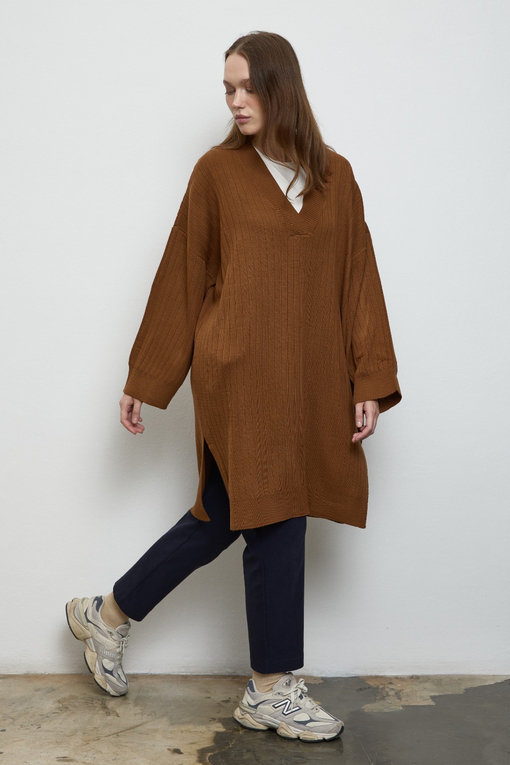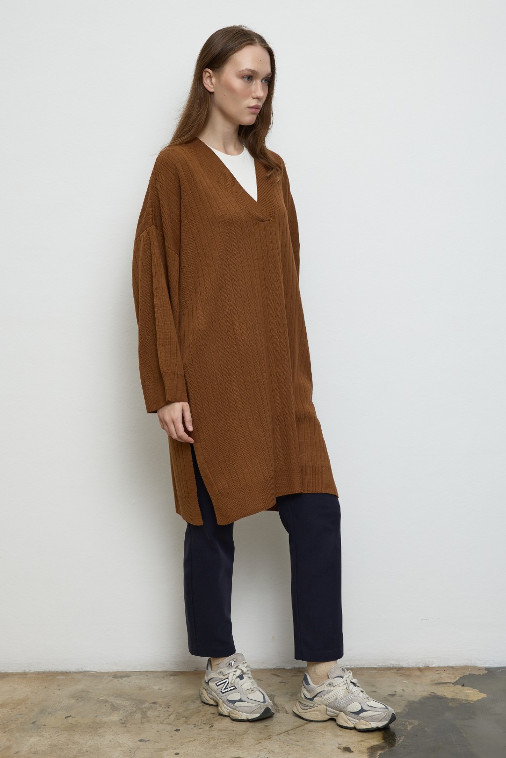 -V yakadır,kolları bol bir forma sahiptir.
