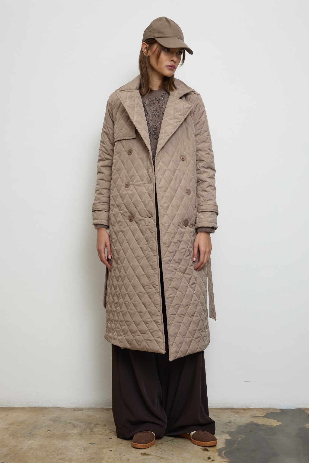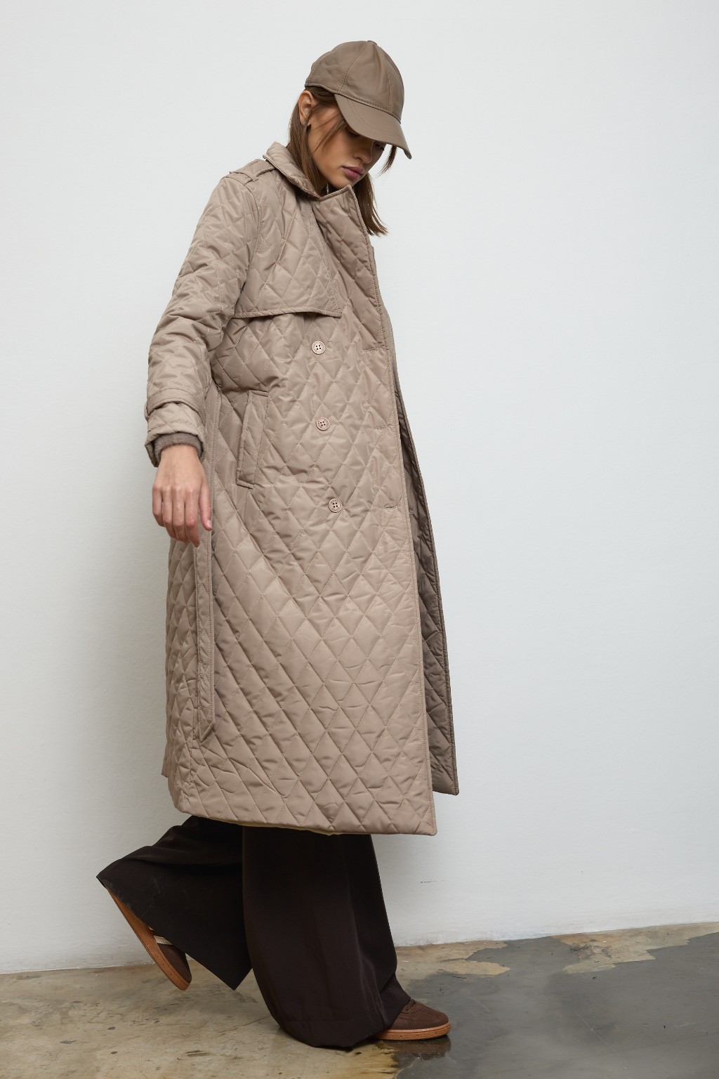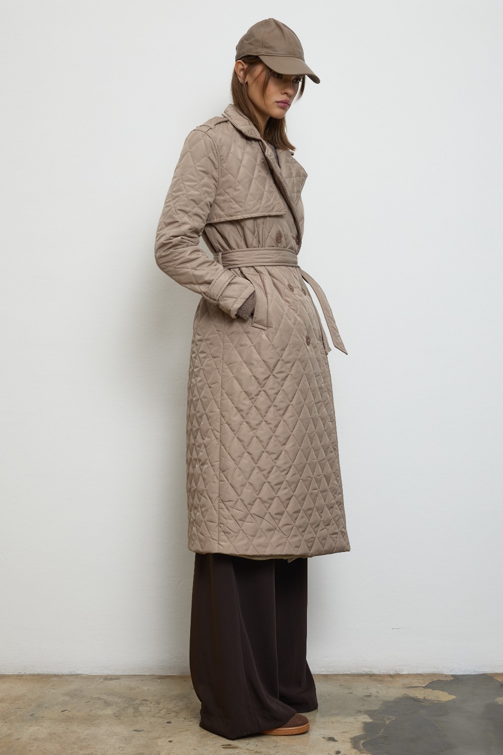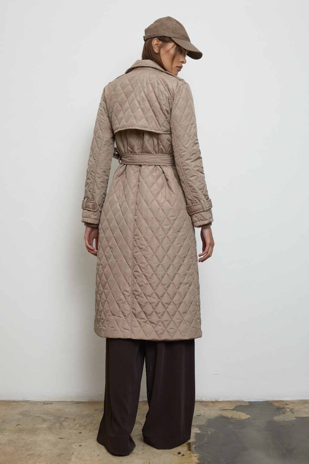 -Altı düğmeli kruvaze kapaması, tek omuzda yer alan ekstra kapama detayı ve omuz-kollardaki apoletlerle güçlü bir duruş sergiler. Arka kısmındaki rüzgarlık detayı ise klasik trençkot havasını modern bir siluetle buluşturur.