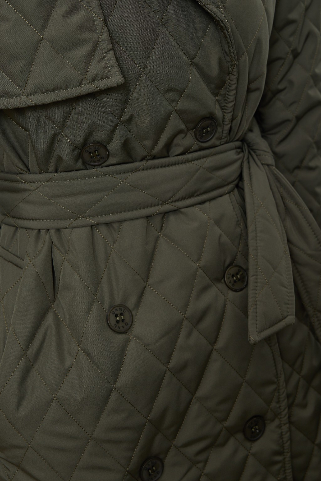 -Altı düğmeli kruvaze kapaması, tek omuzda yer alan ekstra kapama detayı ve omuz-kollardaki apoletlerle güçlü bir duruş sergiler. Arka kısmındaki rüzgarlık detayı ise klasik trençkot havasını modern bir siluetle buluşturur.