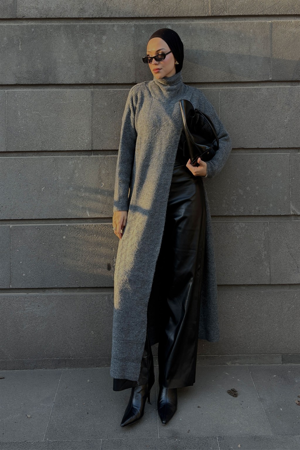 Qanu Yırtmaçlı Triko Tunik Gri