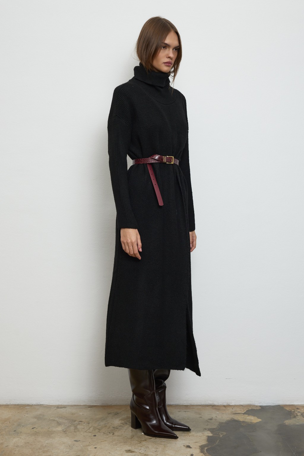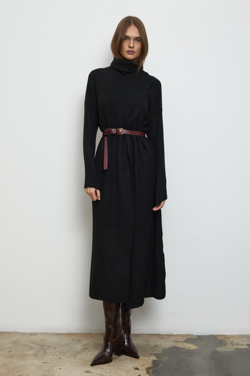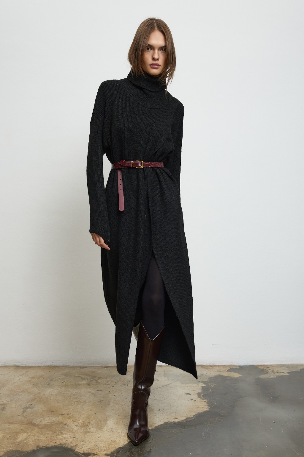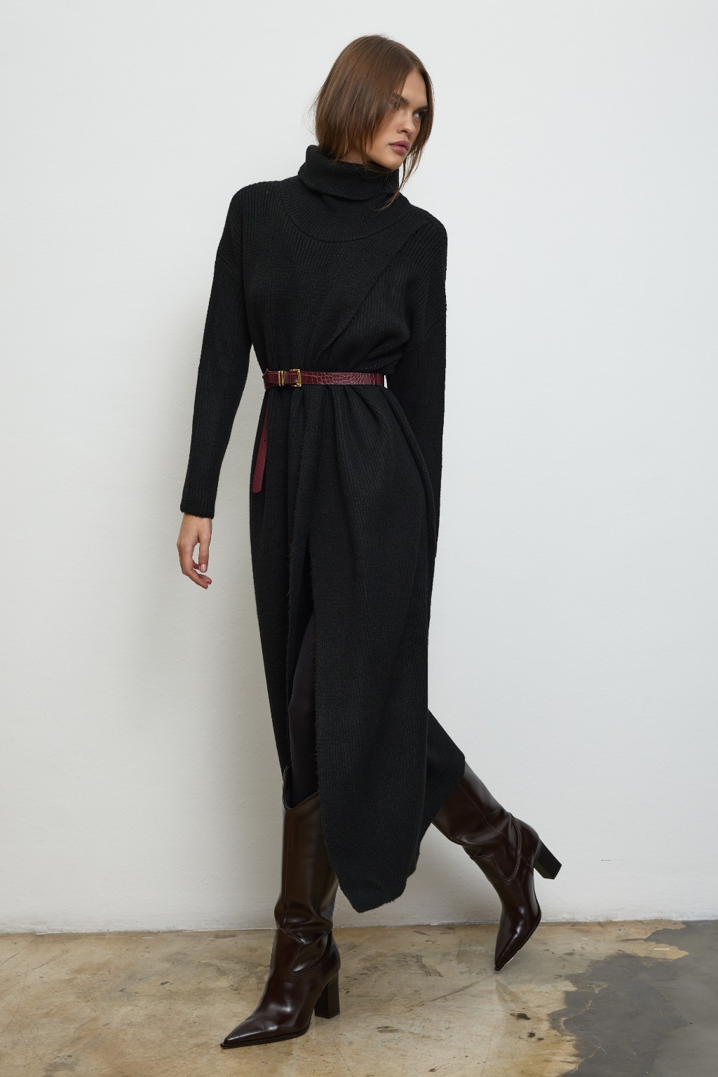 Qanu Yırtmaçlı Triko Tunik Siyah