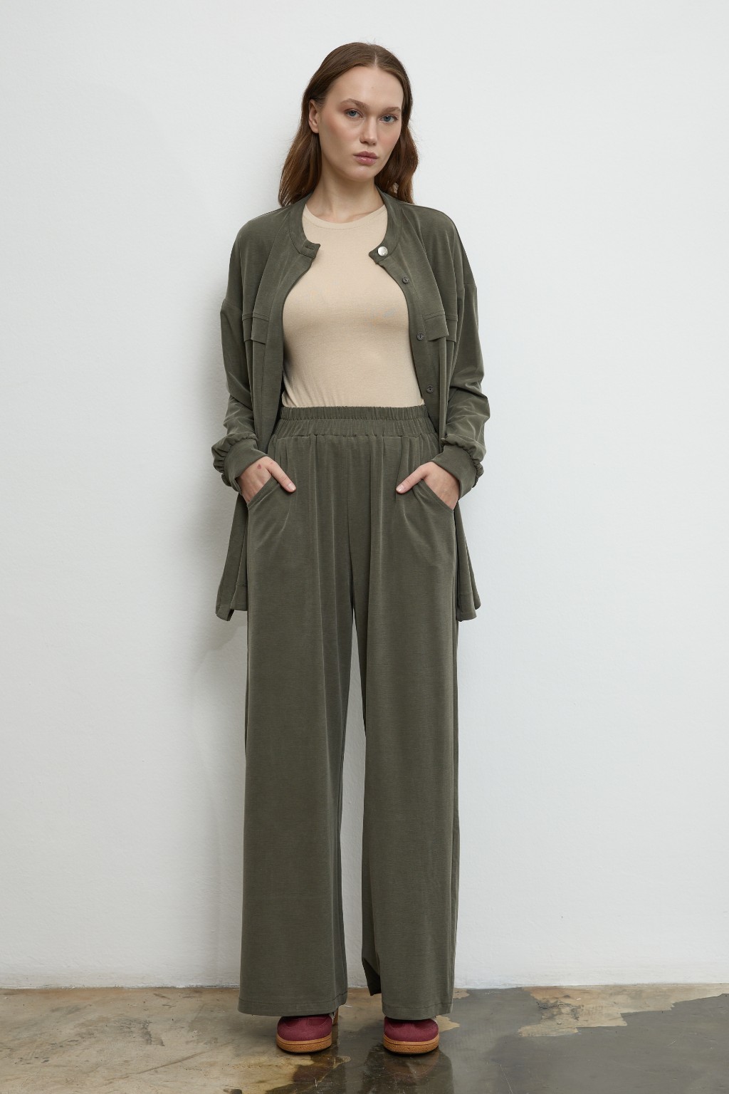-Bol paça pantolonu ise elastik beli sayesinde vücudu sarmaz, gün boyu konfor sunar. Fonksiyonel cepleriyle pratiklikten de ödün vermez.