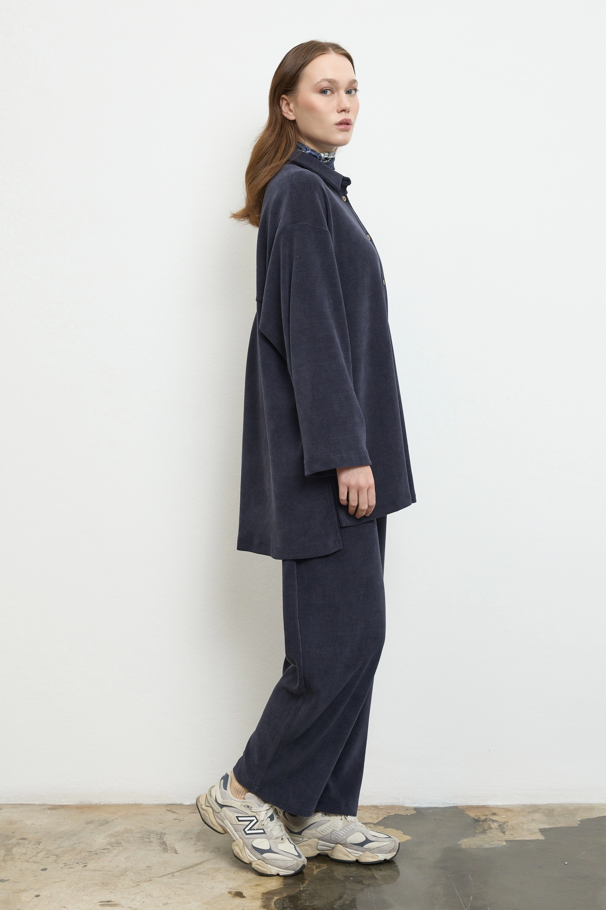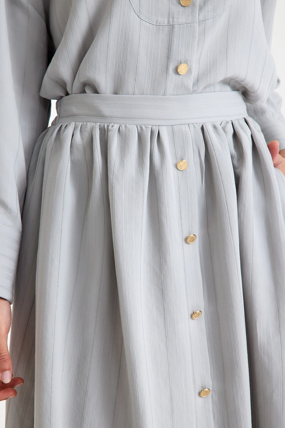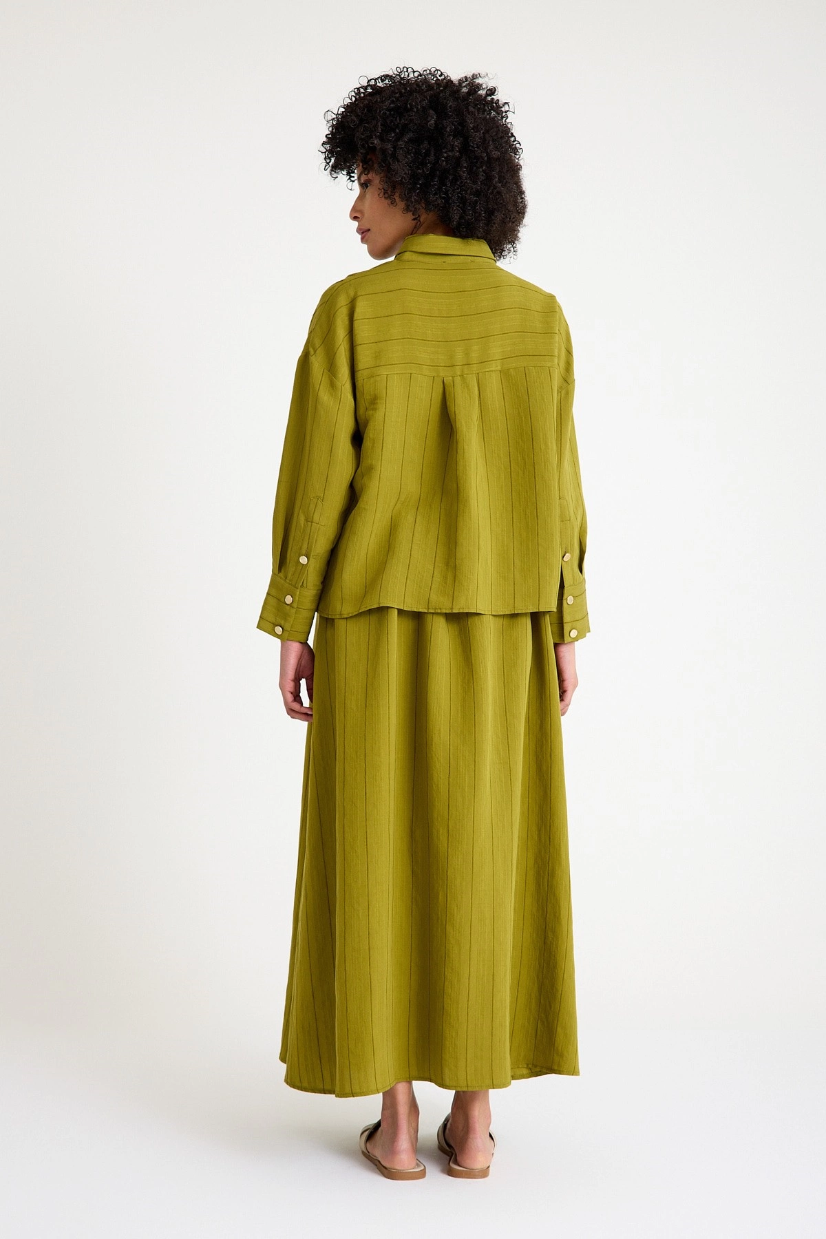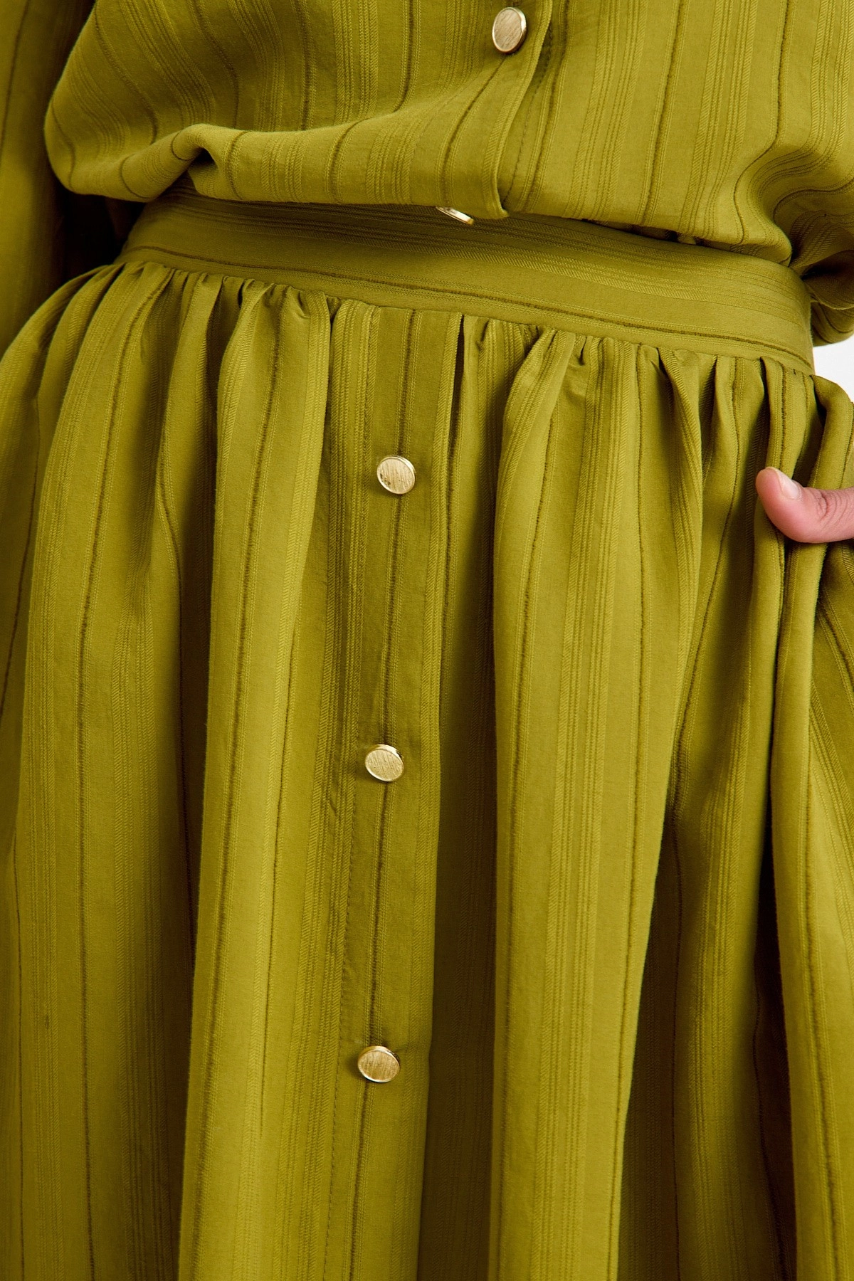 Qanu Düğmeli Etek Takım Yağ Yeşili