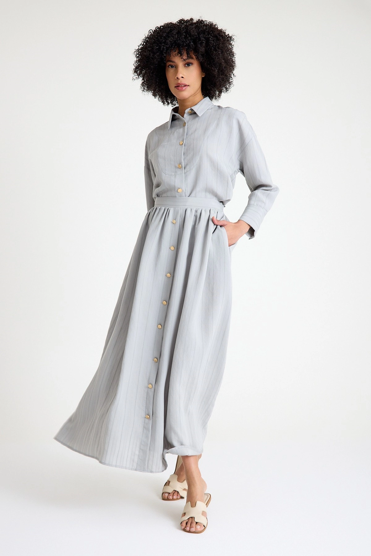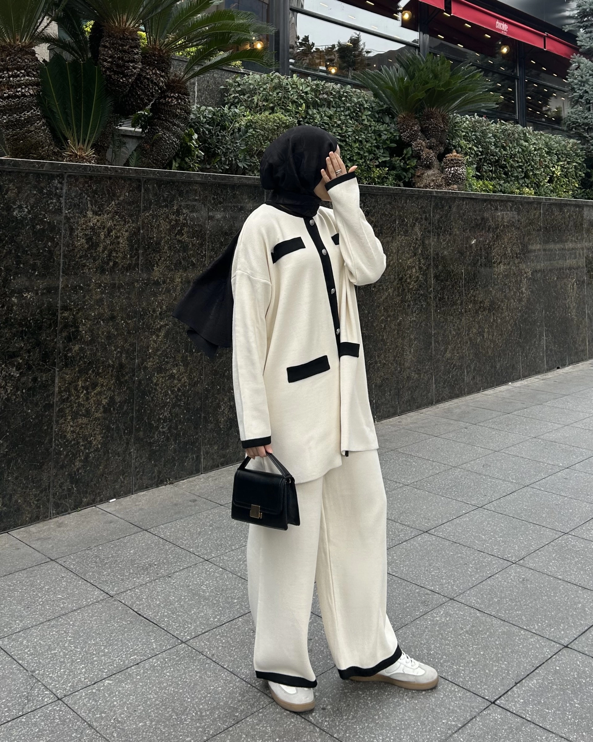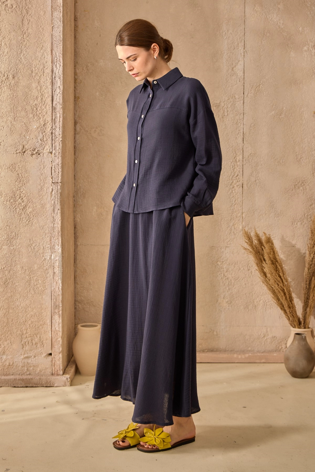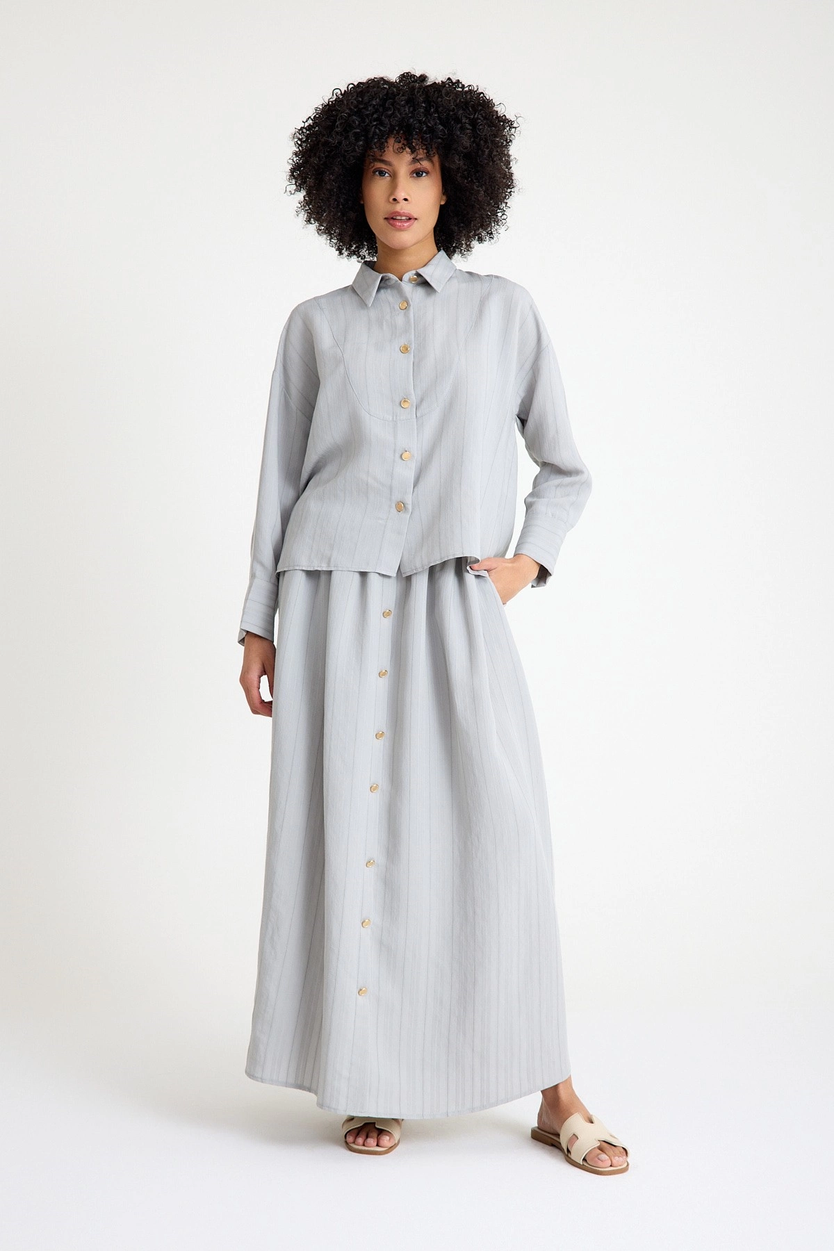 Qanu Düğmeli Etek Takım Yağ Yeşili