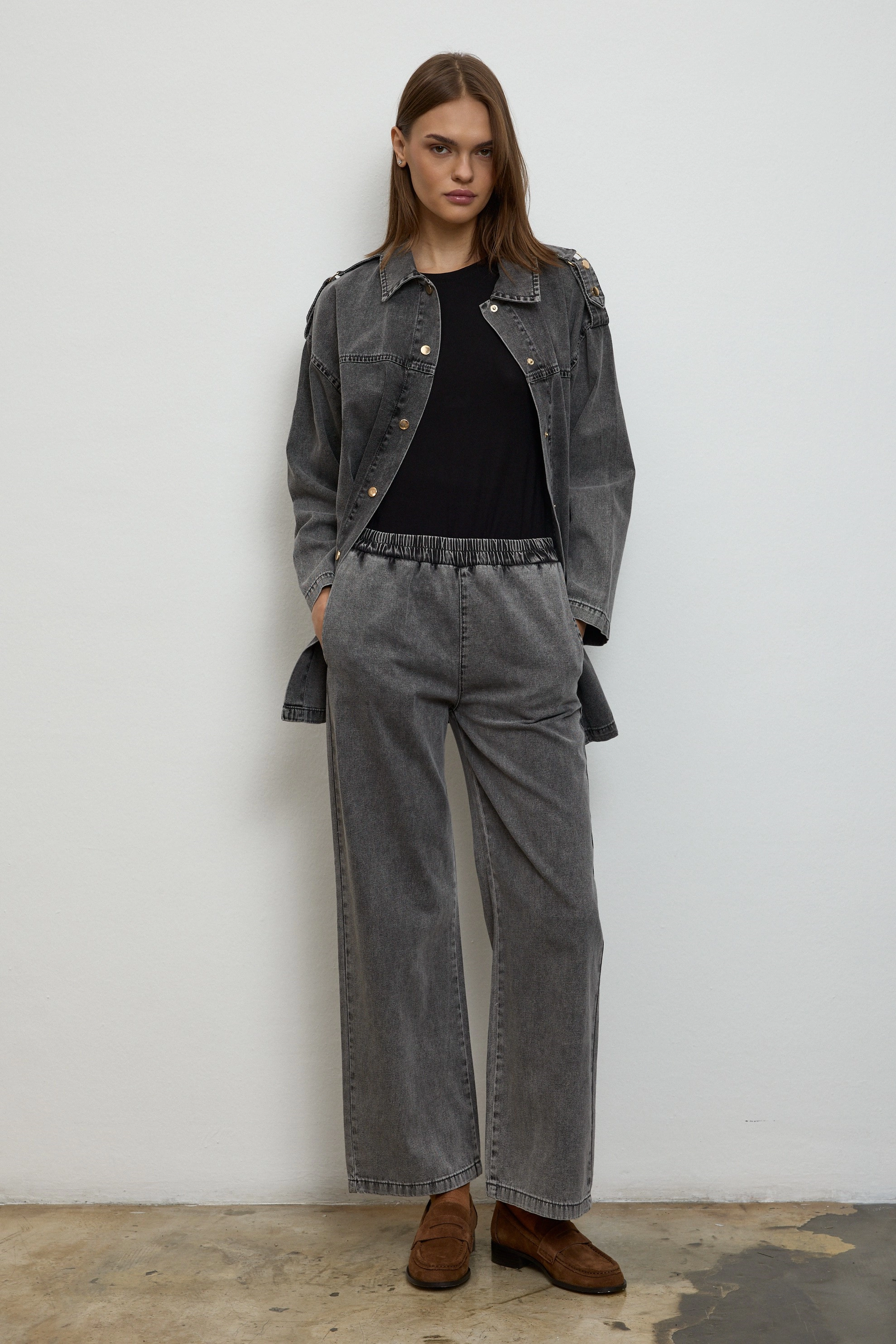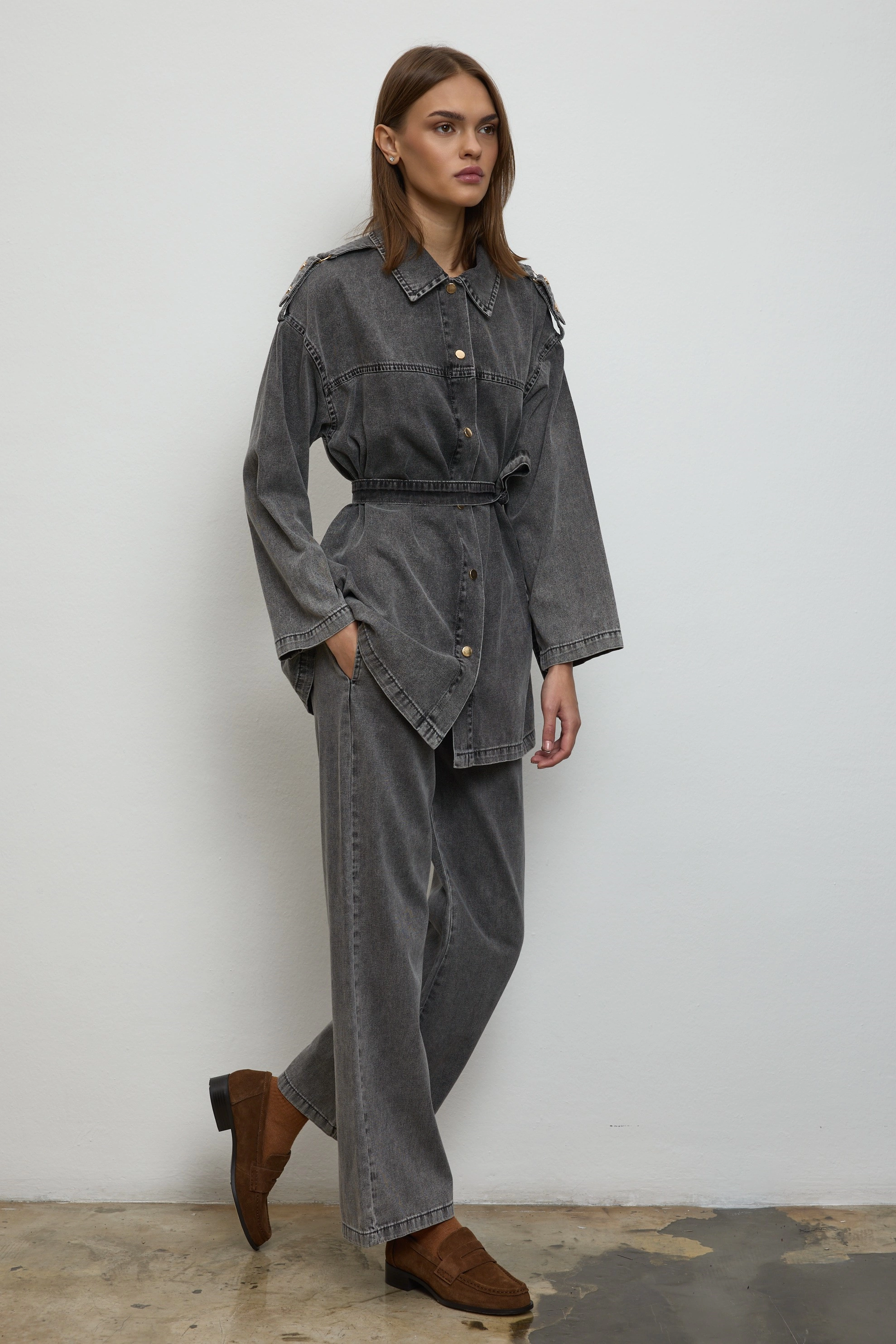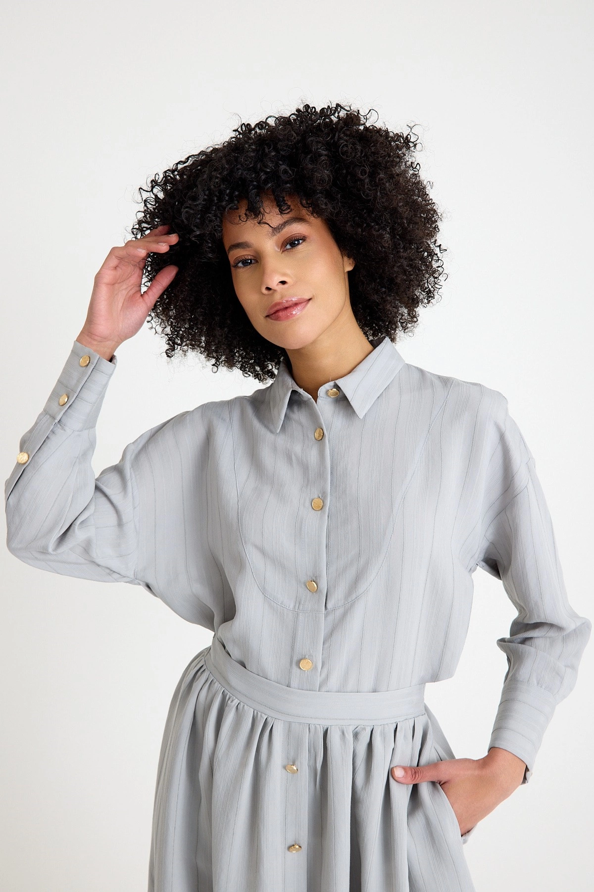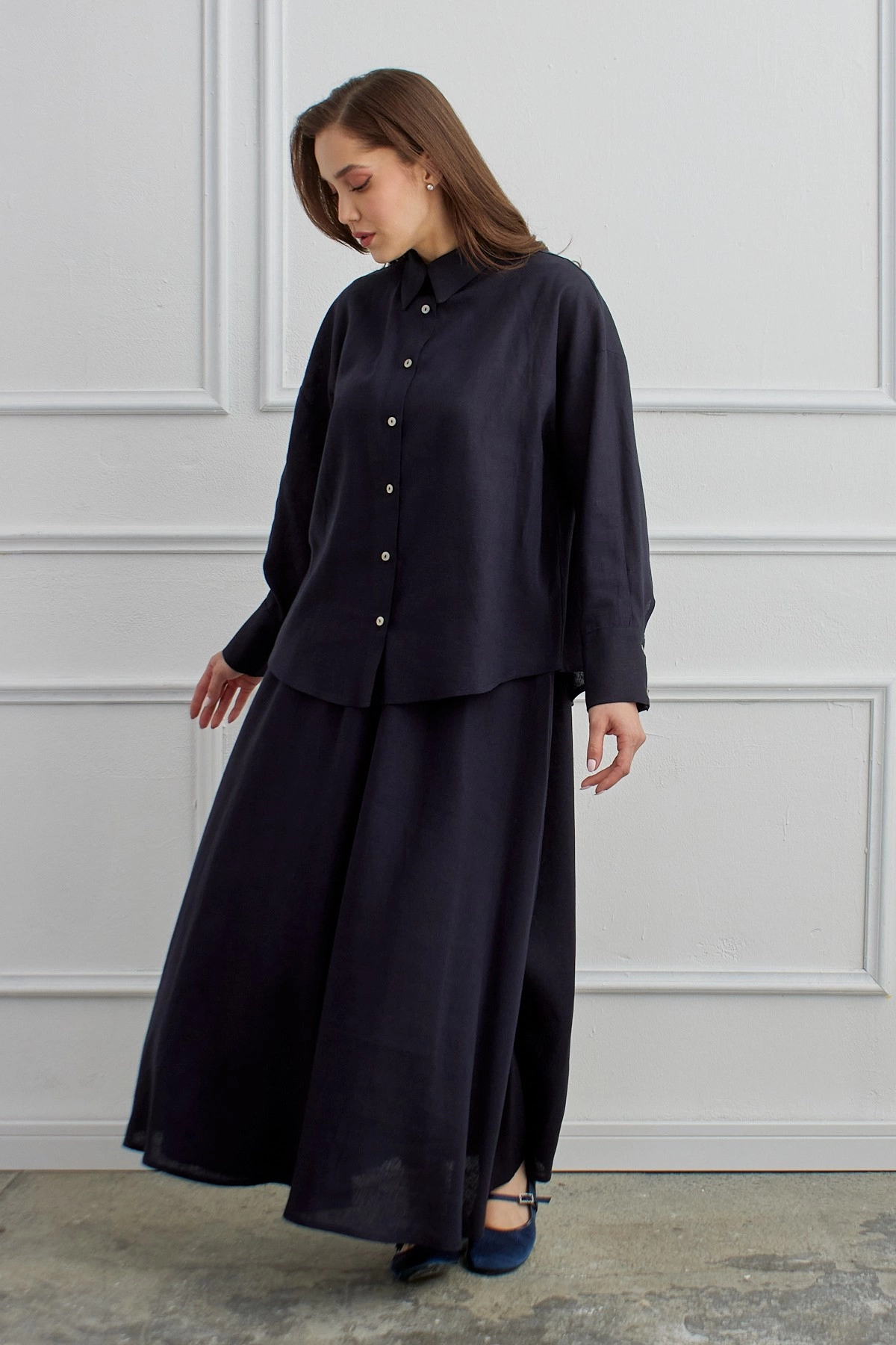 Qanu Düğmeli Etek Takım Yağ Yeşili