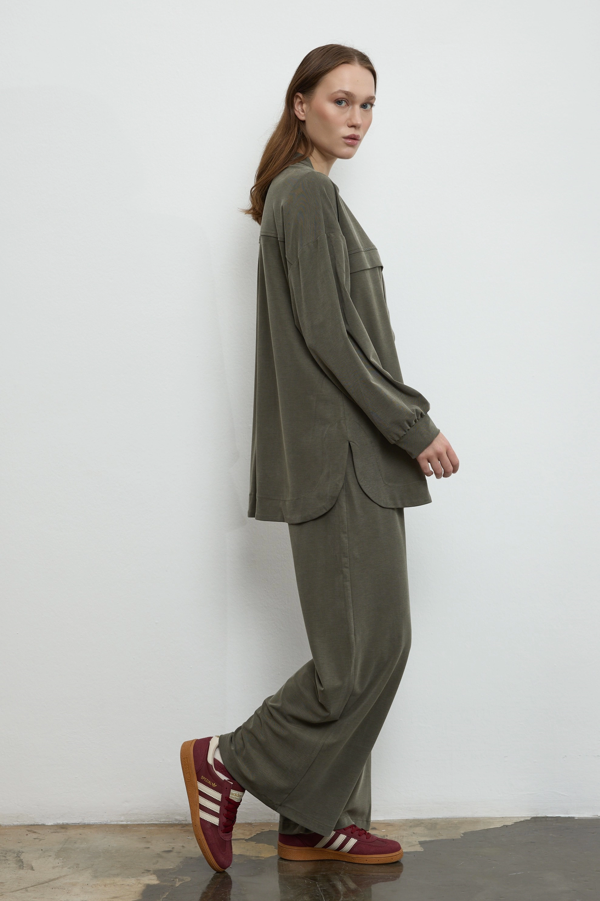 Qanu Müslin Pantolonlu Takım Yeşil