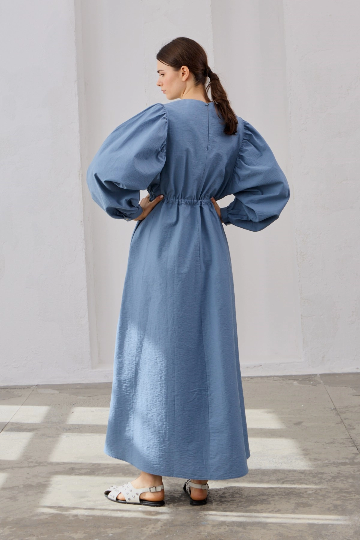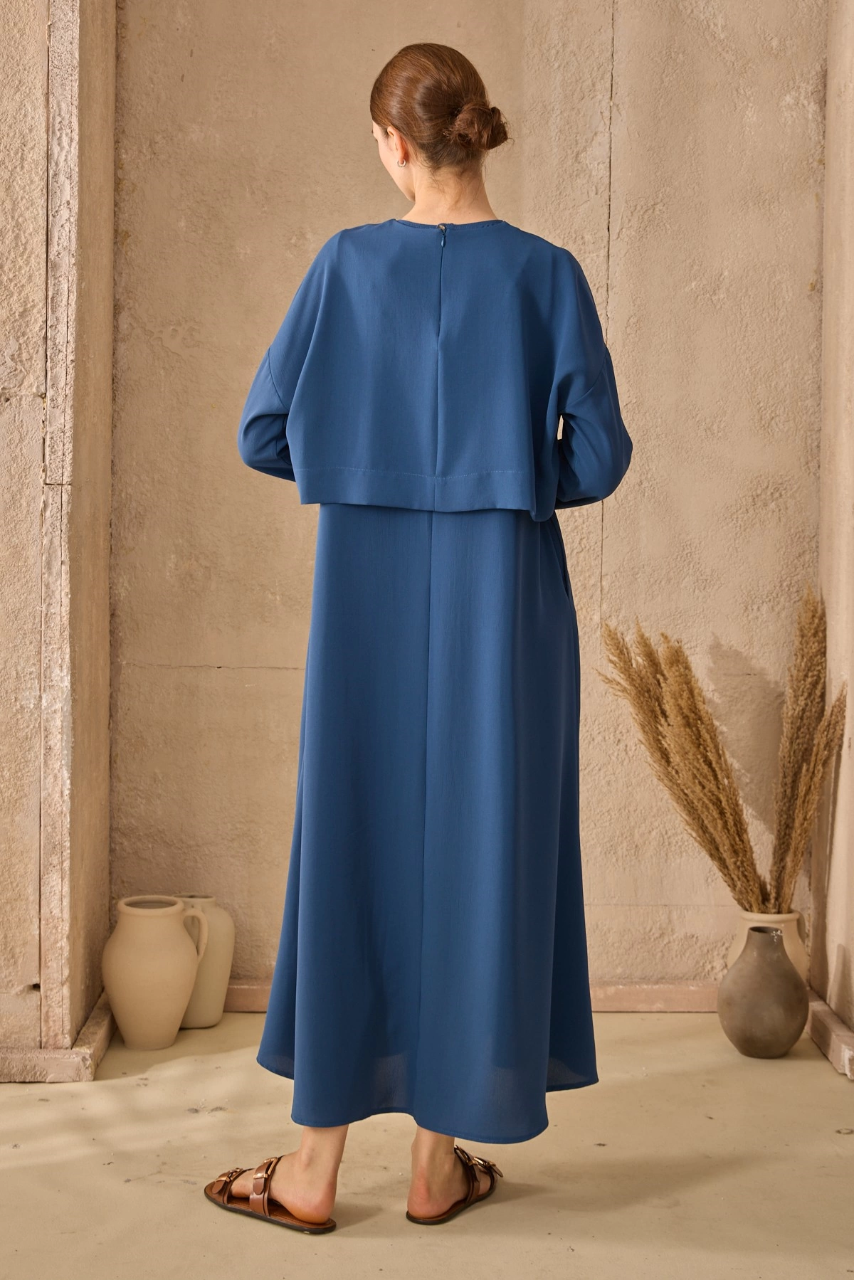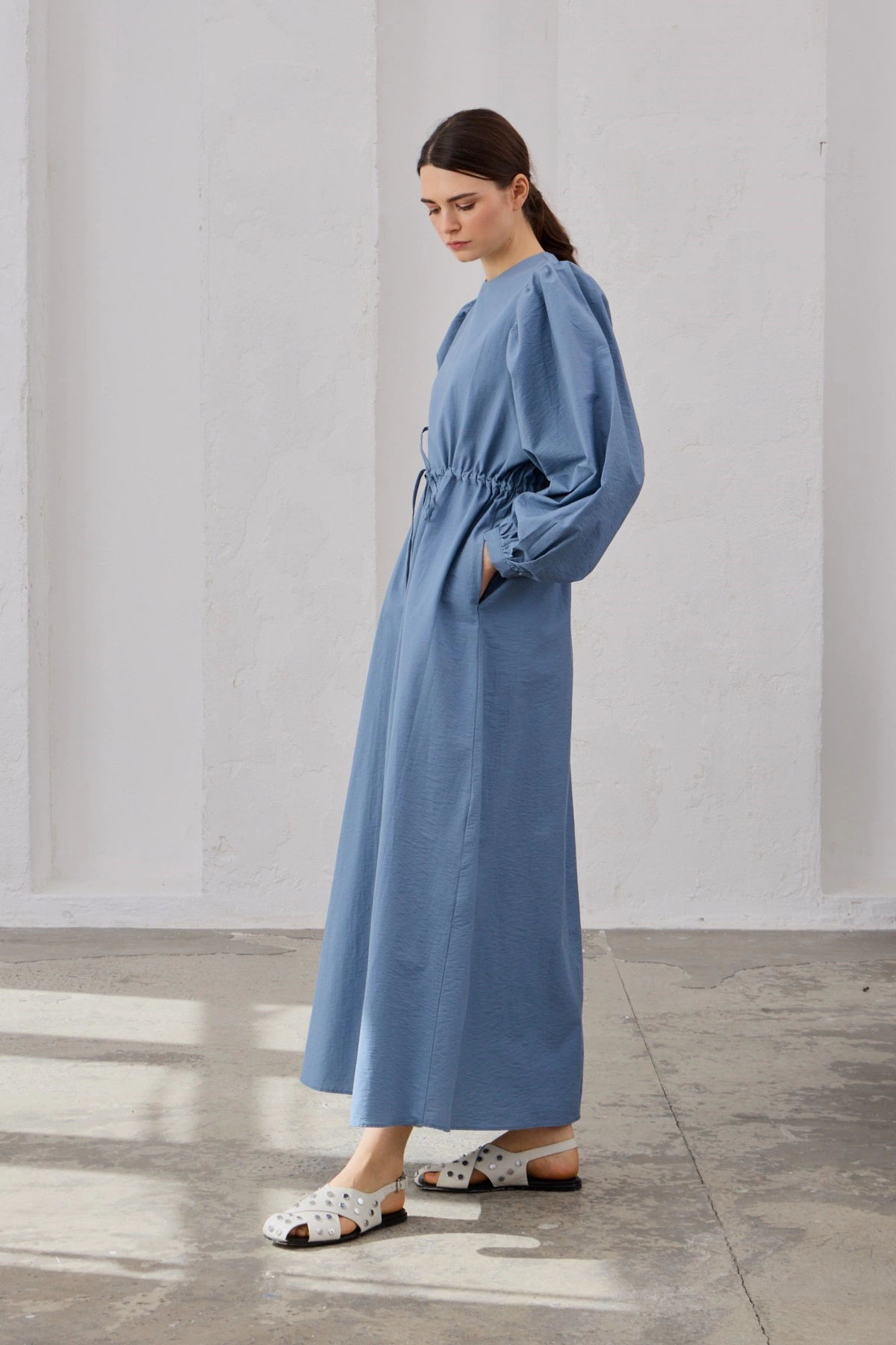 Qanu Pamuklu Büzgülü Elbise İndigo