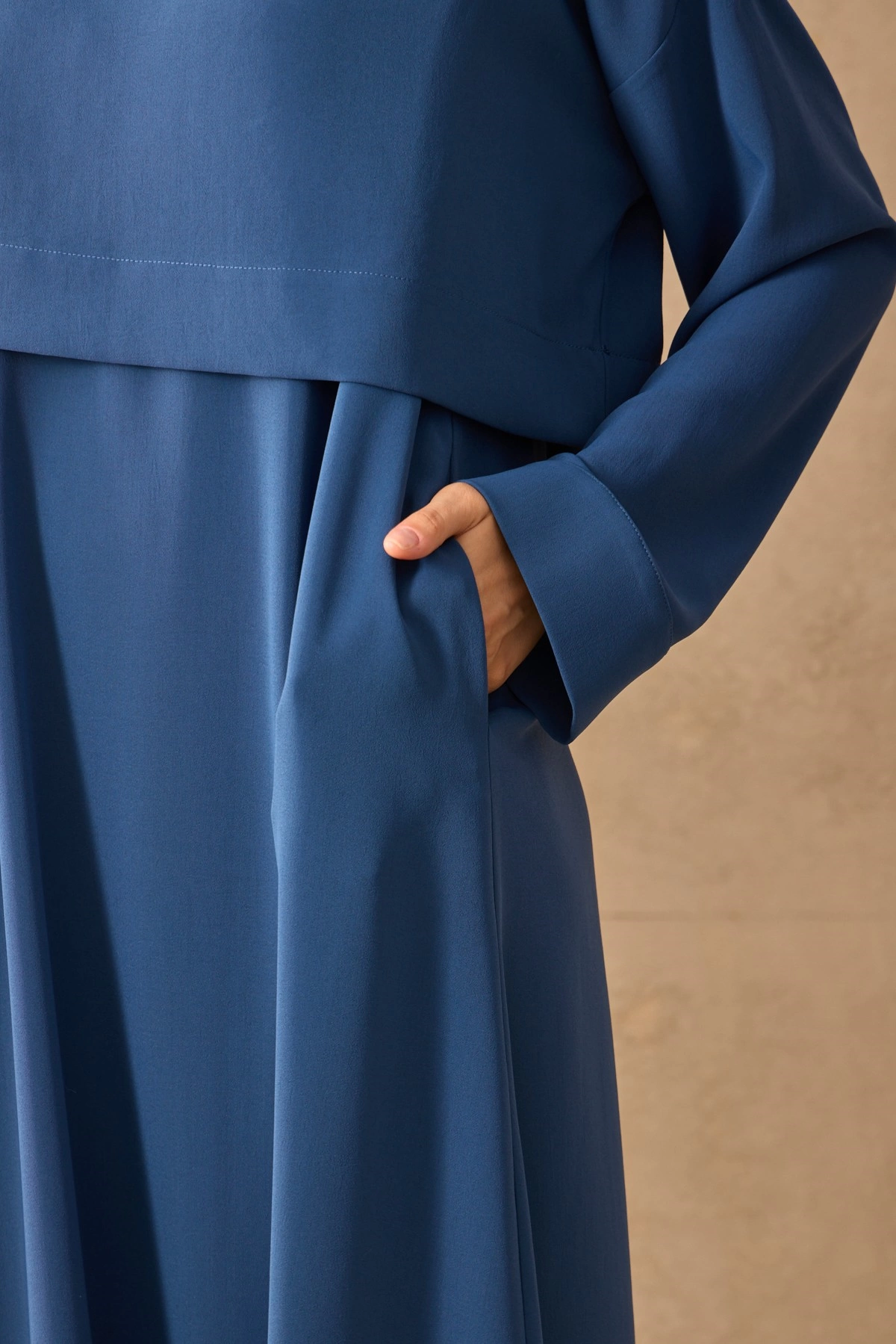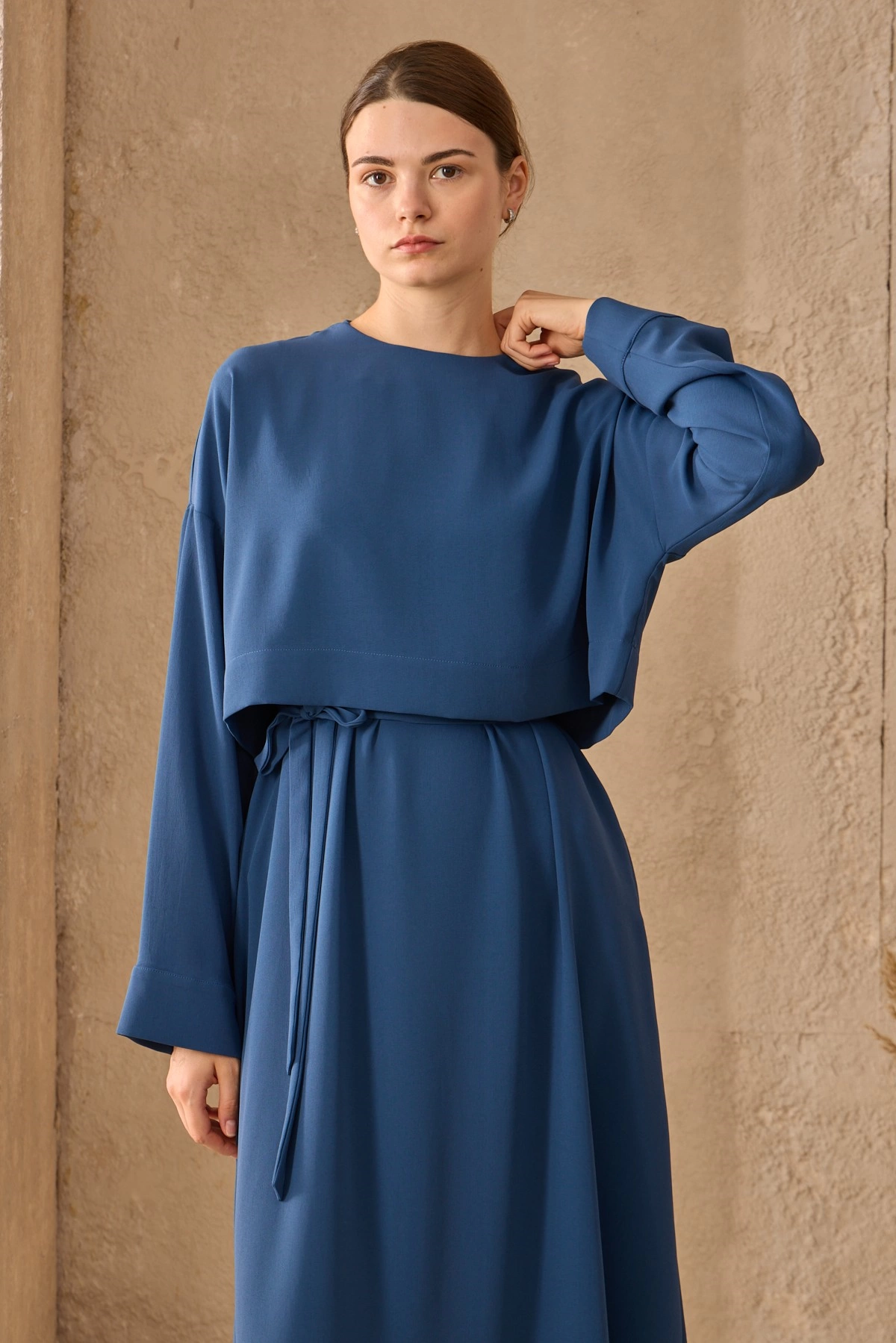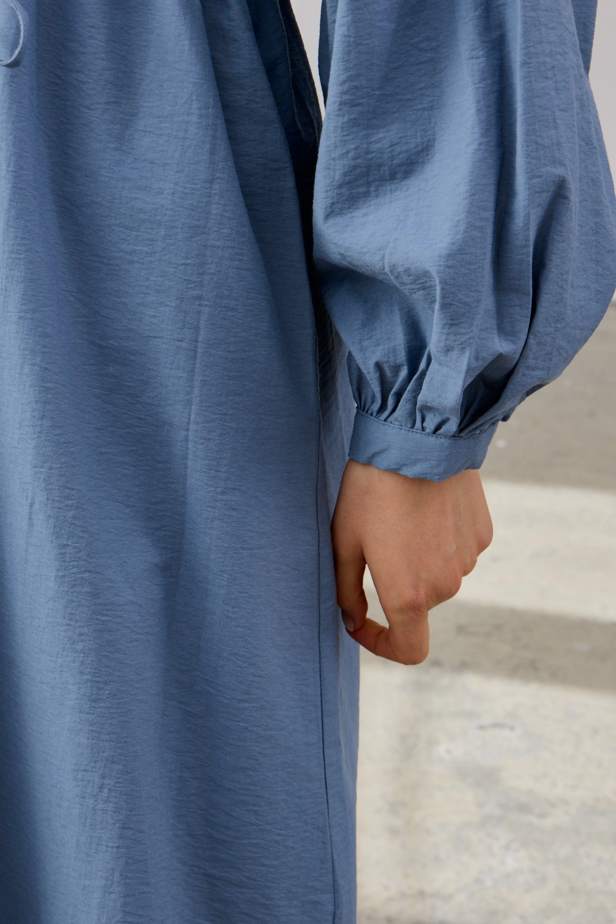 Qanu Pamuklu Büzgülü Elbise İndigo