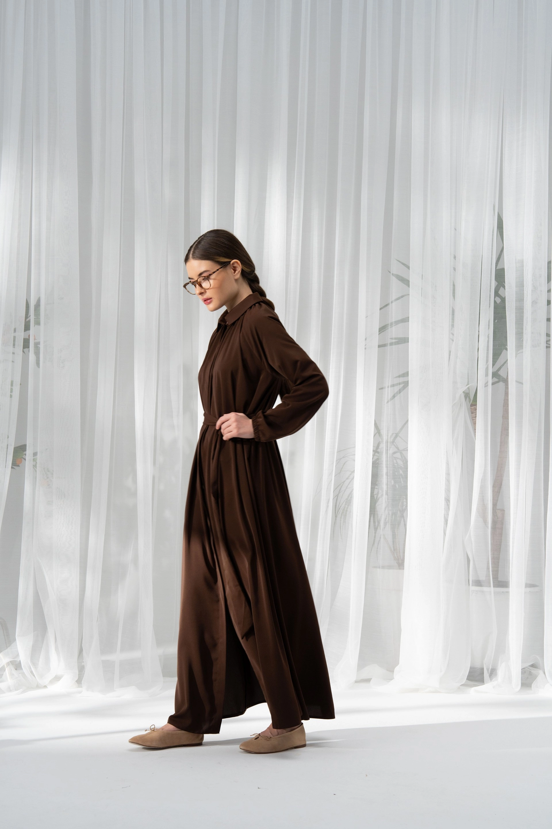 Qanu Fermuarlı Ferace Kahverengi