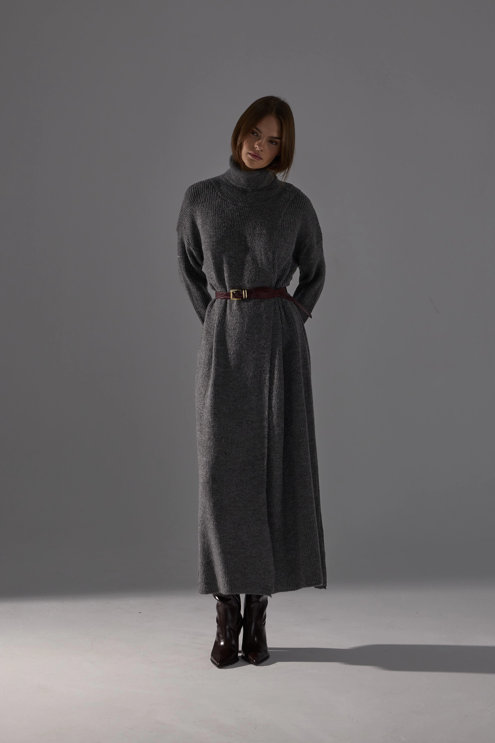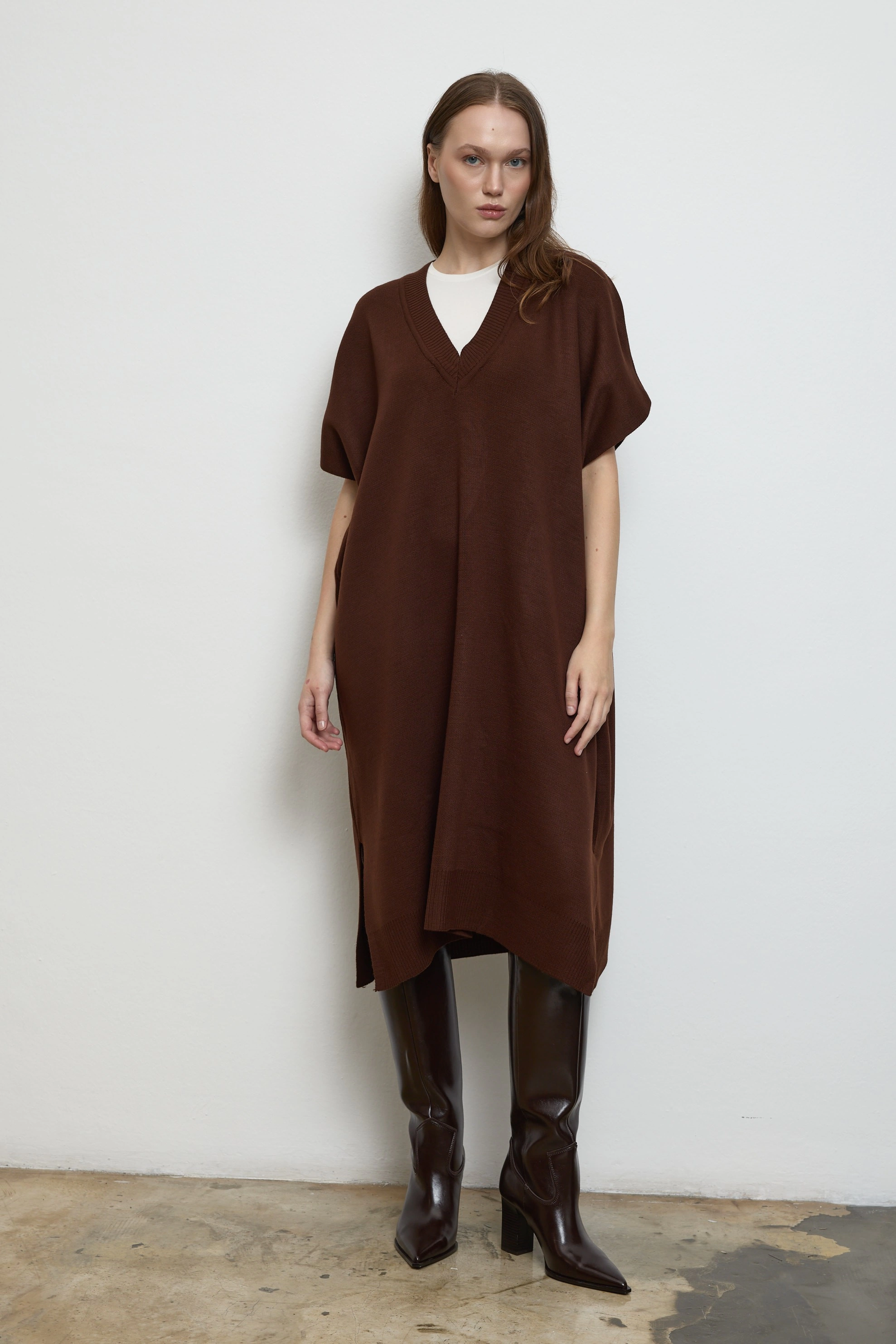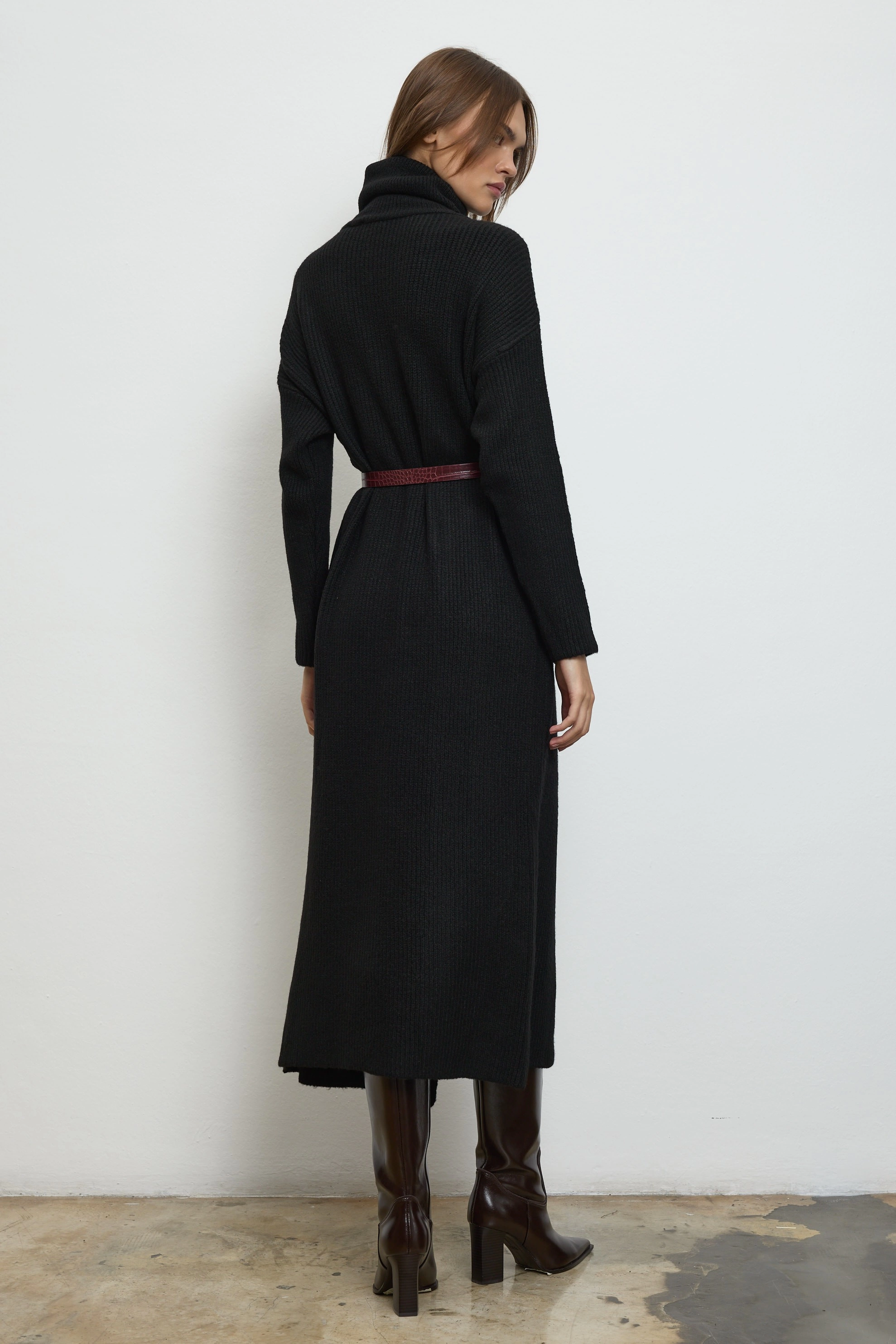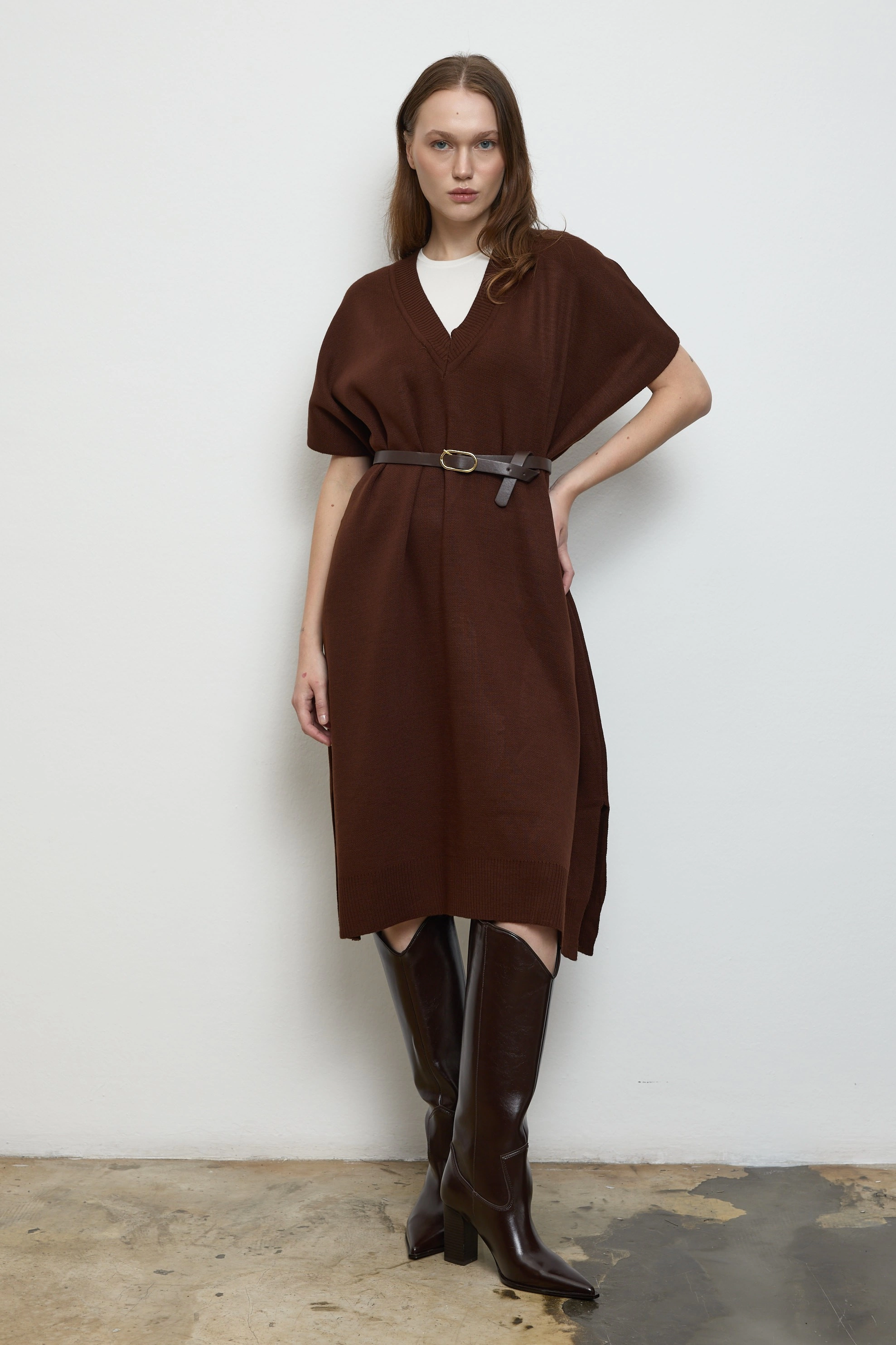 Qanu Yırtmaçlı Triko Tunik Siyah