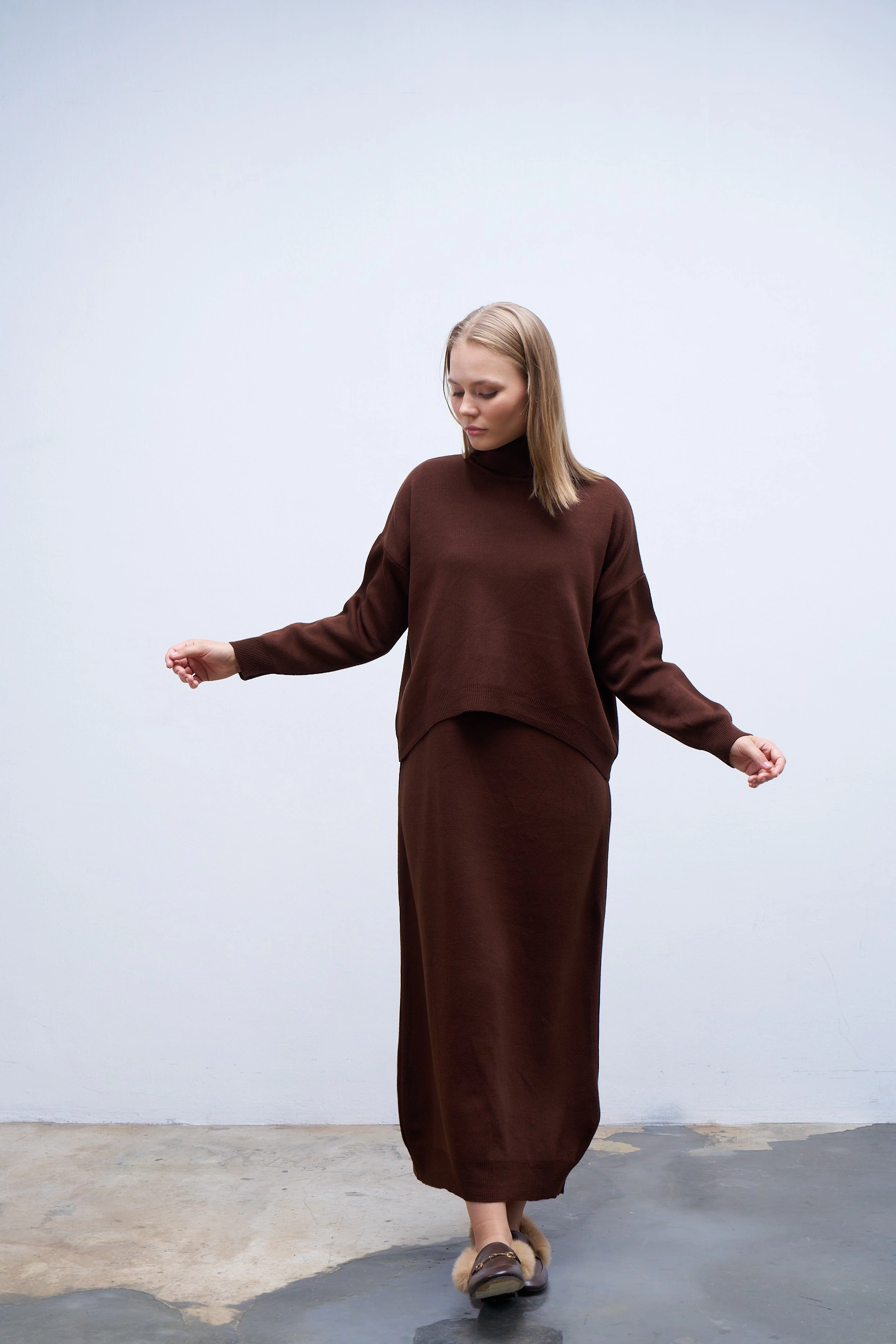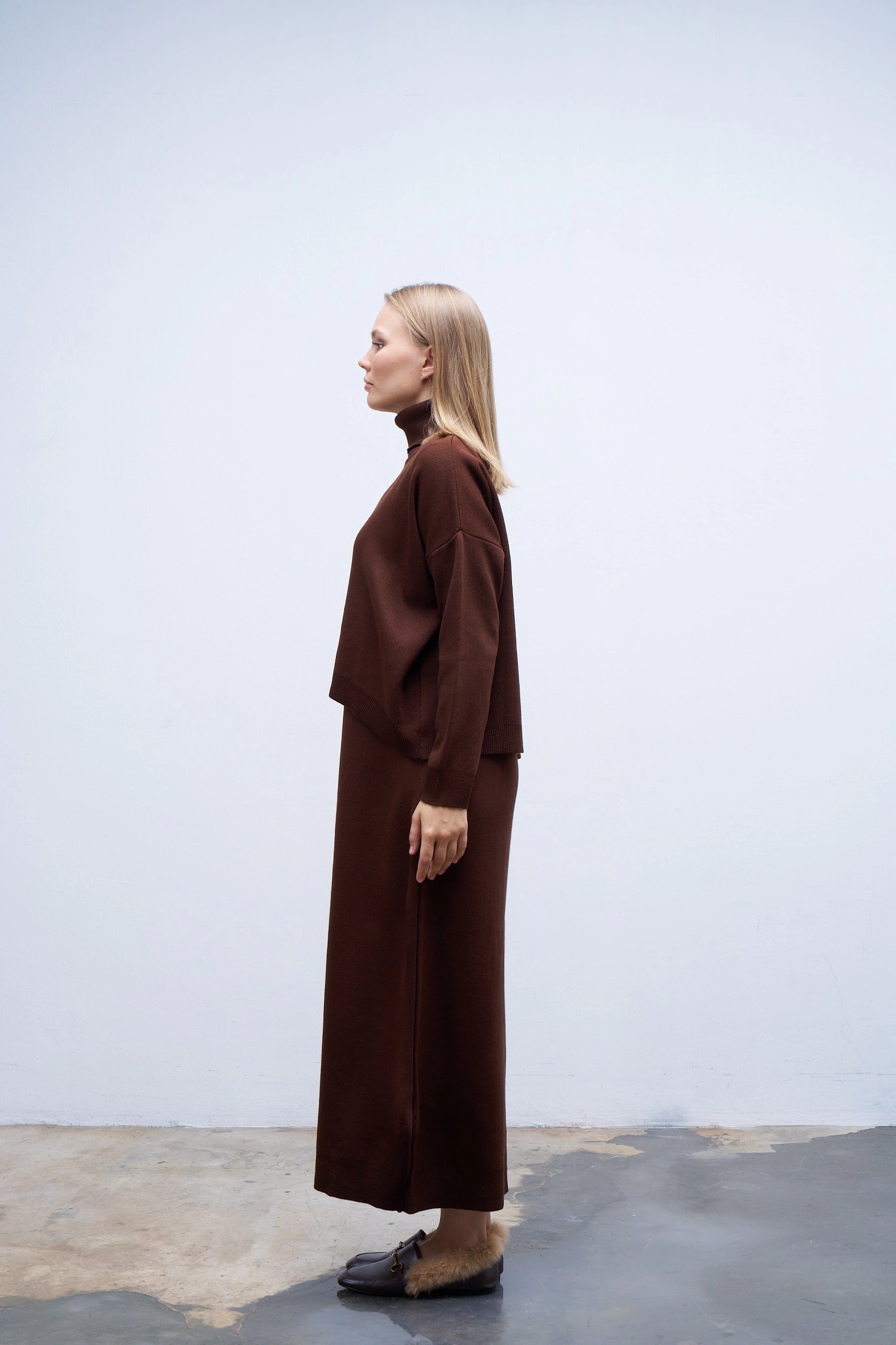 Qanu Şal Detaylı Triko Kazak Kahverengi