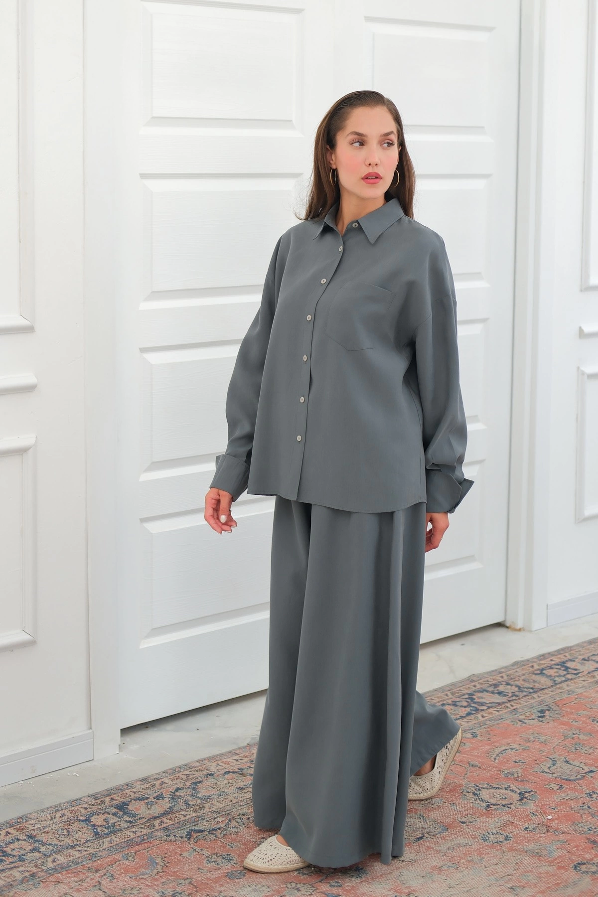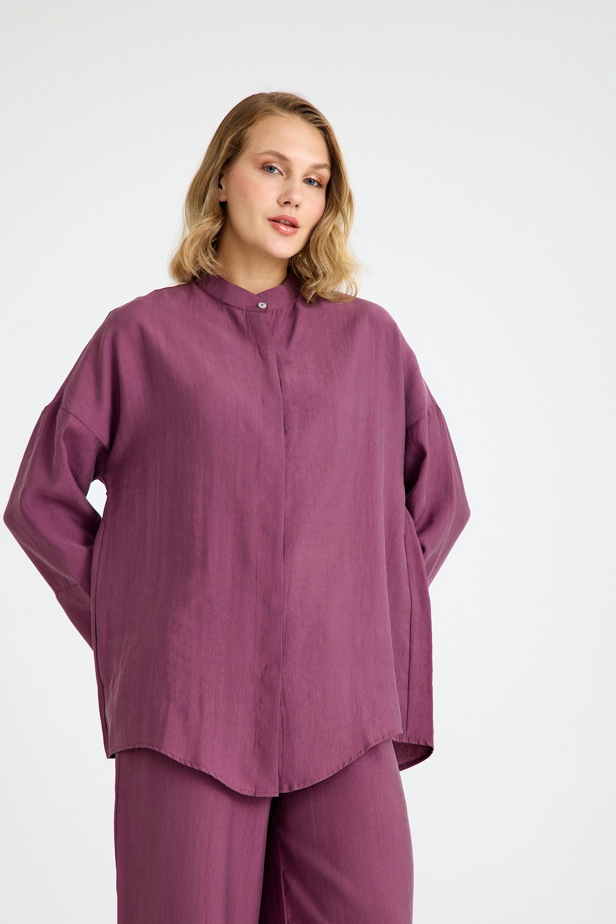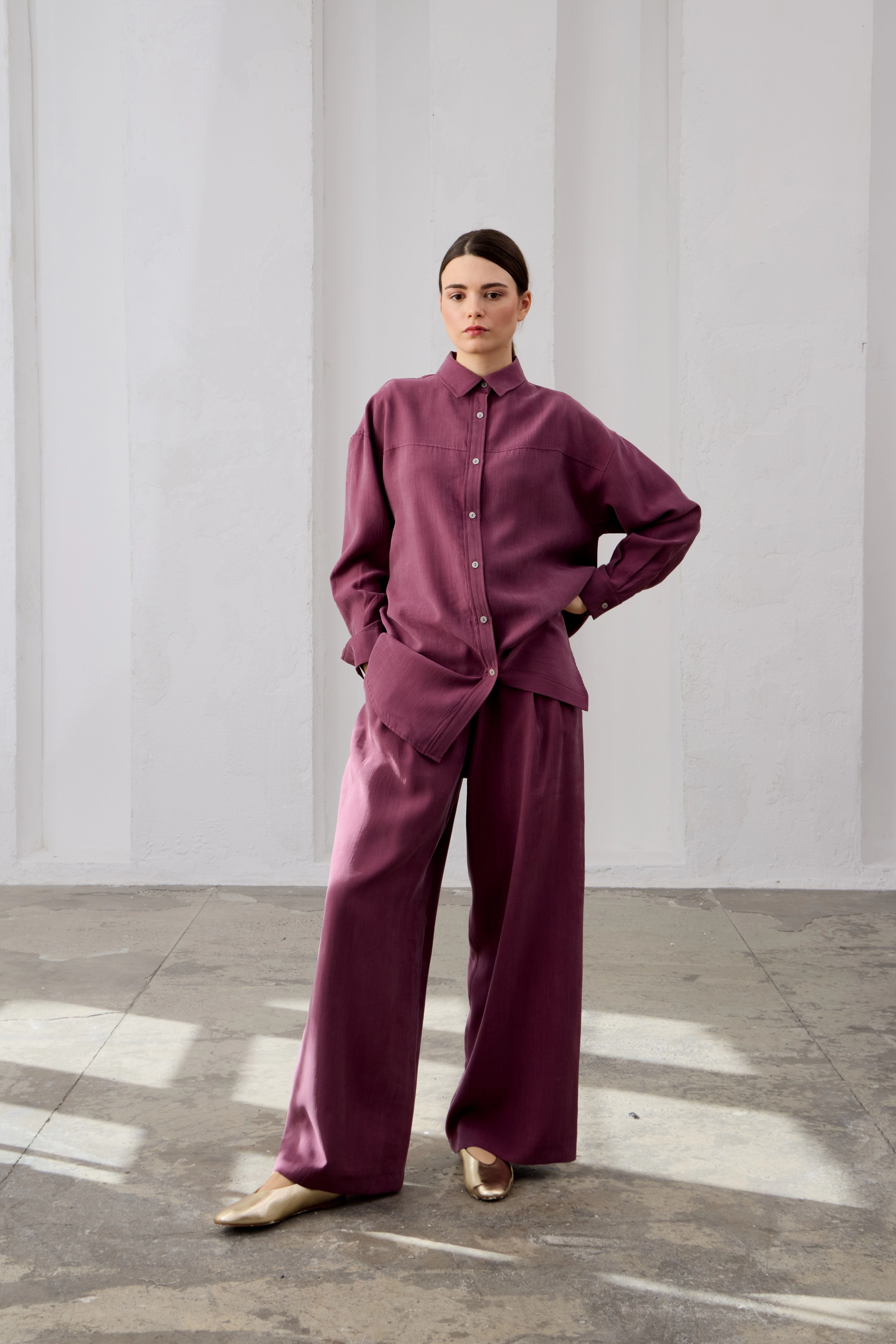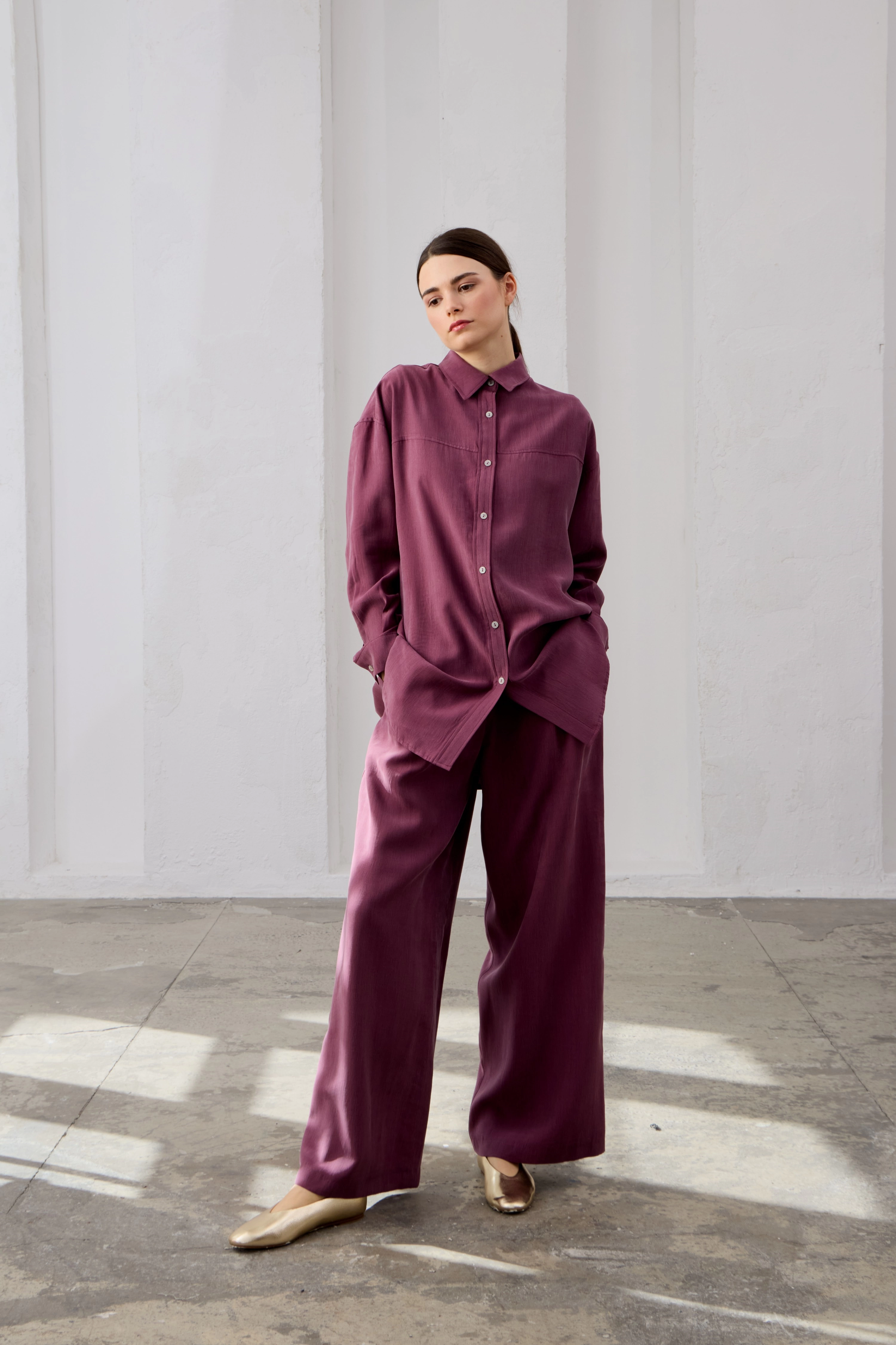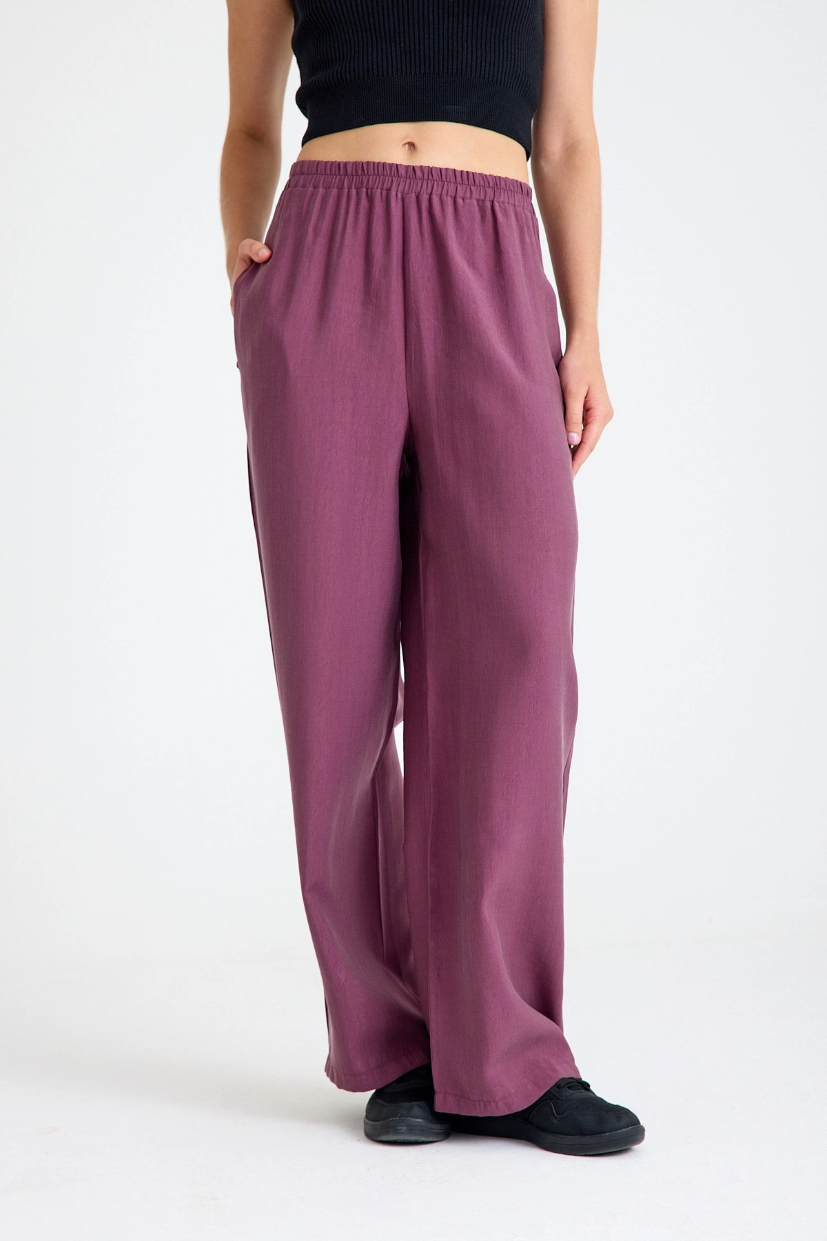 Qanu Lastikli Tensel Pantolon Mürdüm