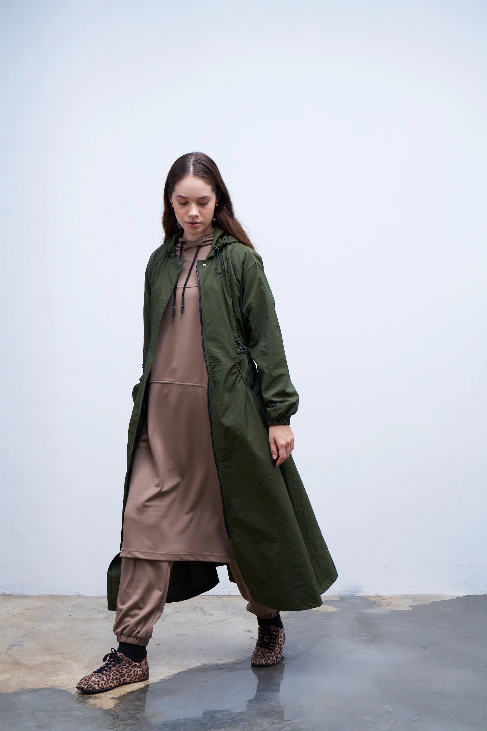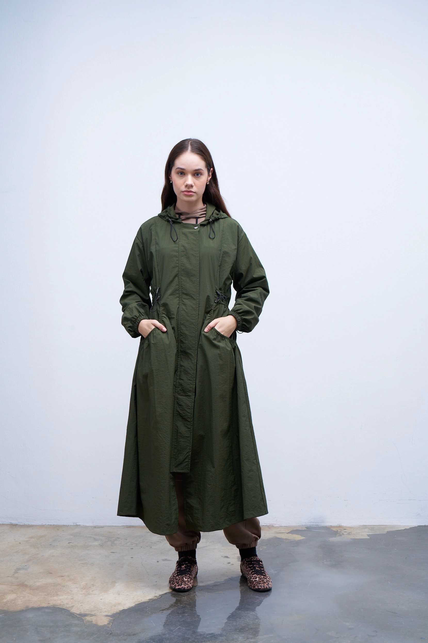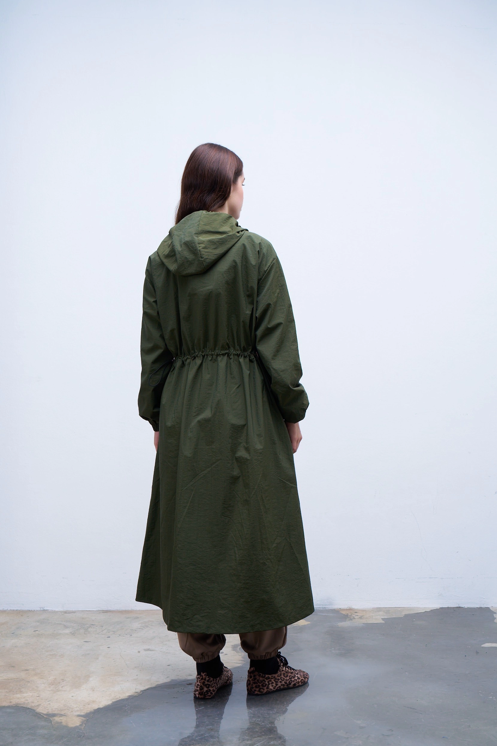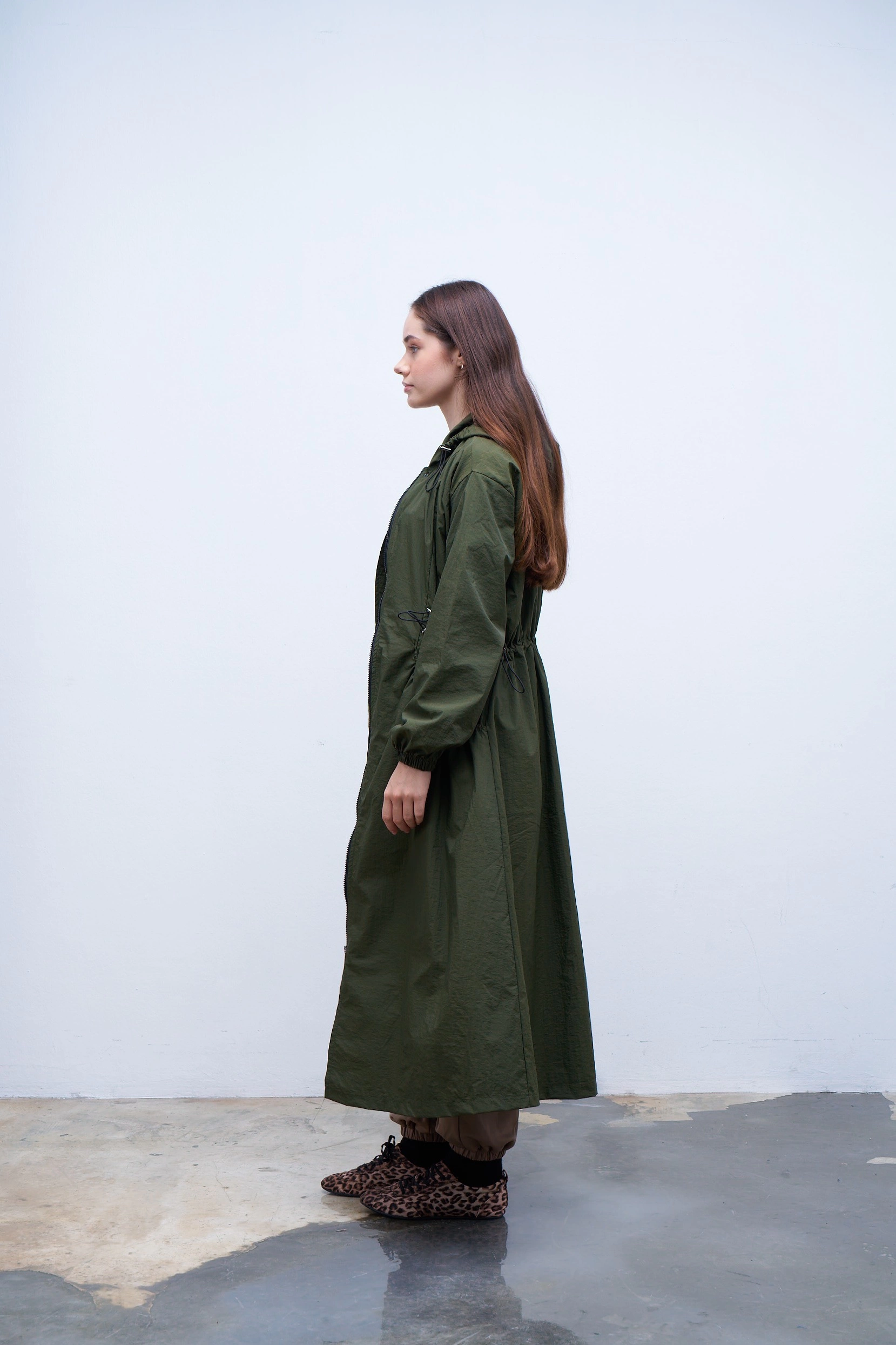 Qanu Pamuklu Büzgülü Elbise Yeşil