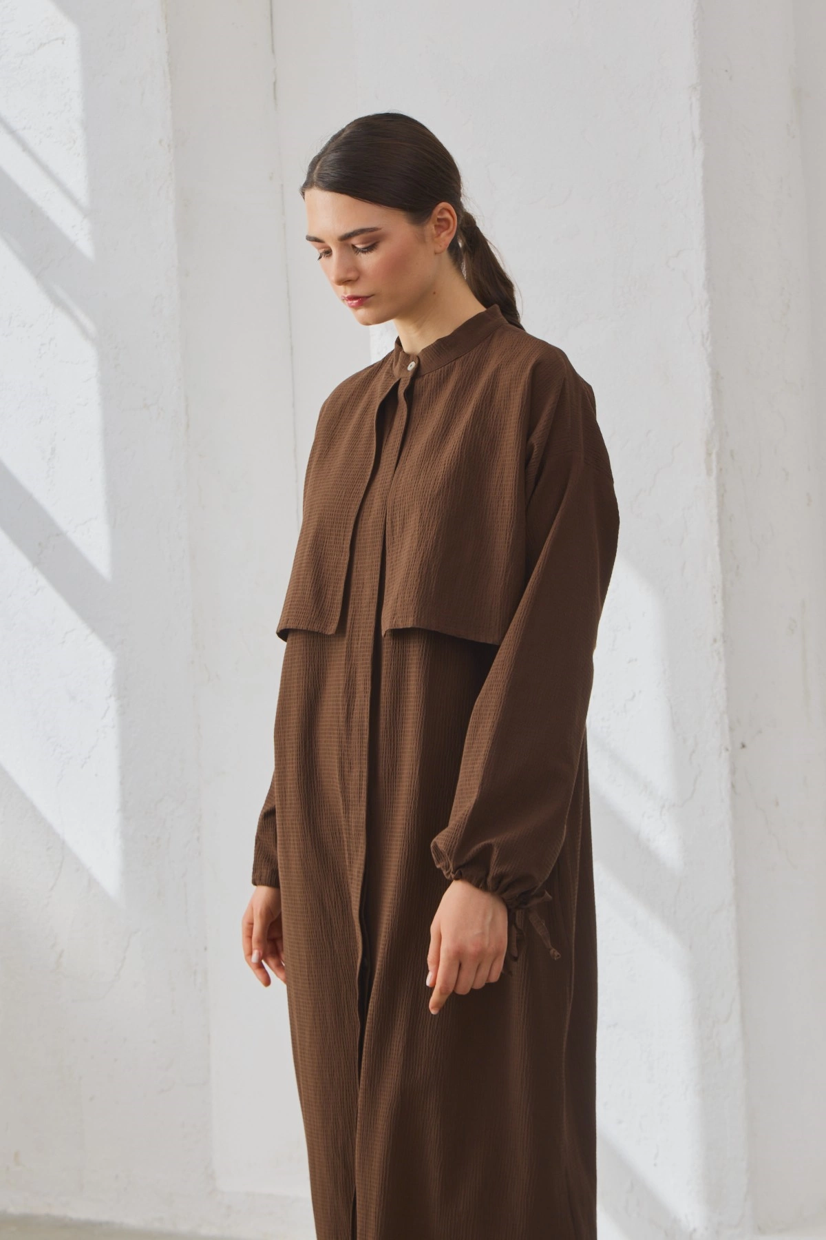 Qanu Şal Detaylı Triko Kazak Kahverengi