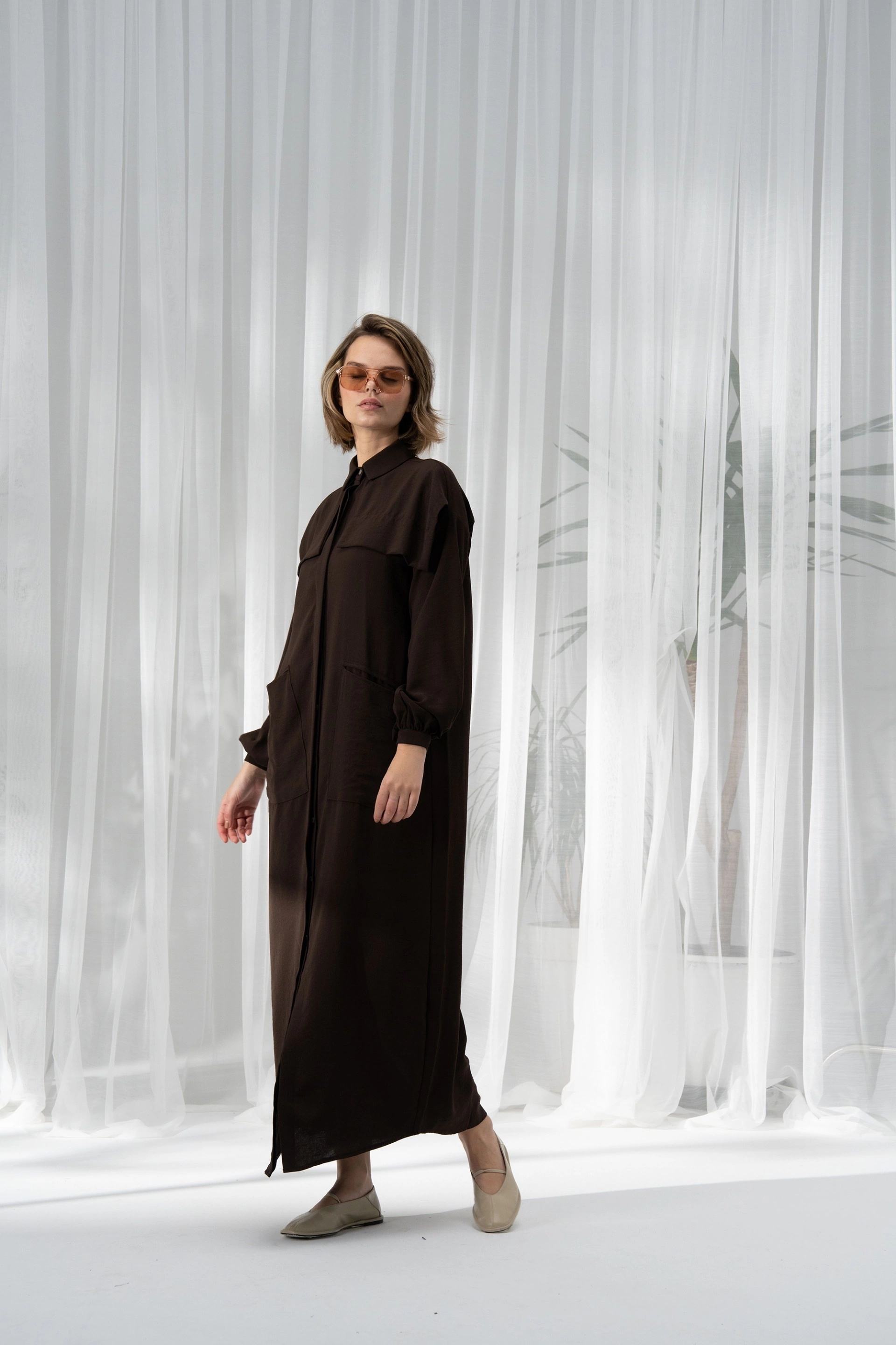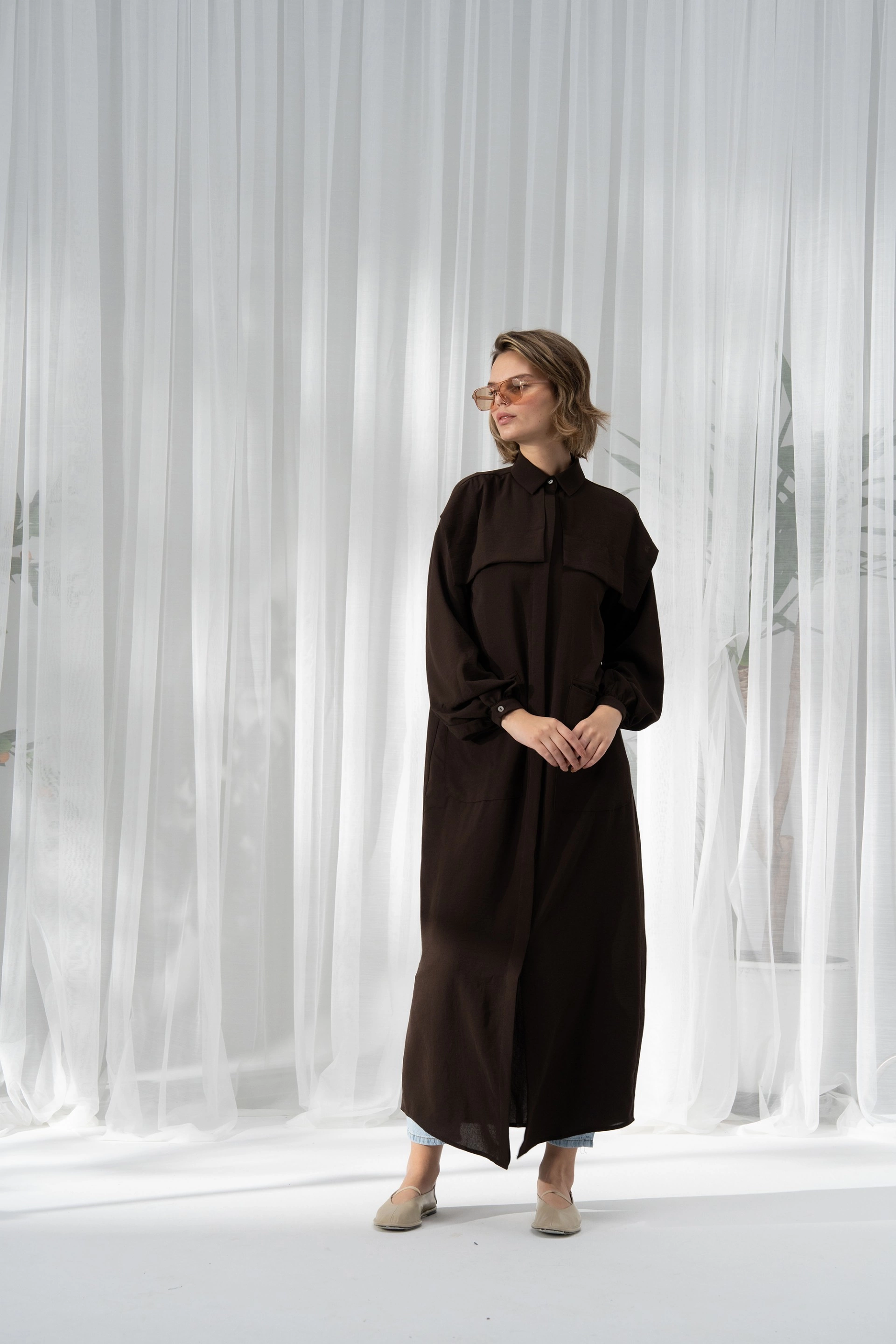 Qanu Şal Detaylı Triko Kazak Kahverengi
