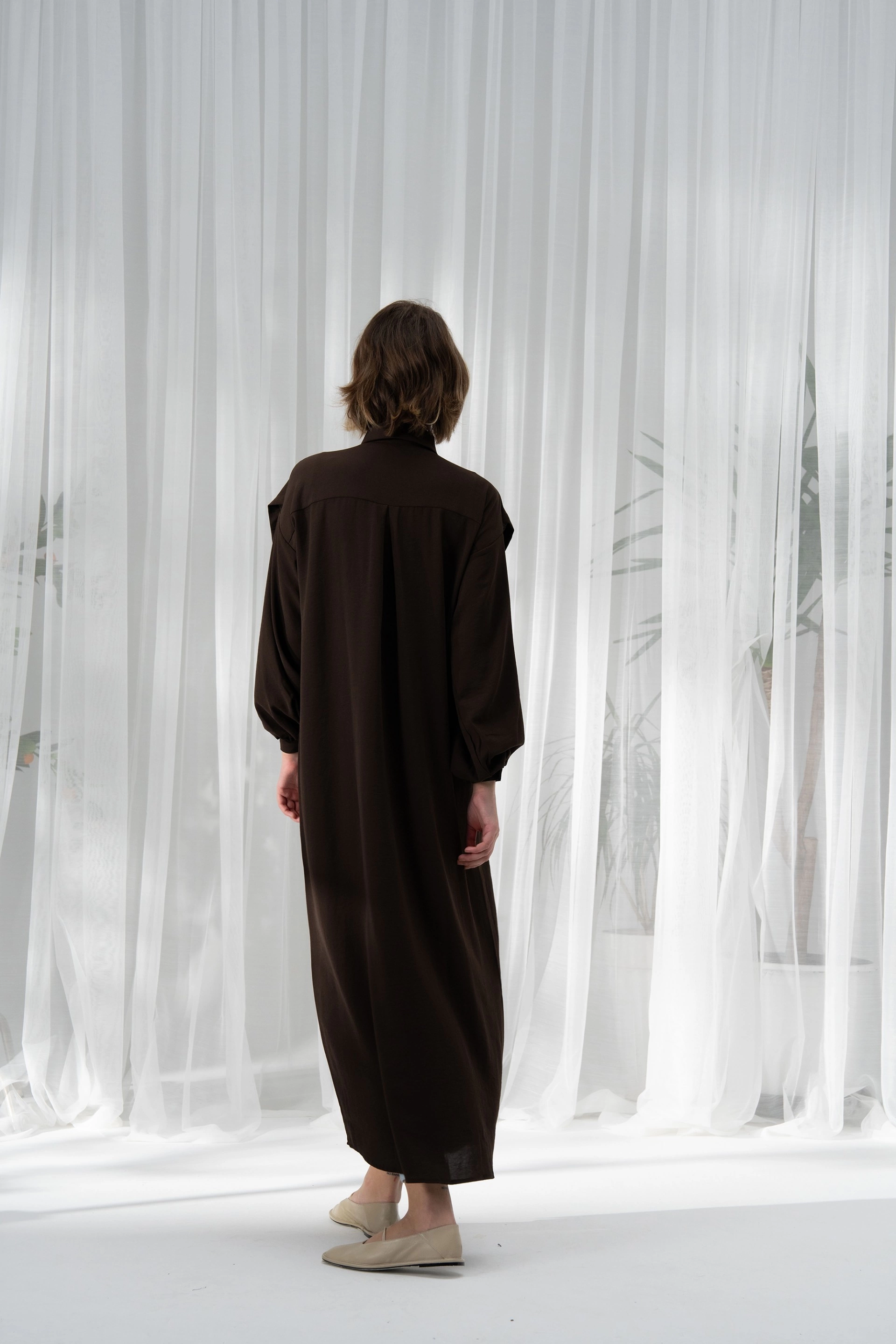 Qanu V Yaka Uzun Sweatshirt Kahverengi