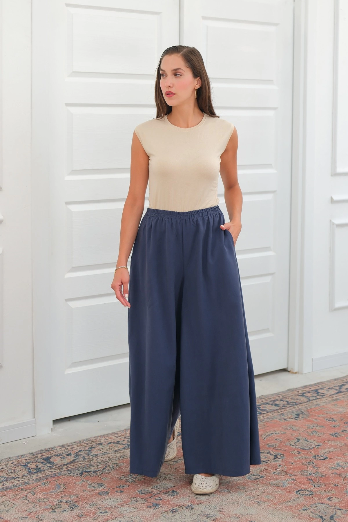 Qanu Lastikli Tensel Pantolon Lacivert