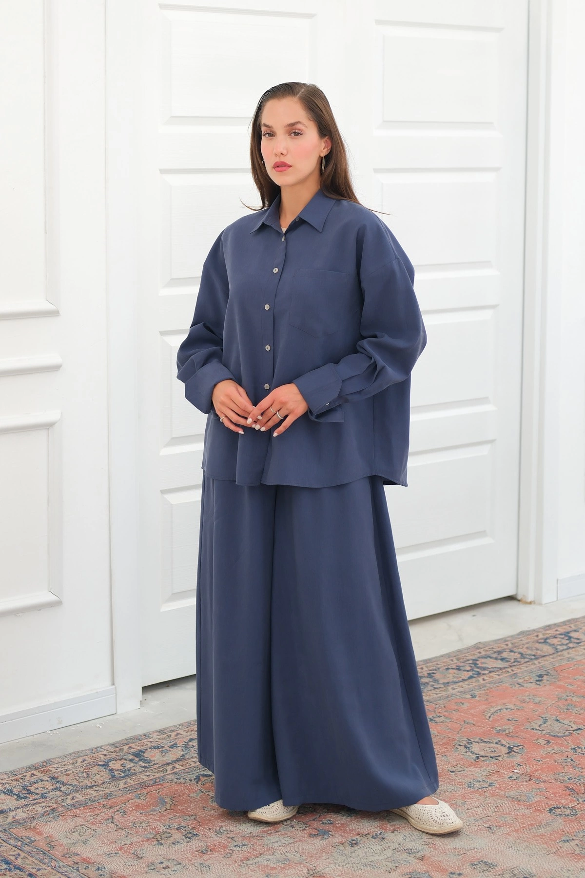 Qanu Azur Keten Etekli Takım Lacivert
