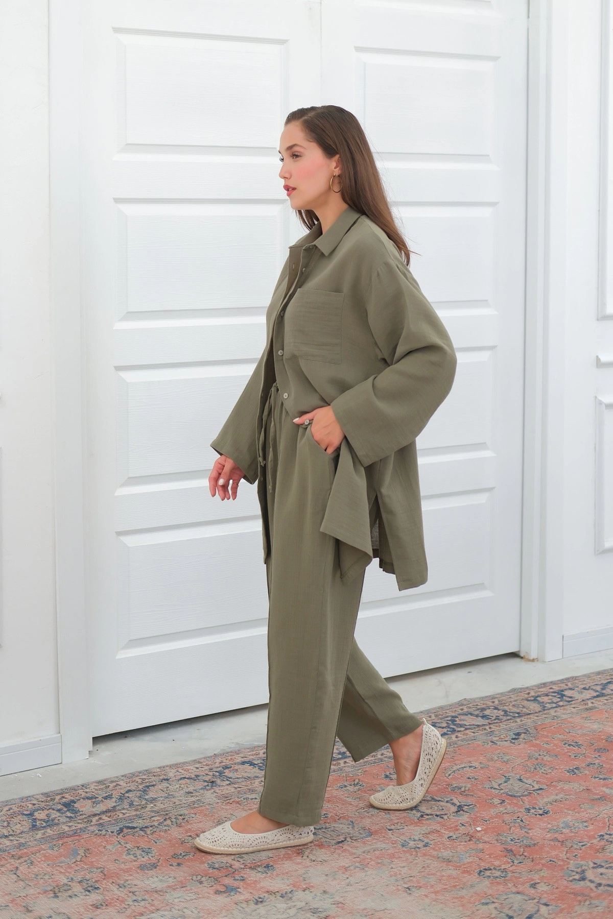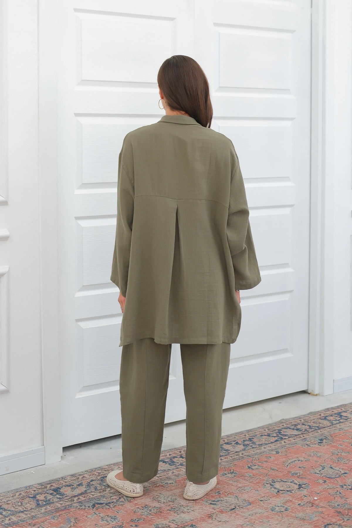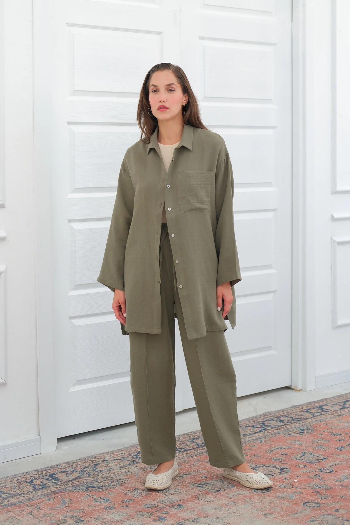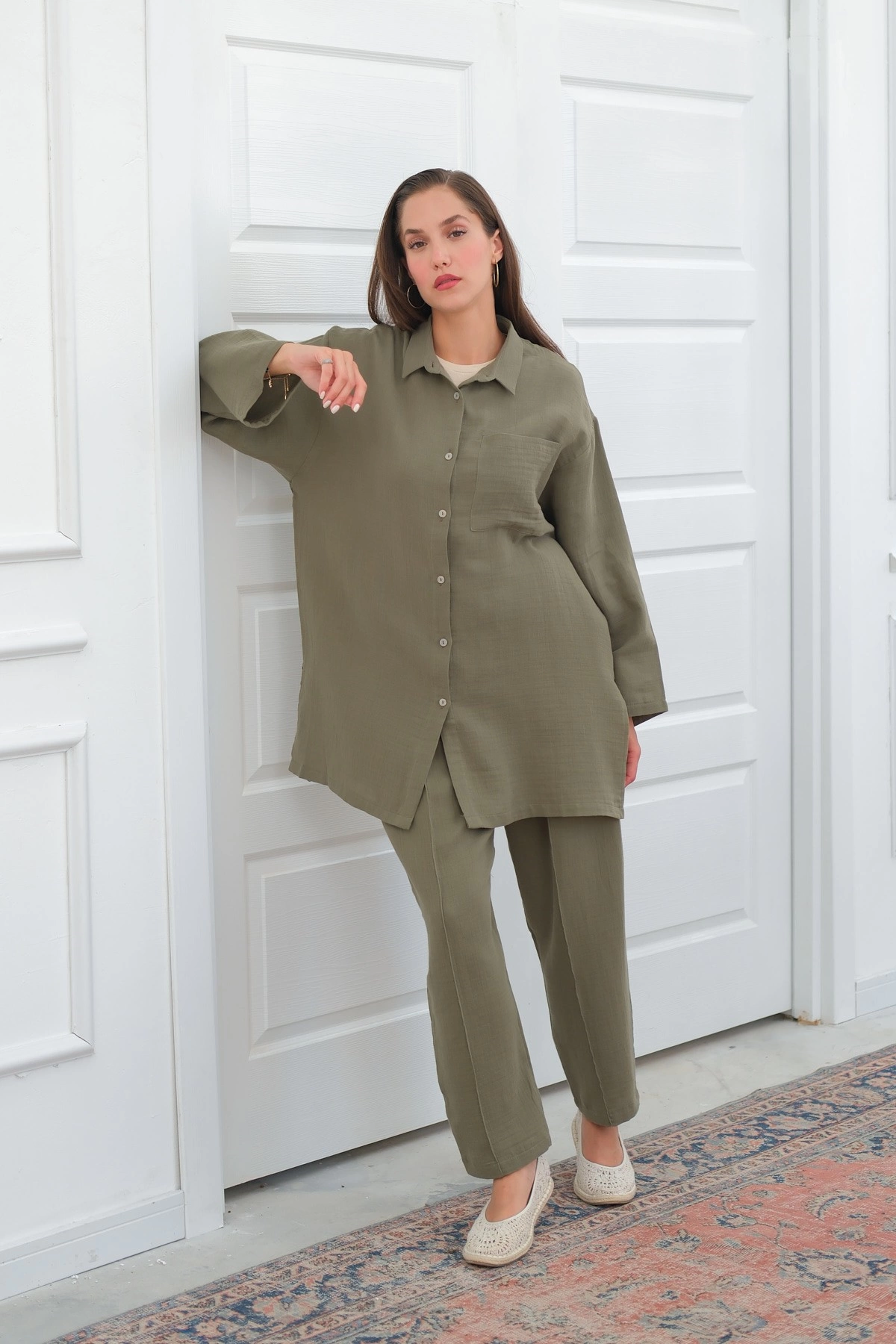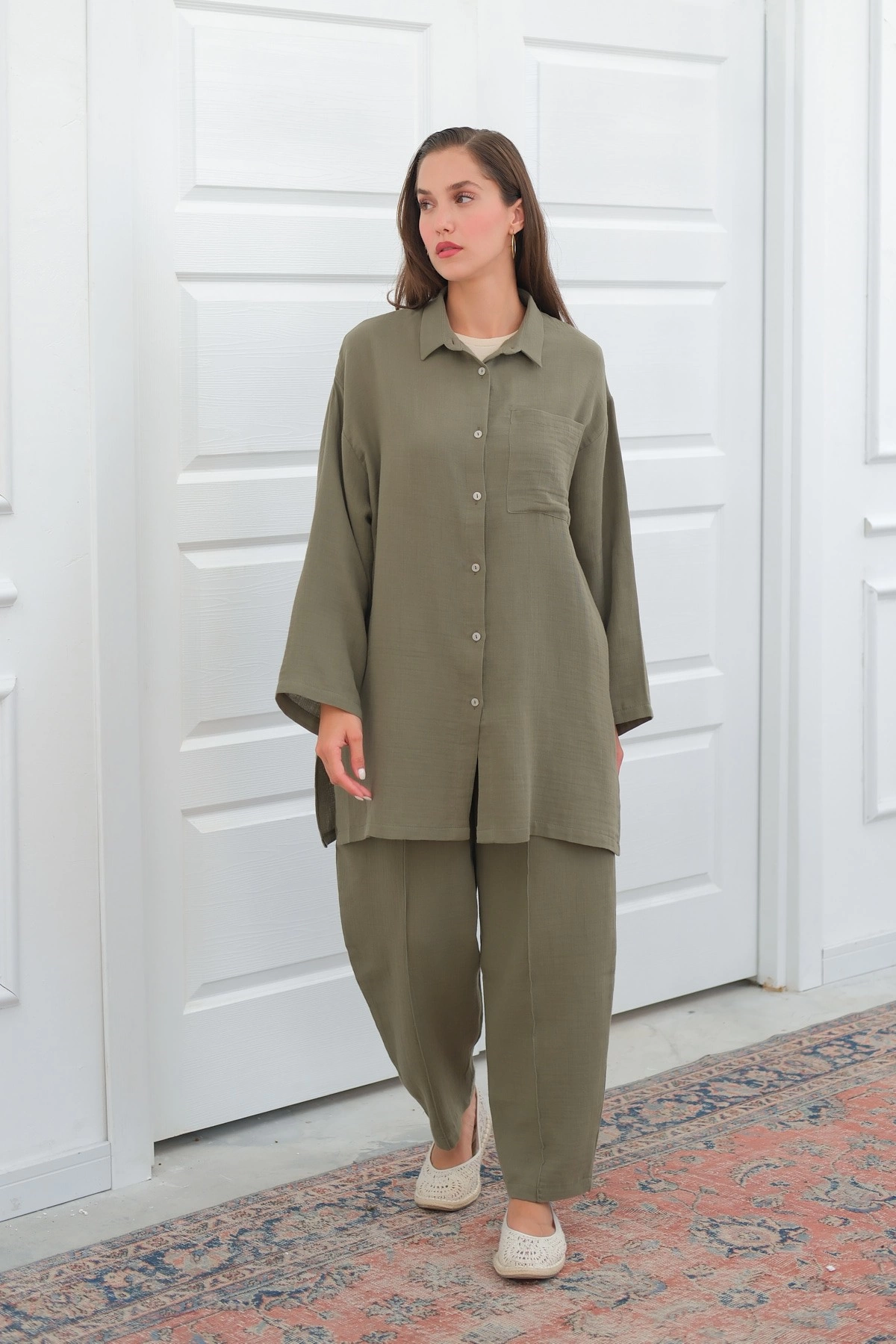 Qanu Biye Detaylı Pamuklu Gömlek Yeşil
