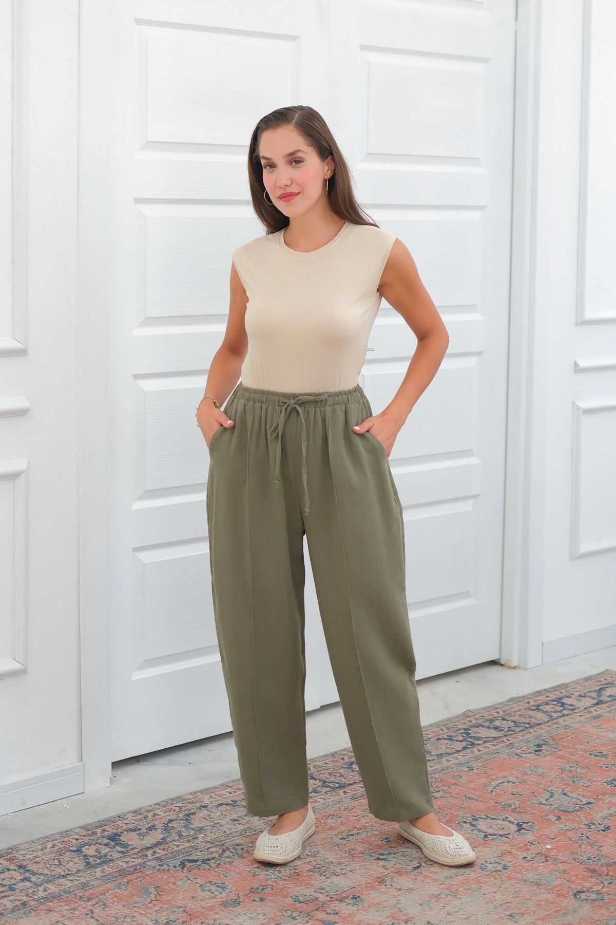 Qanu Pamuklu Büzgülü Elbise Yeşil