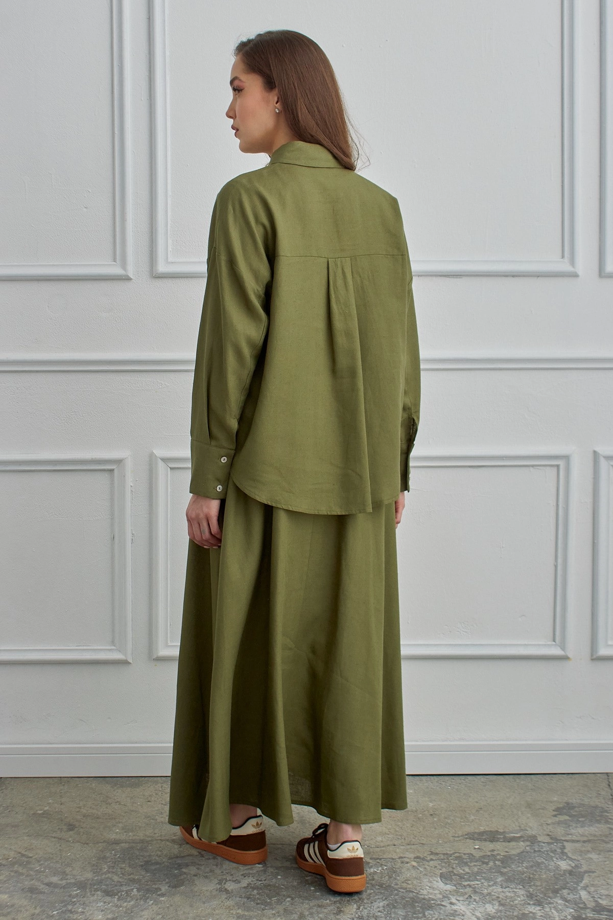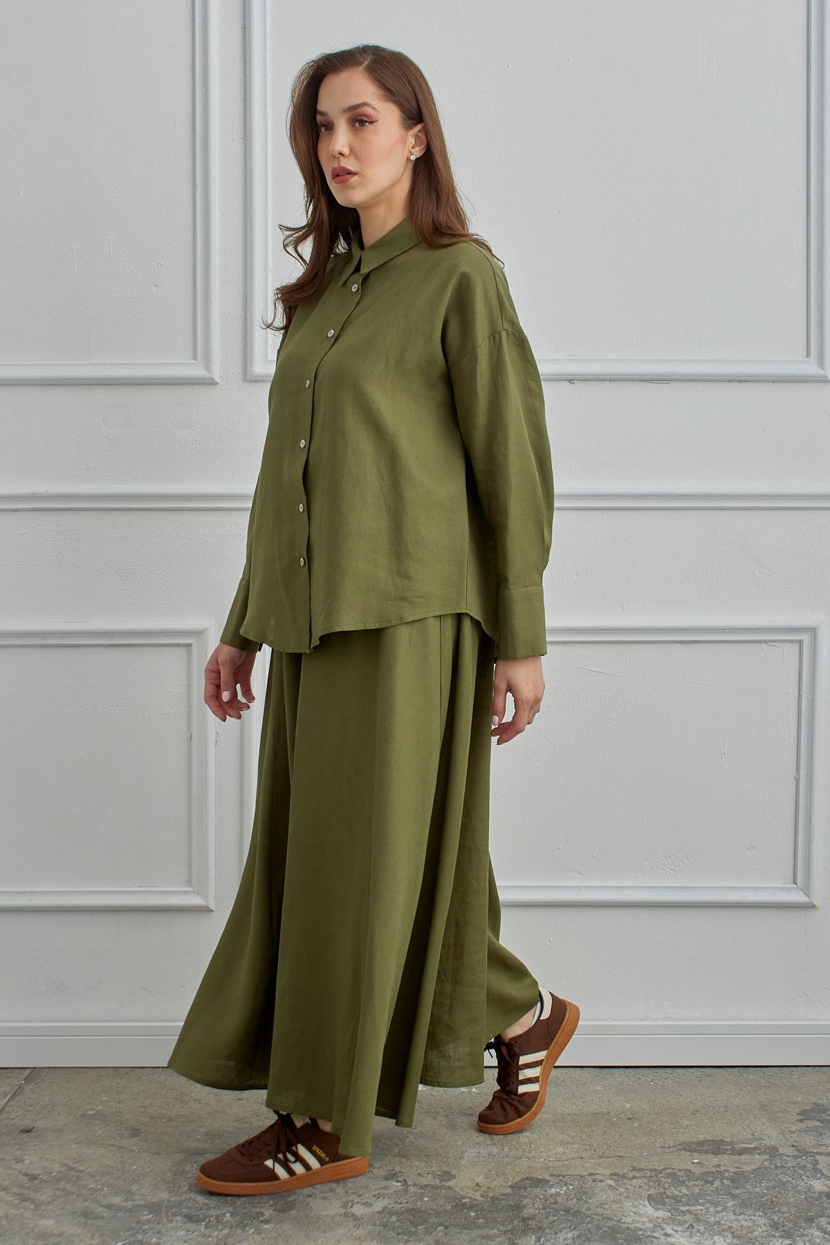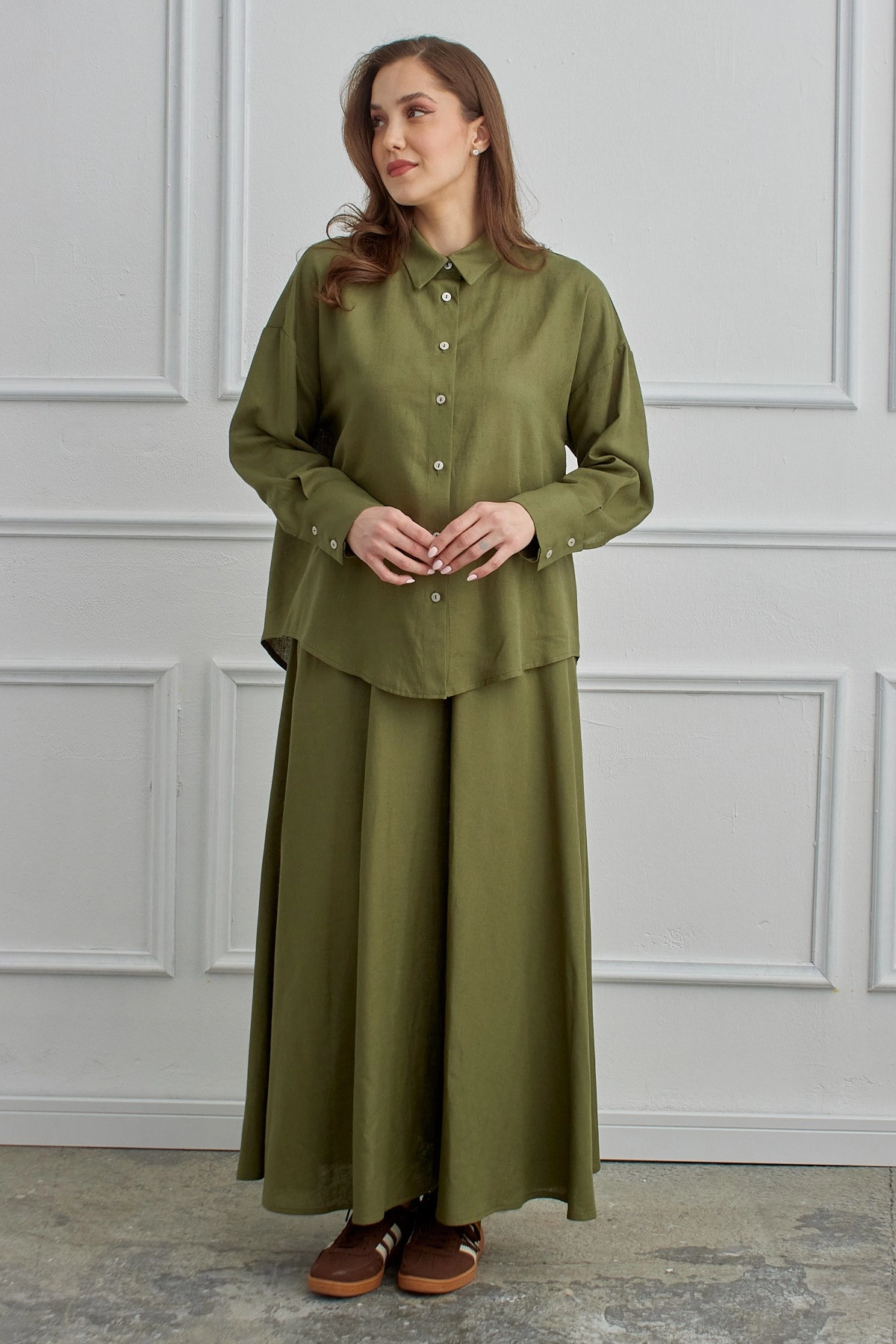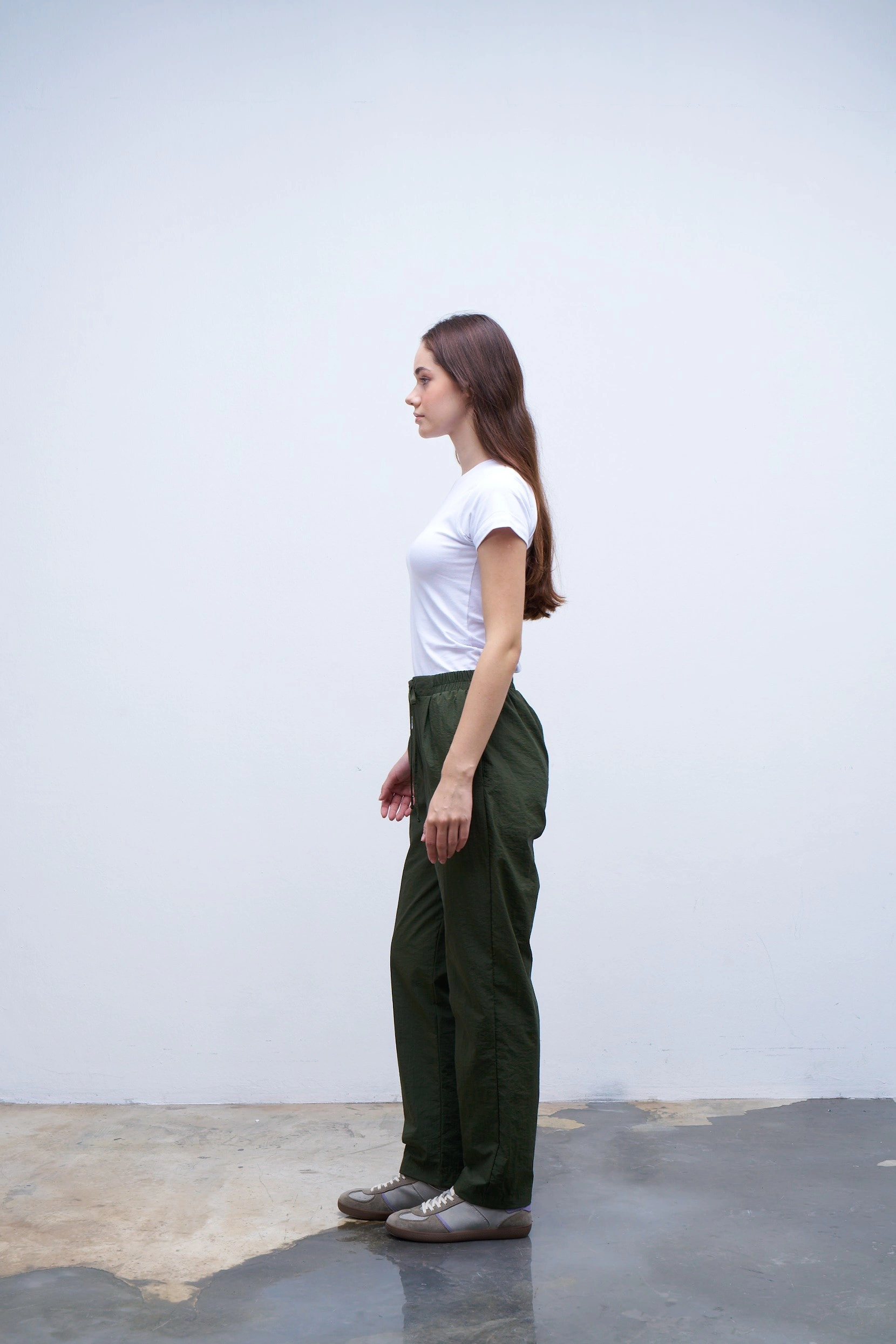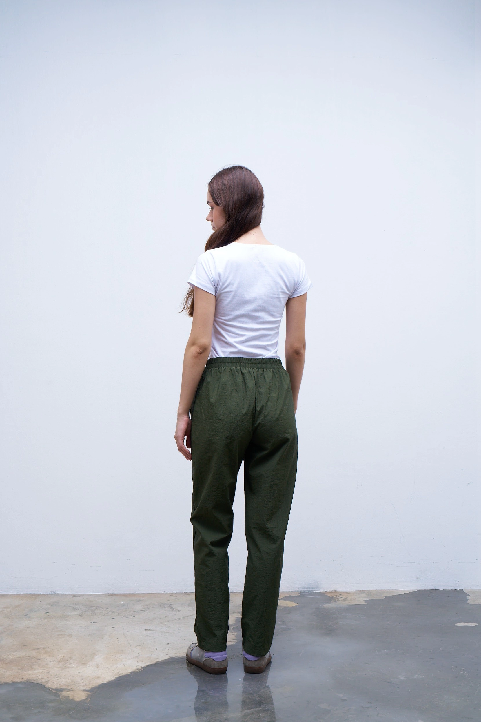 Qanu Beli Lastikli Krep Pantolon Yeşil