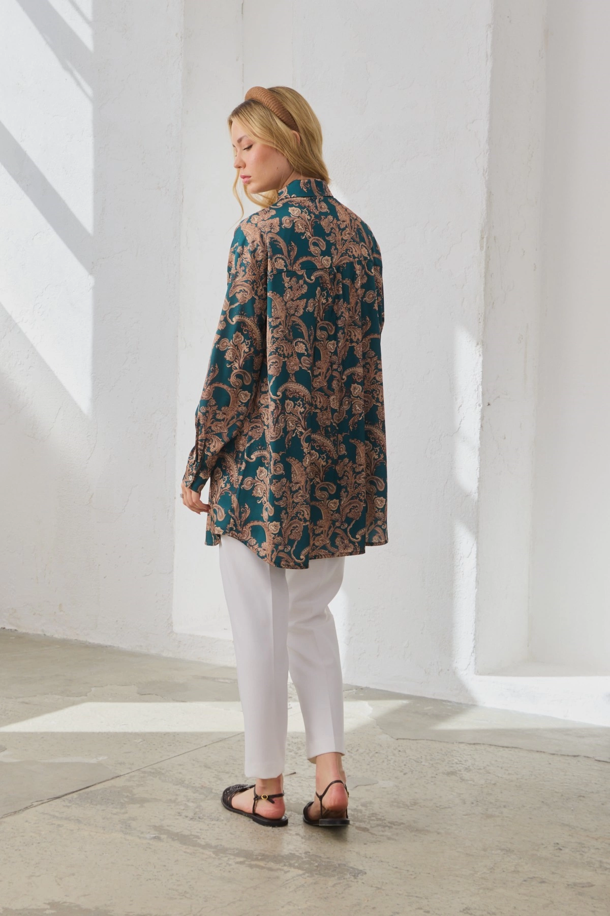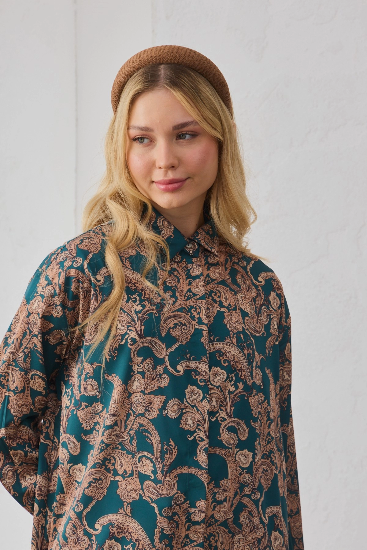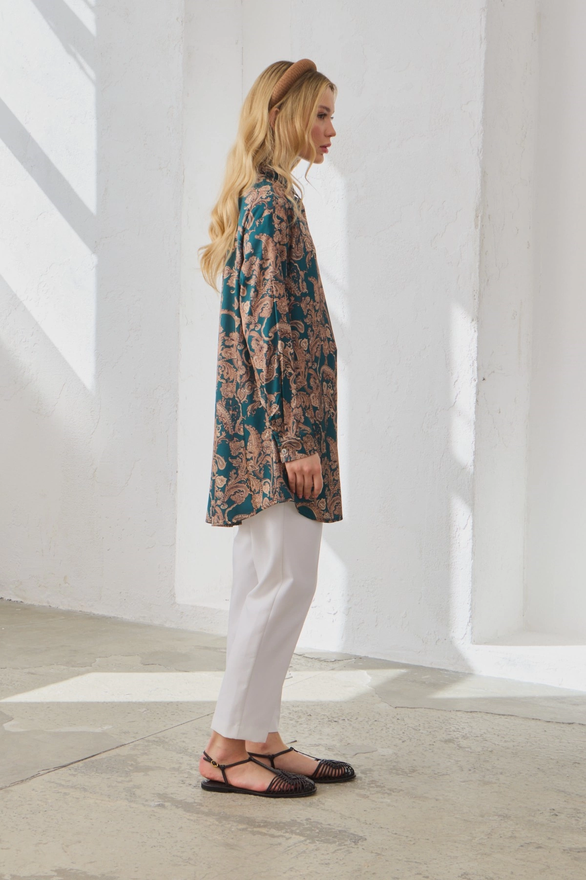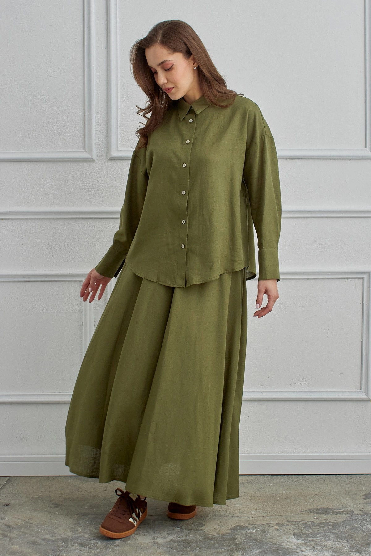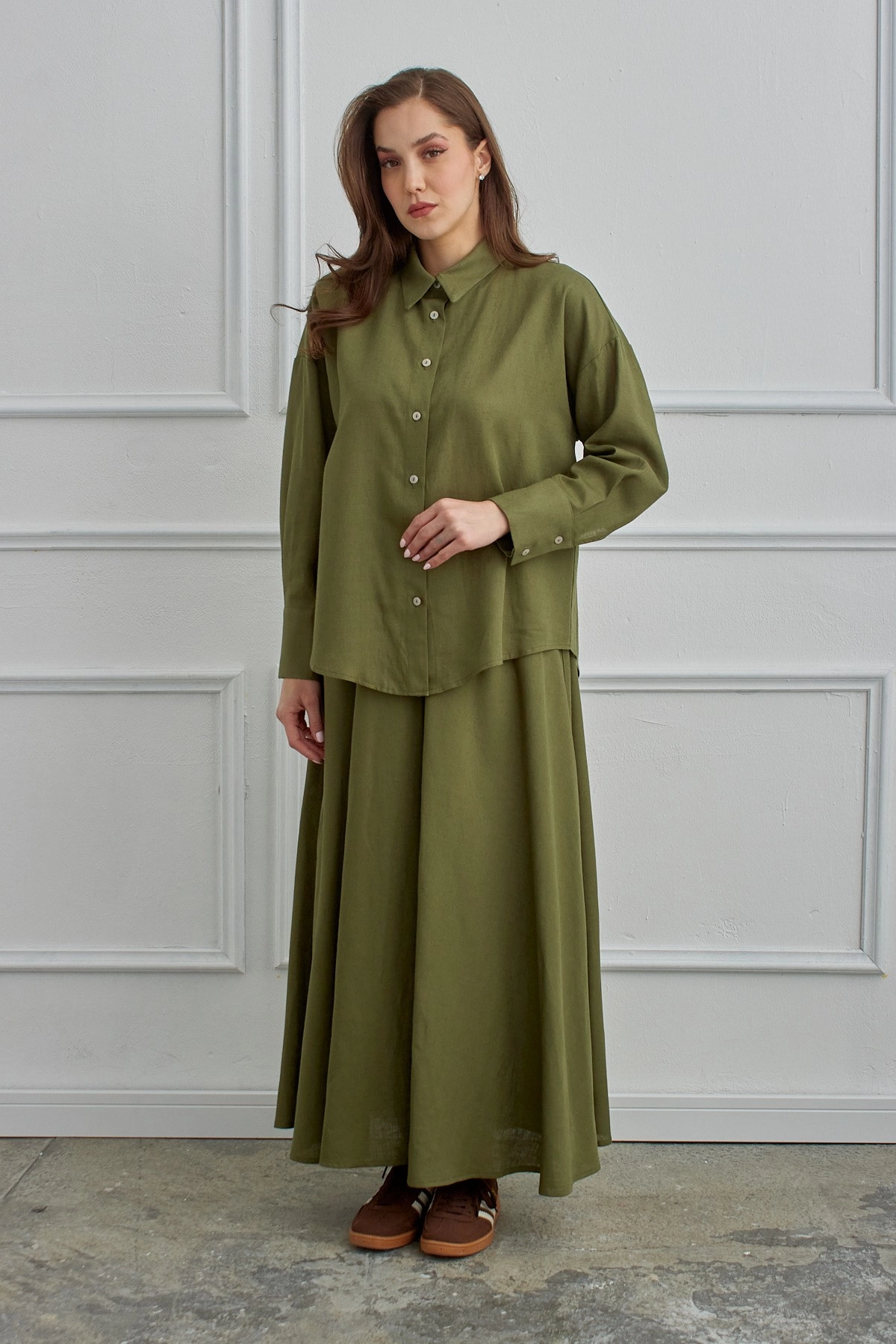 Qanu Beli Lastikli Krep Pantolon Yeşil