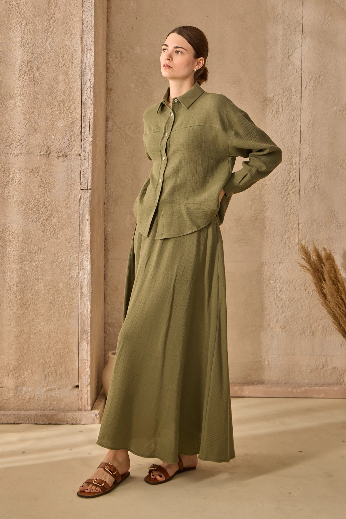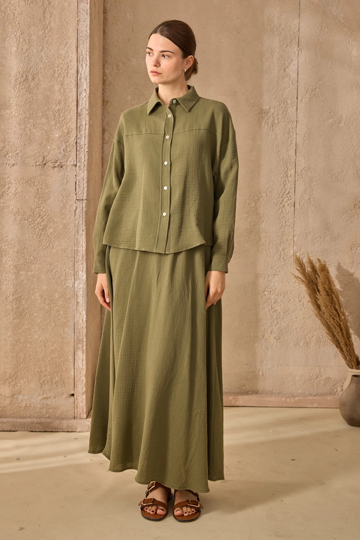 Qanu Azur Keten Etekli Takım Yeşil