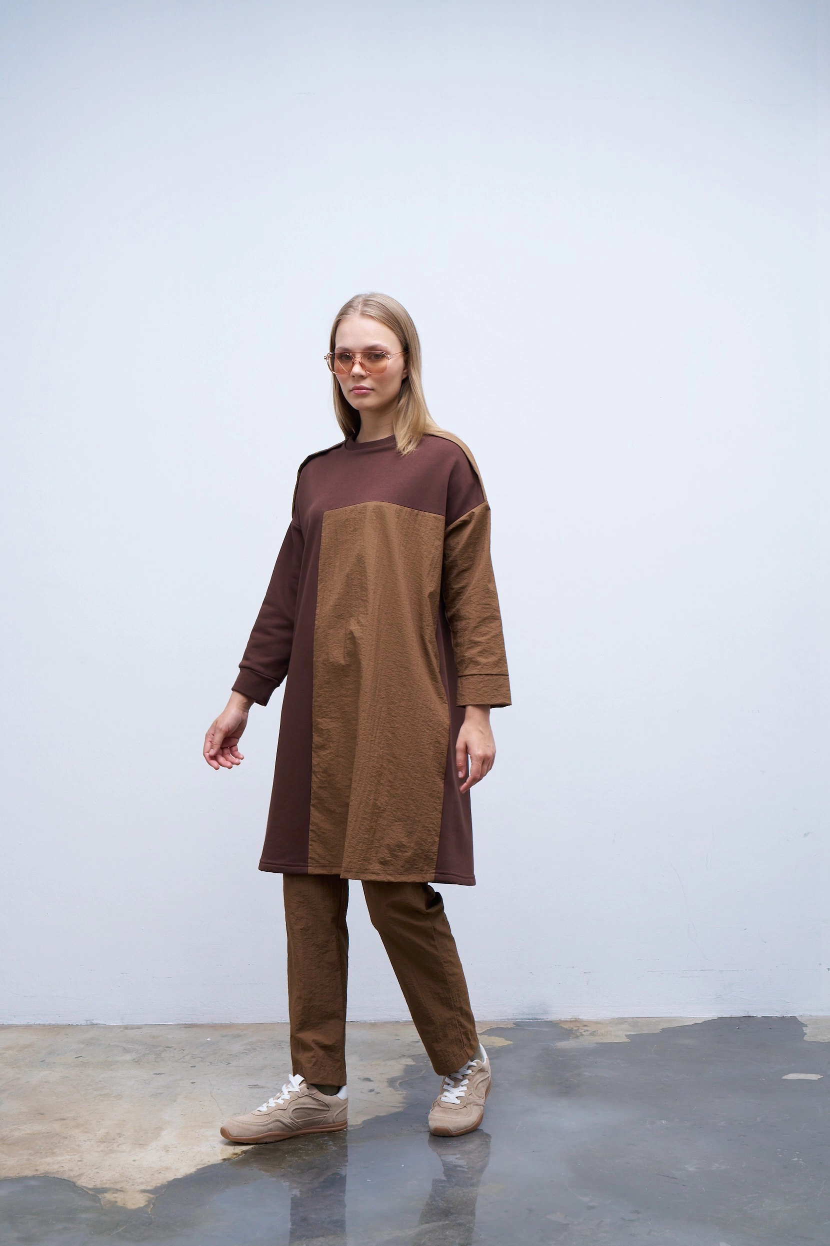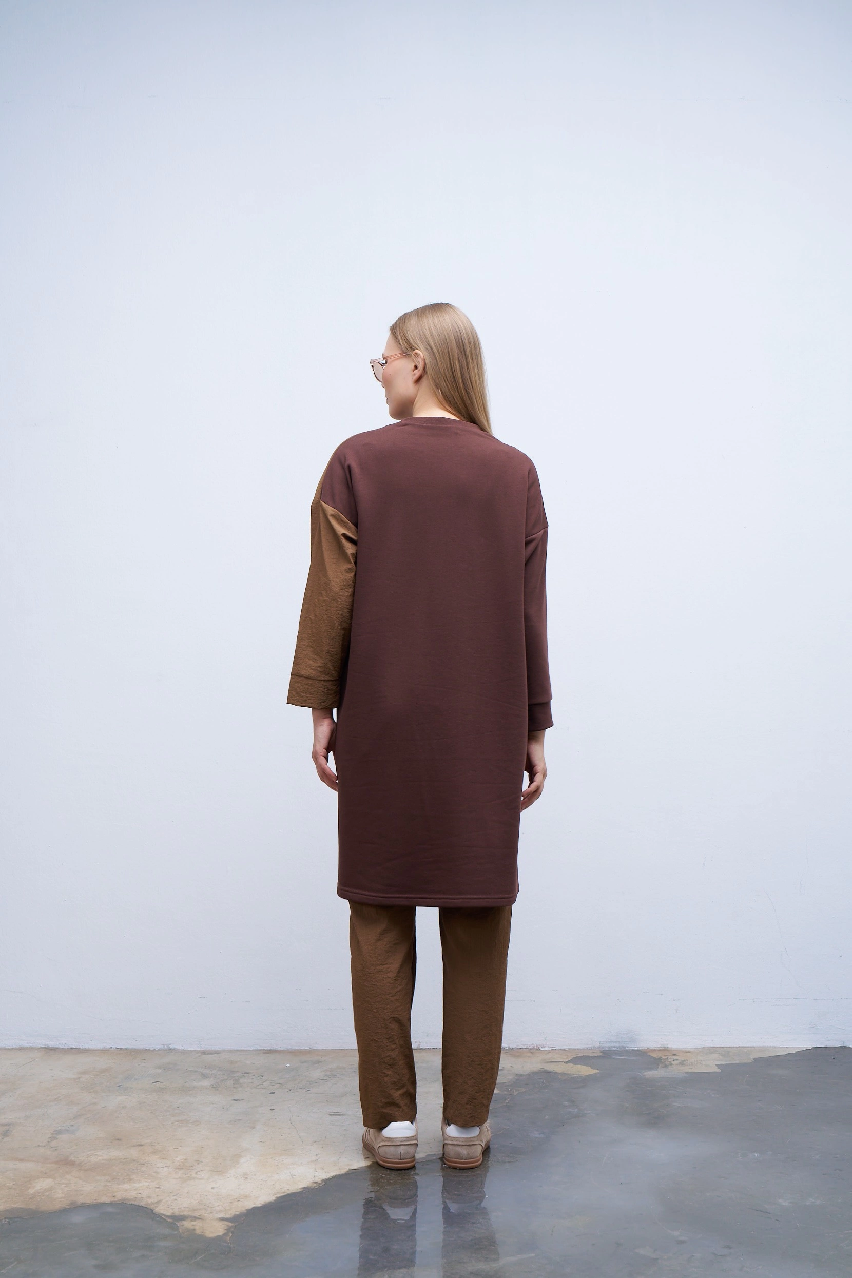 Qanu Fermuarlı Sweatshirt Kahverengi