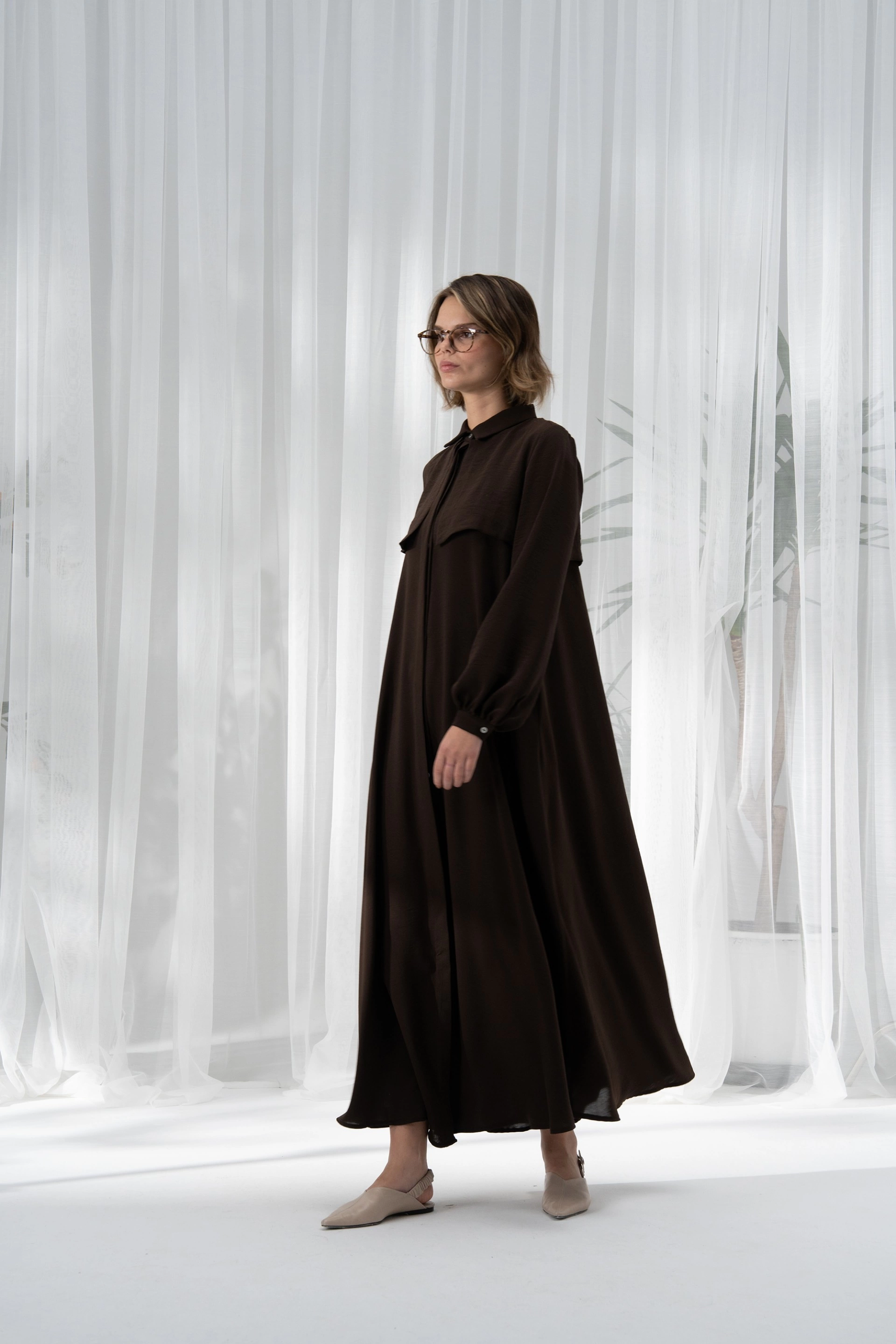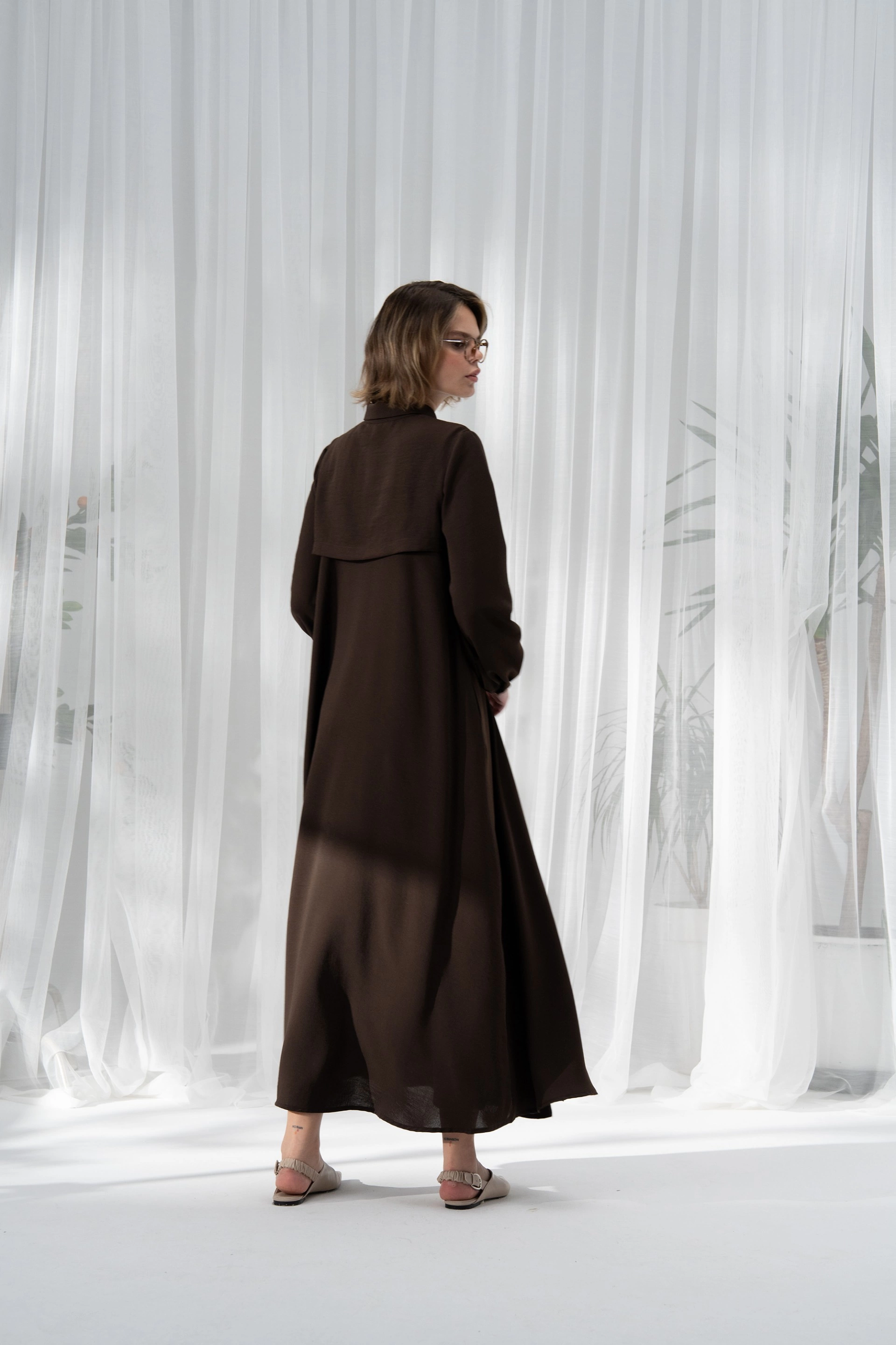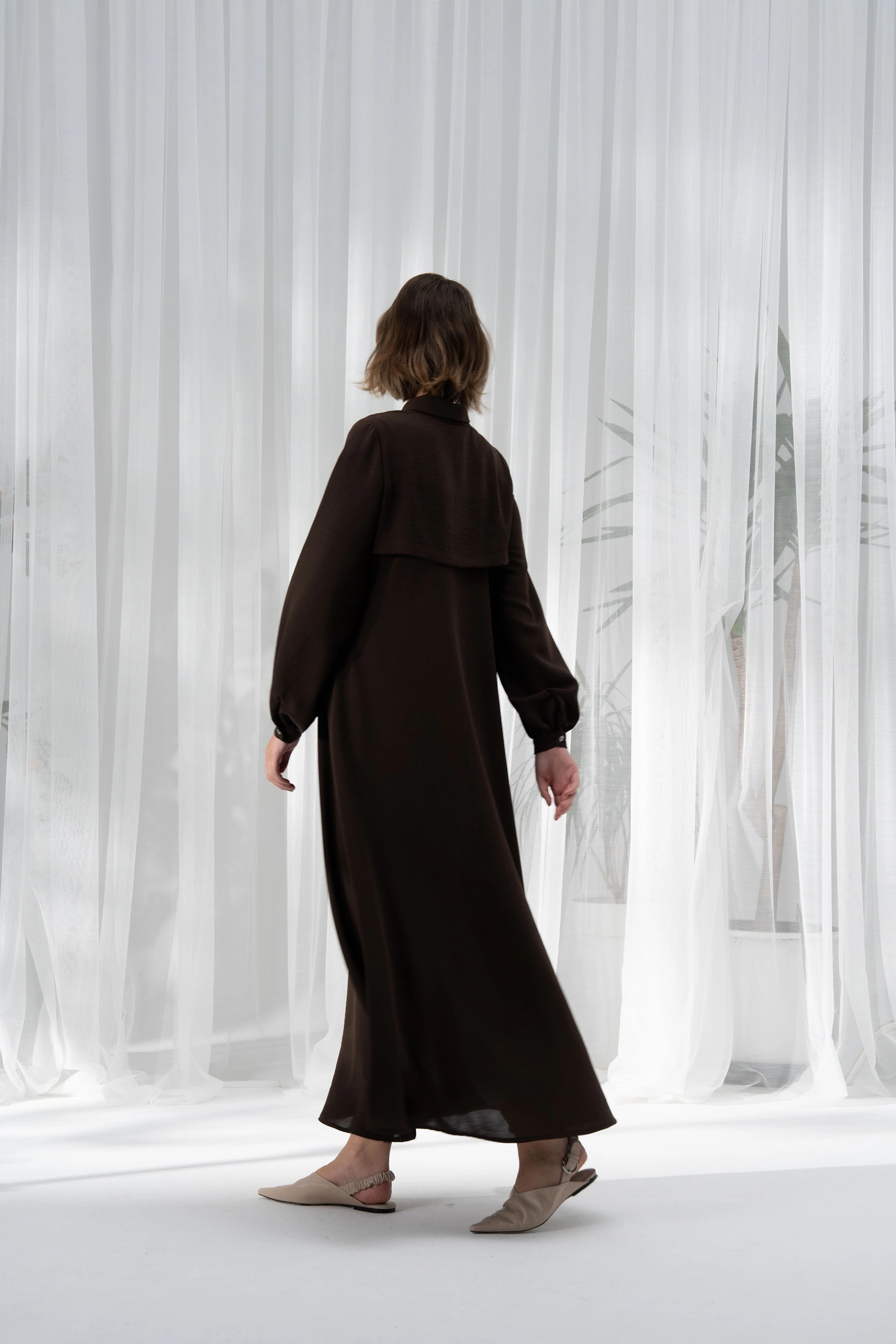 Qanu Kapaklı Ferace Kahverengi