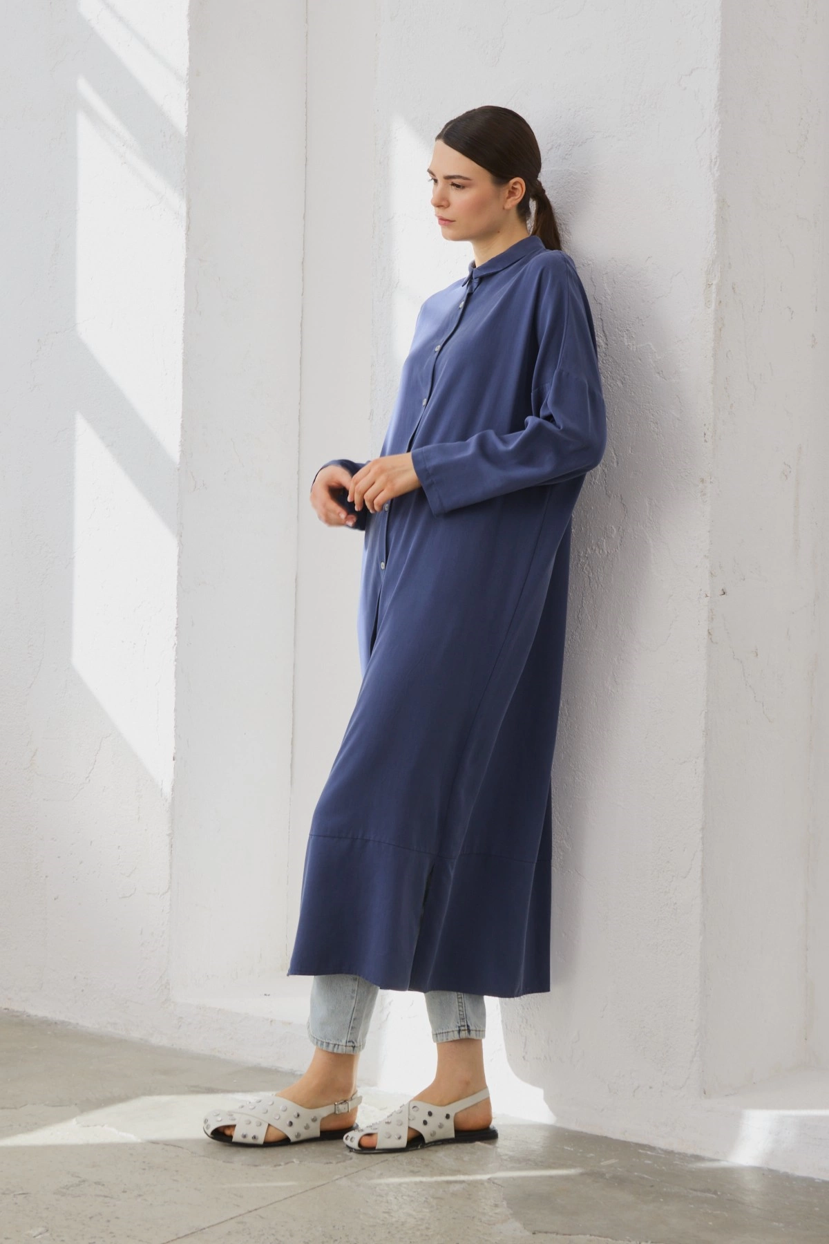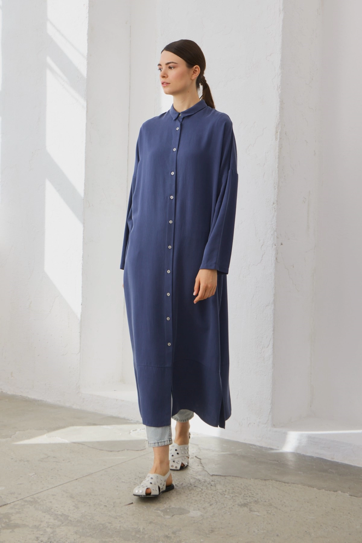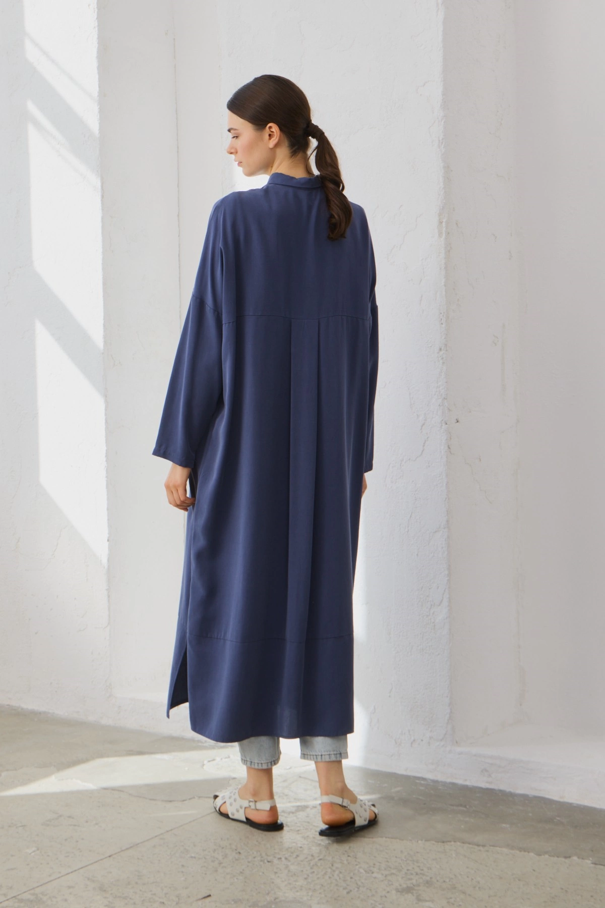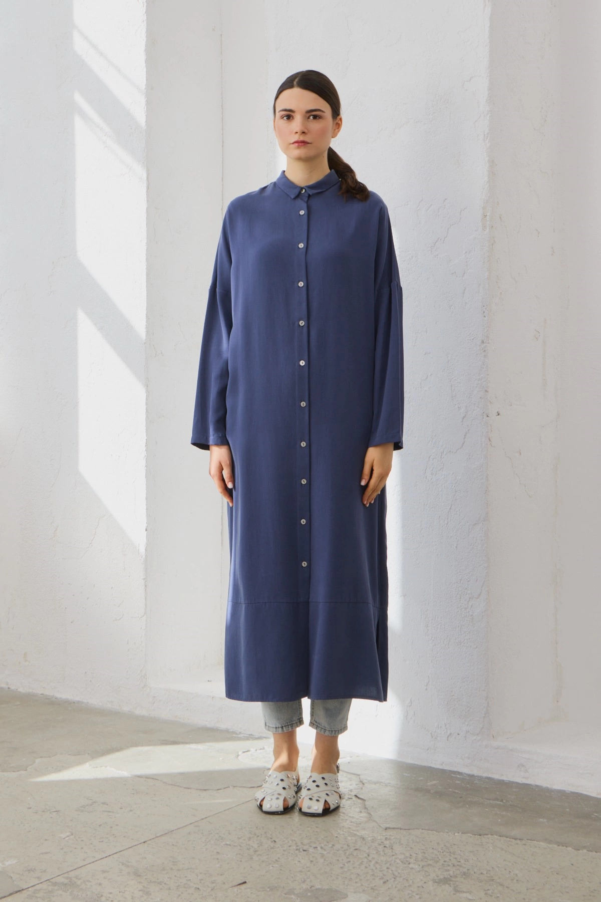 Qanu Tensel Oversize Gömlek Lacivert