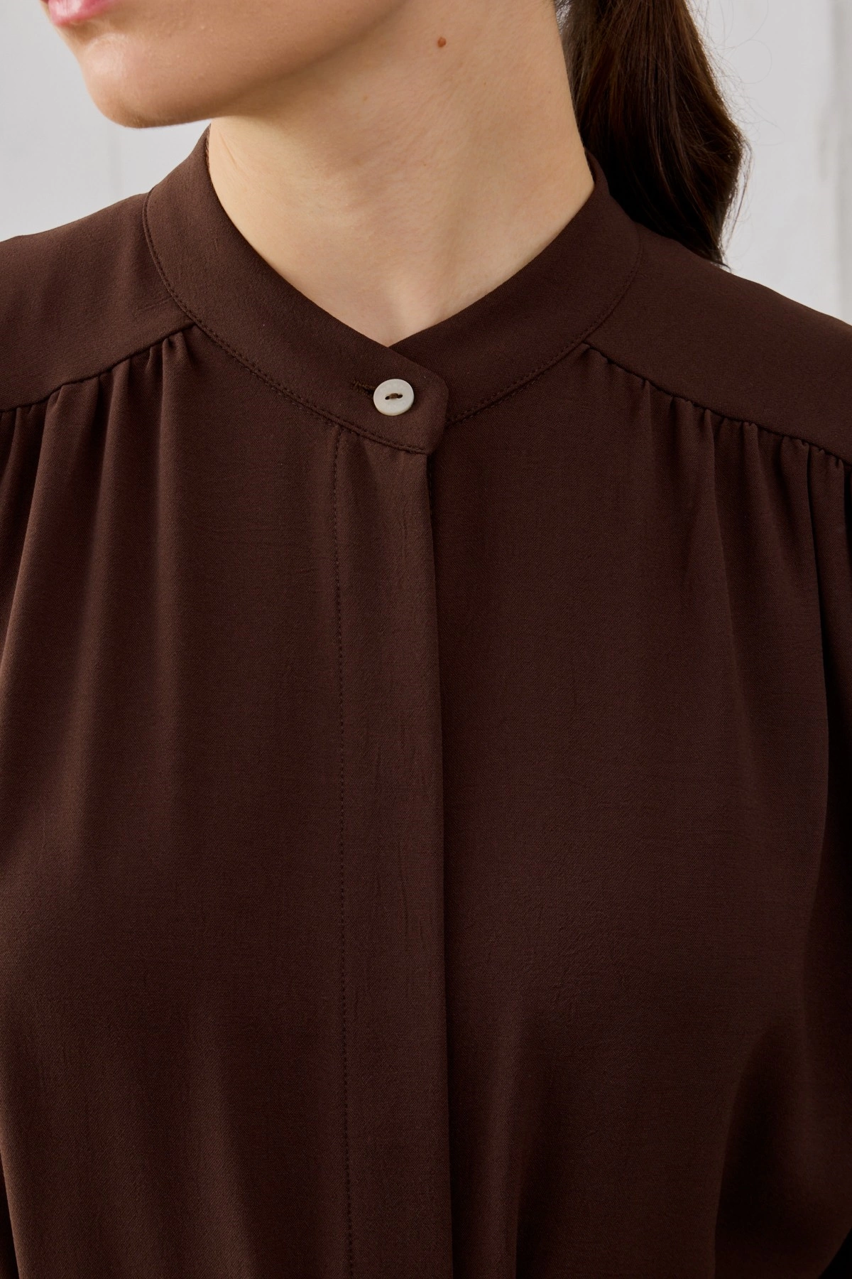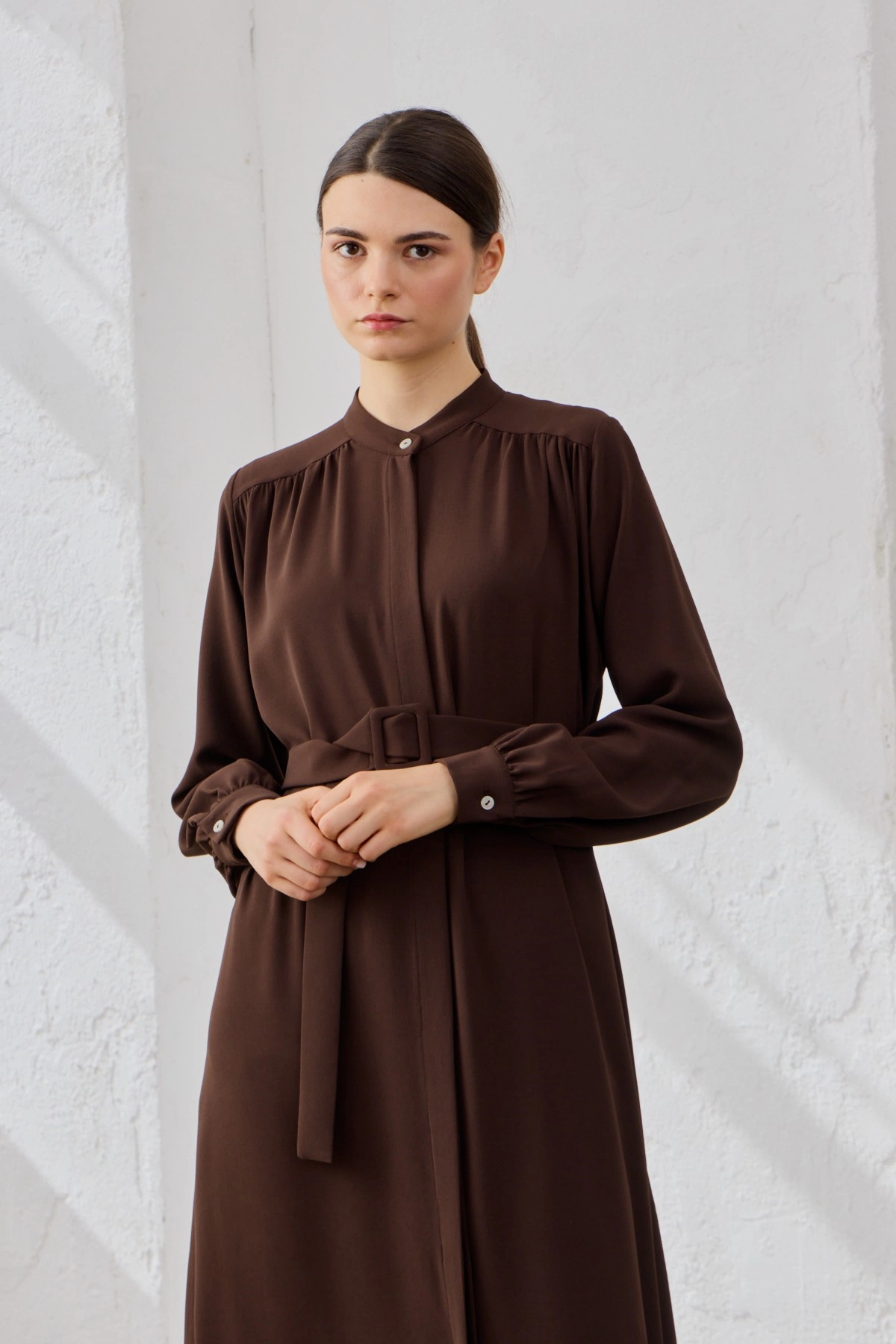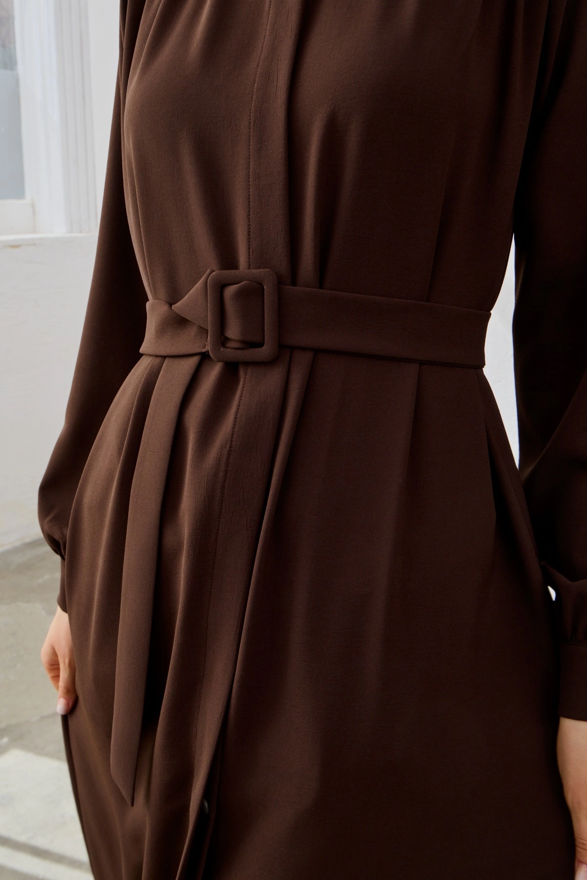 Qanu Önü Pileli Krep Pantolon Kahverengi