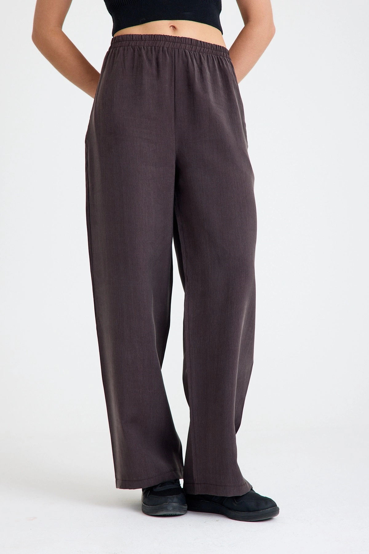 Qanu Beli Lastikli Krep Pantolon Indigo
